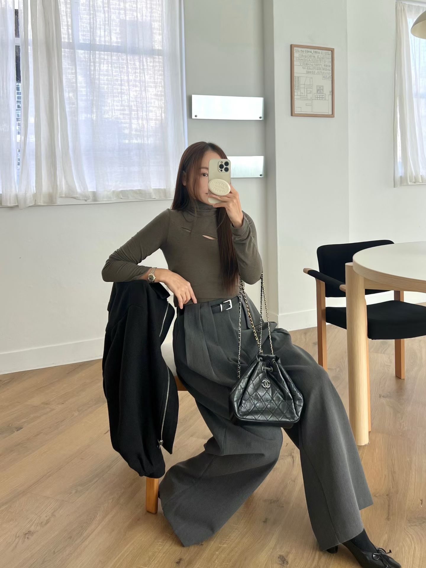 BD11 心口穿洞高領絲襪Top 3色 米白/啡綠/黑 Chest 30-40" length 18"
