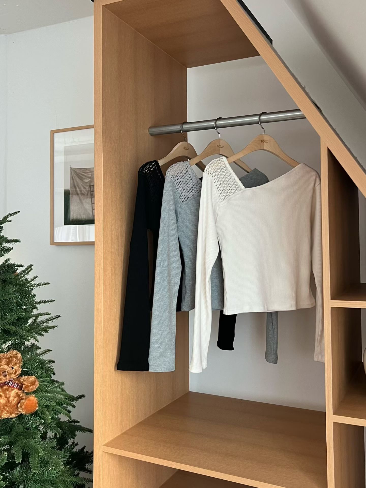 BD12 斜領暗直紋Top