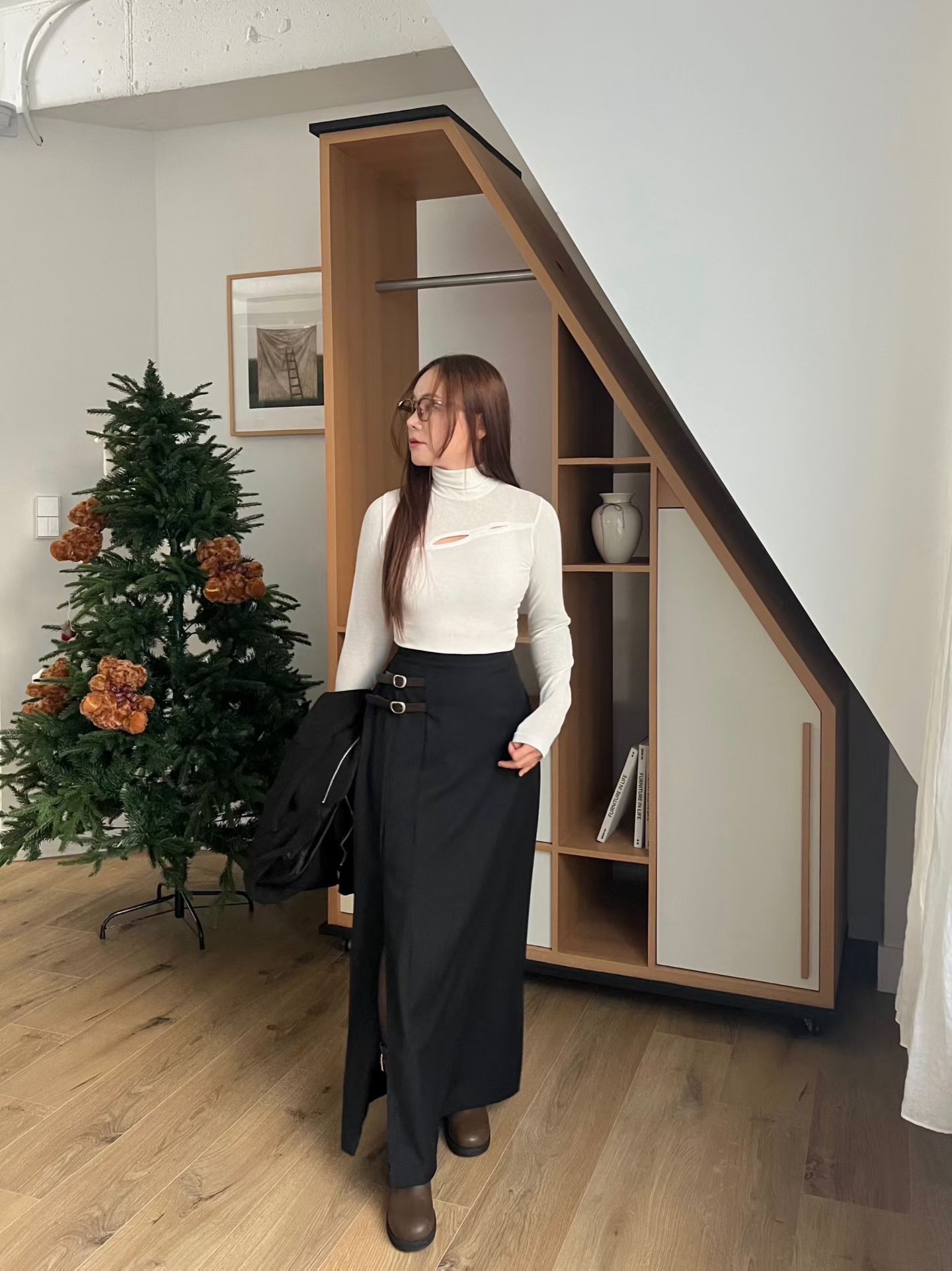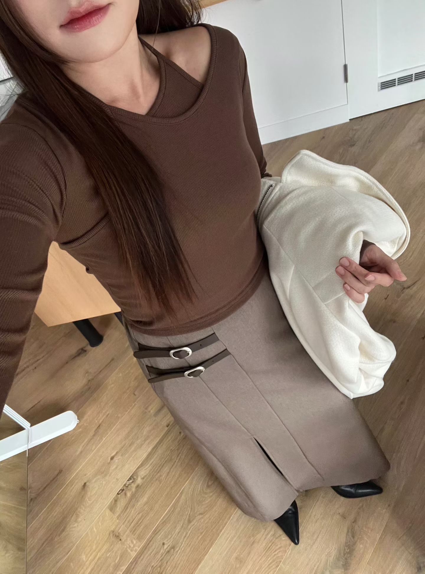BD14 側扣半截長裙 2色 黑/啡 Waist 25-33" hip 41" length 38"