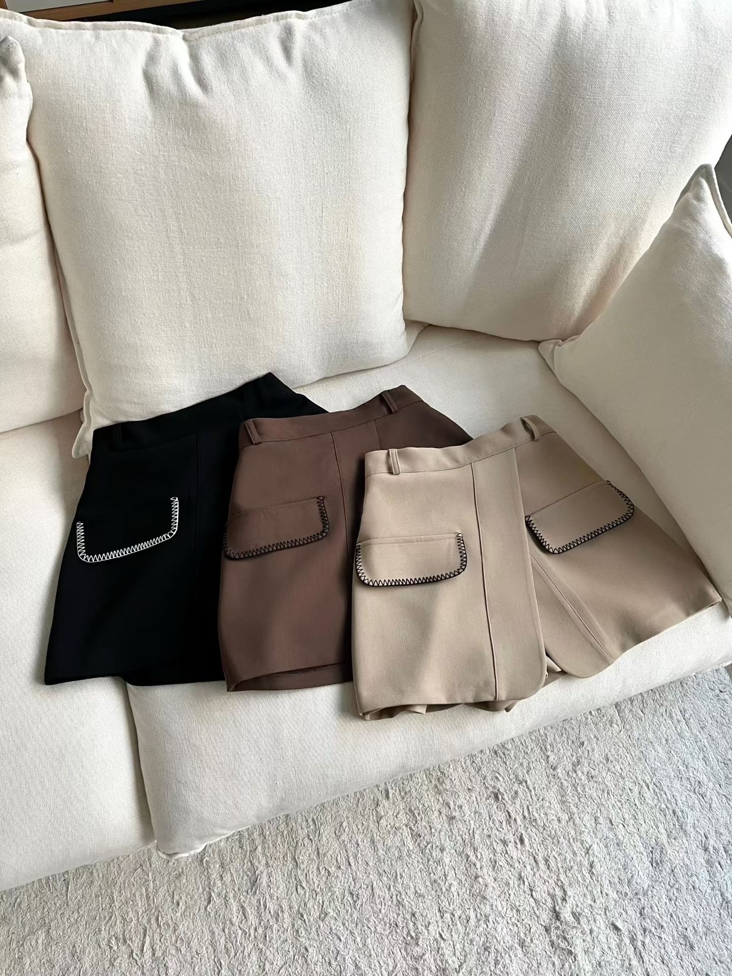 BD15 前開叉2袋裙褲 3色 杏/啡/黑 Waist 25-31" hip 41" length 14.5"