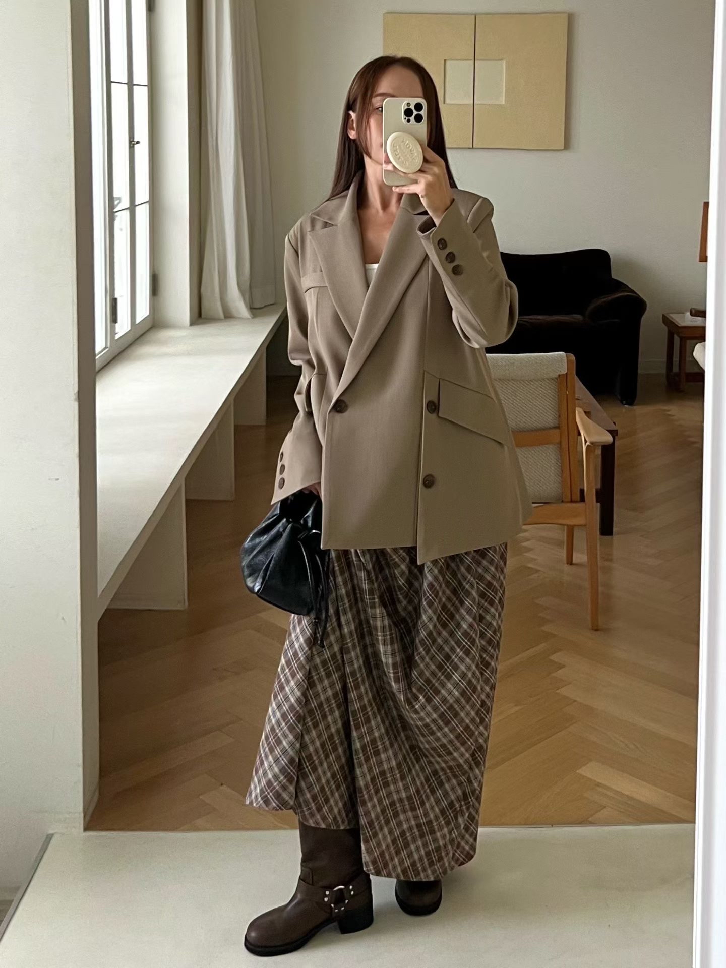 BD16 孖鈕西裝褸 2色 杏/黑 Shoulder 18" chest 43" length 25.5"