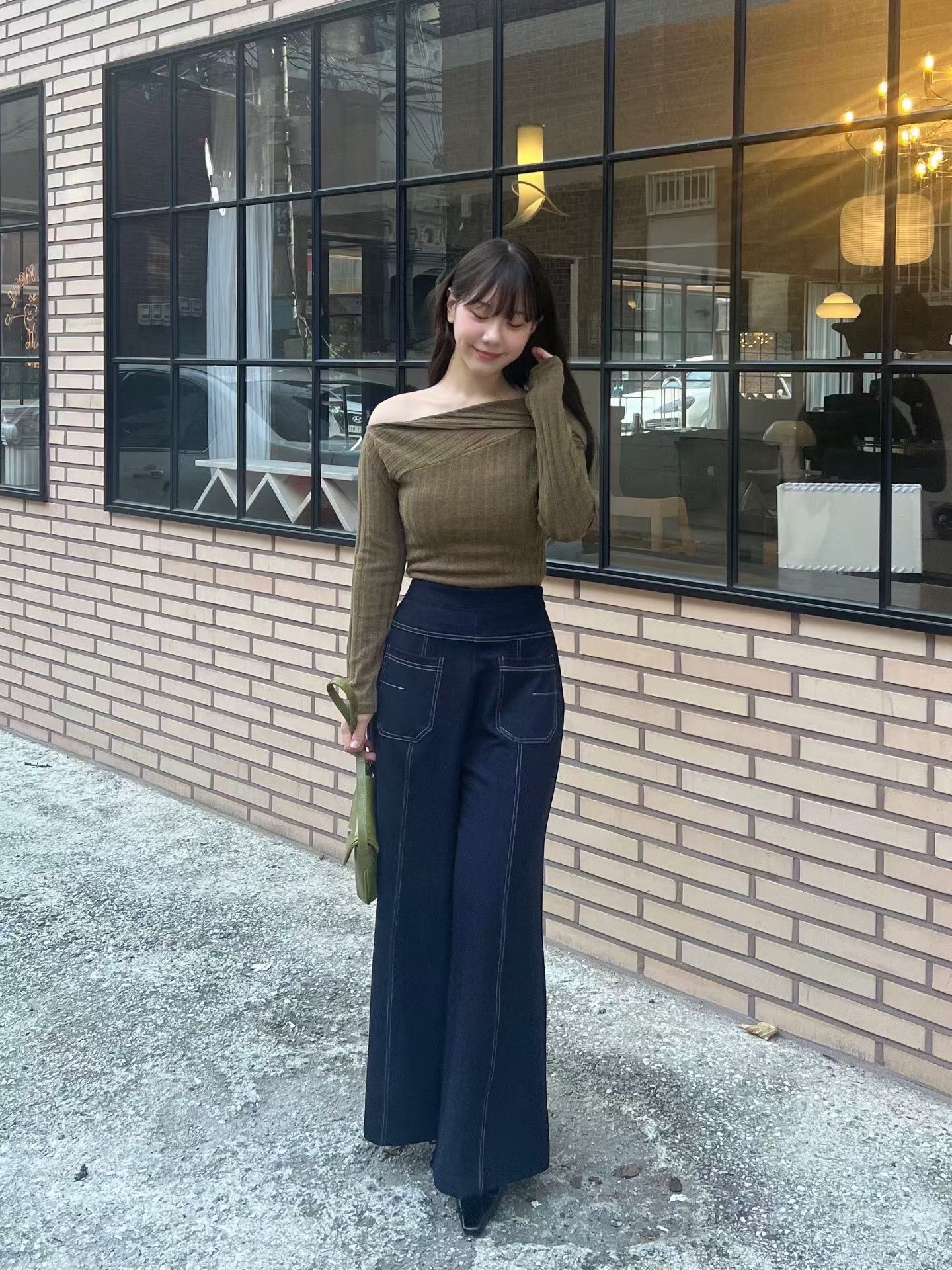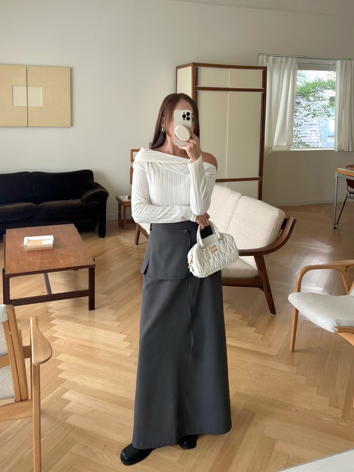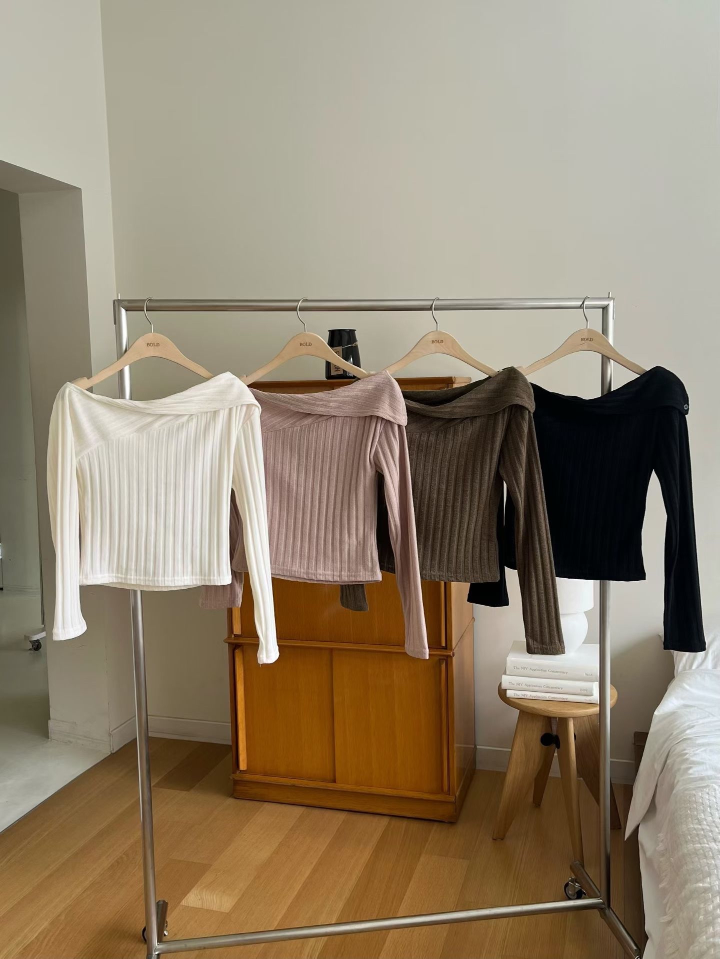 BD17 off shoulder 直紋Top 4色 米/奶茶/綠/黑 Chest 30-40" length 16"