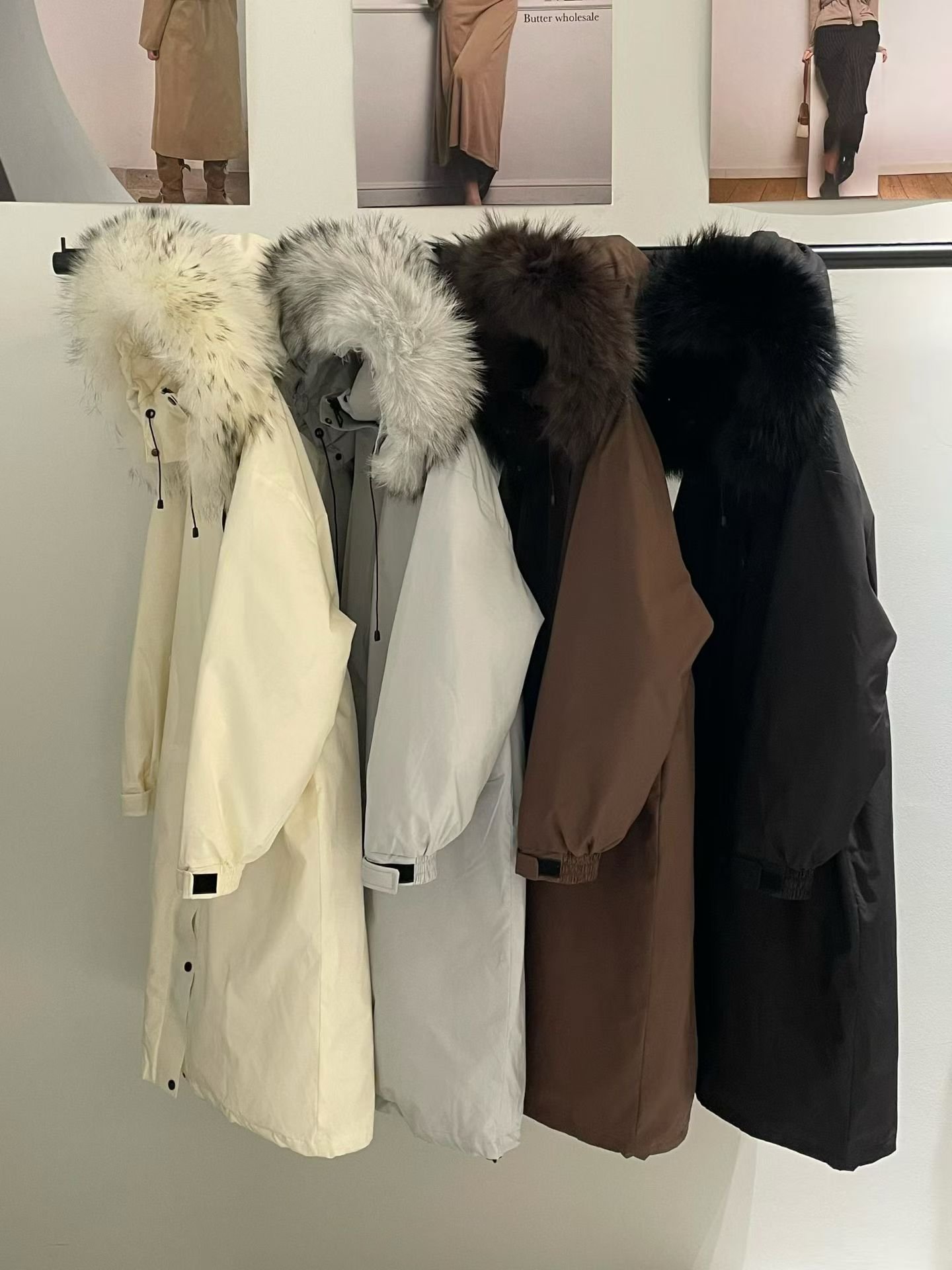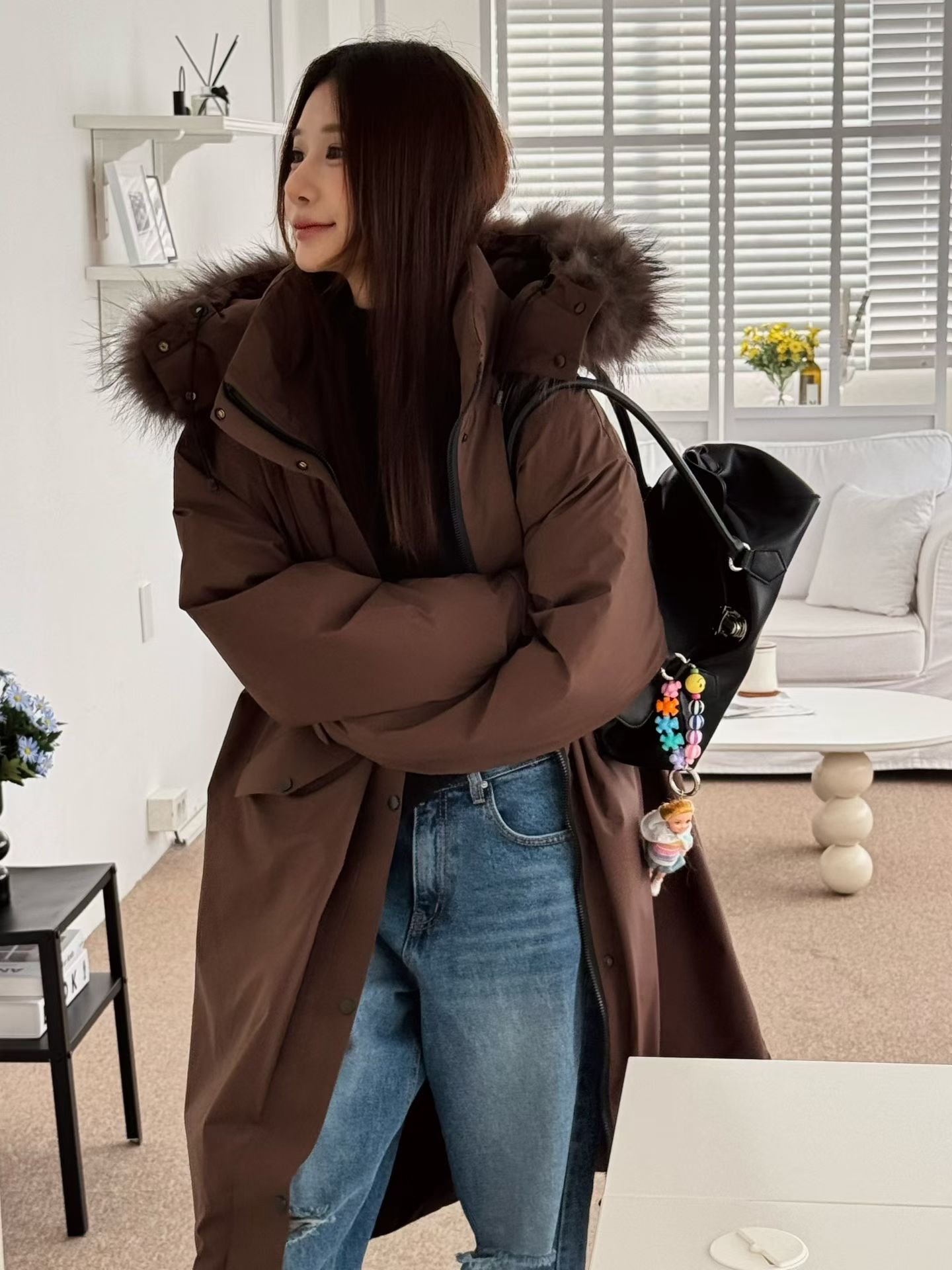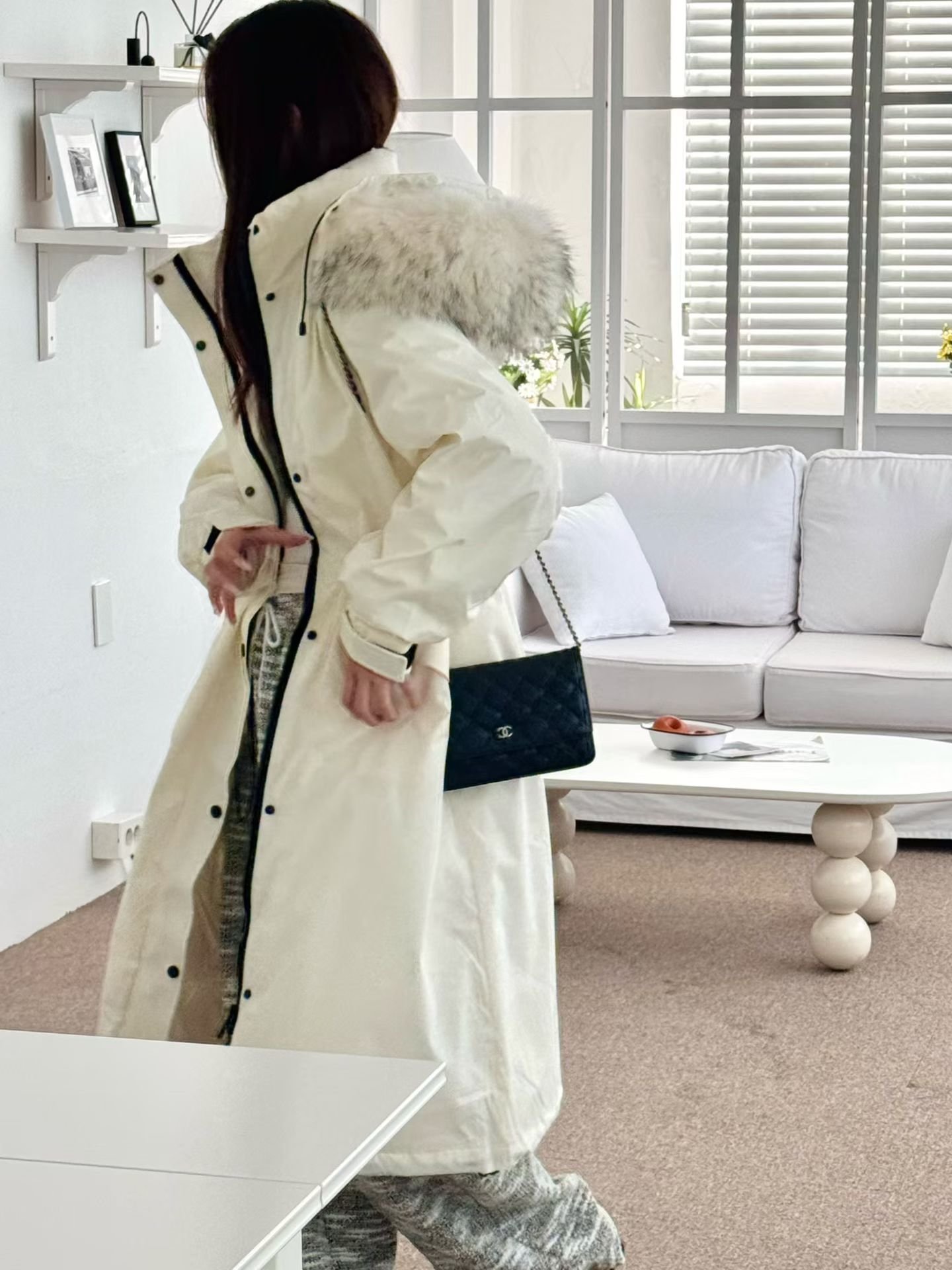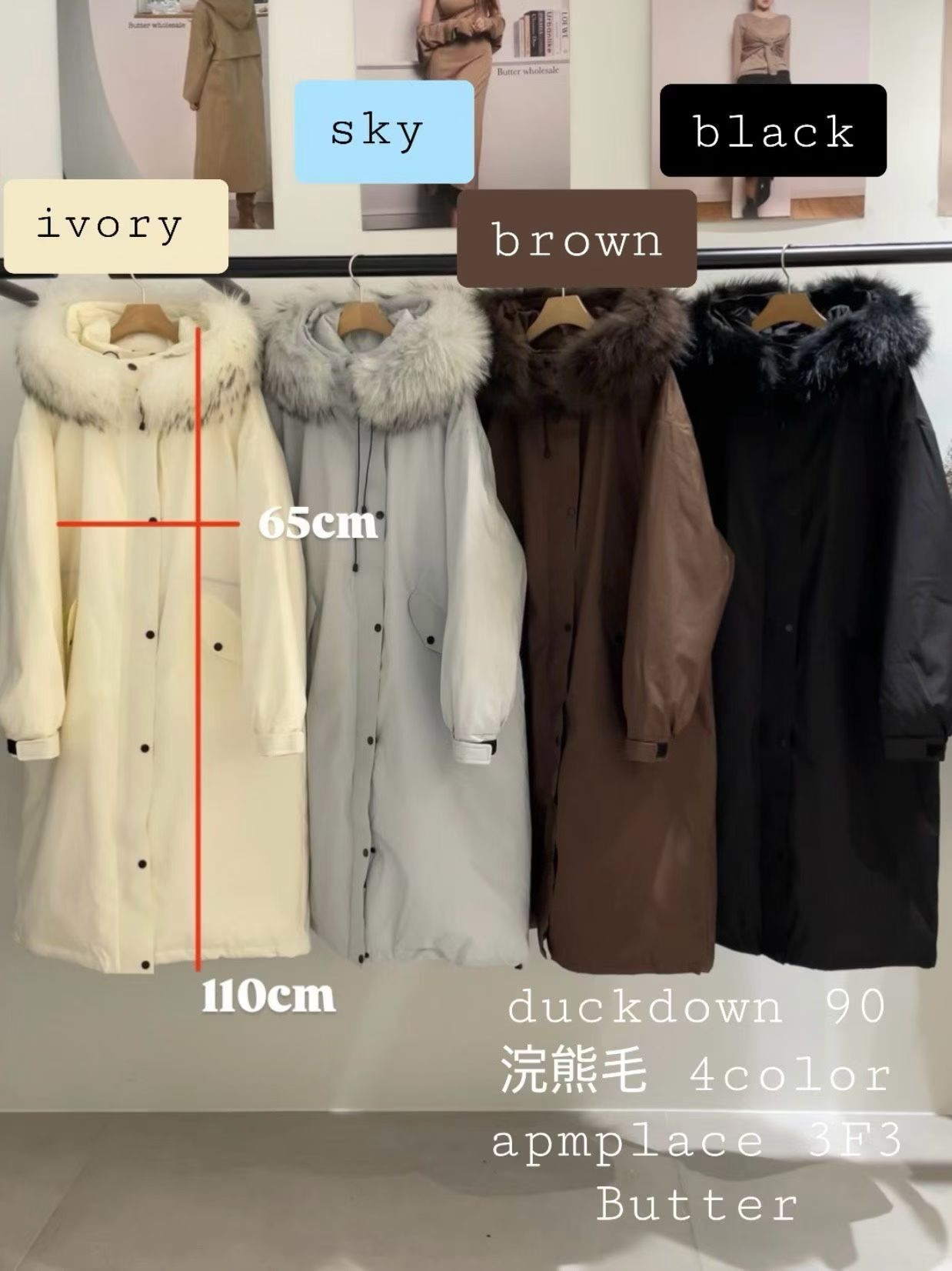 BT03 長版毛領羽絨 90% duck down 浣熊毛 4色 米/淺藍/啡/黑 Chest 50" length 43"