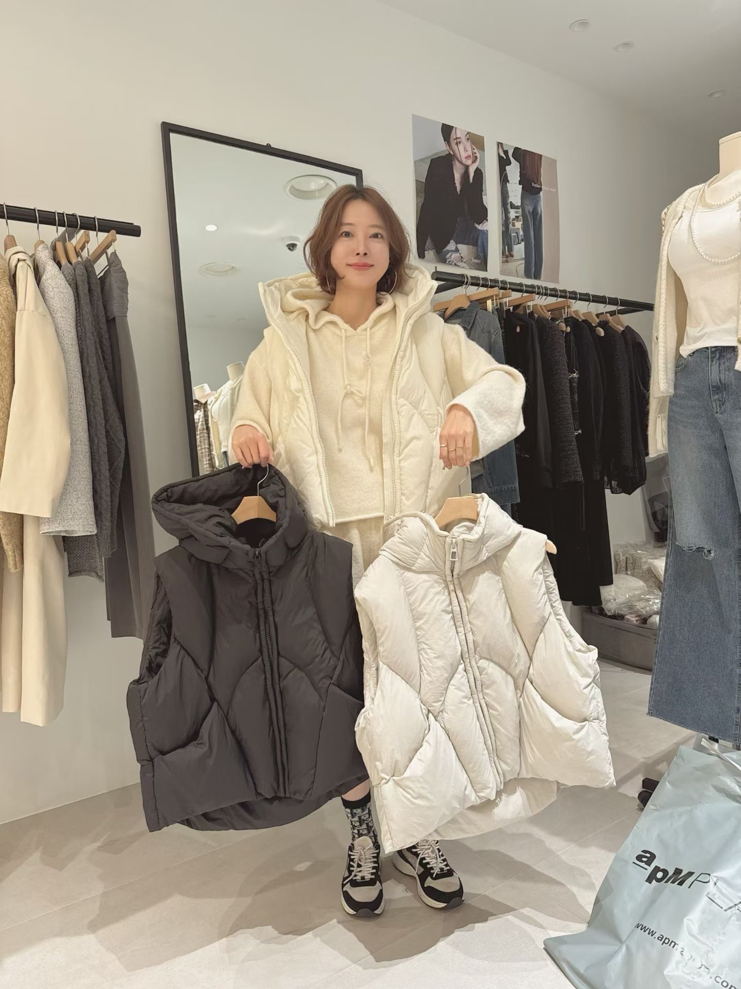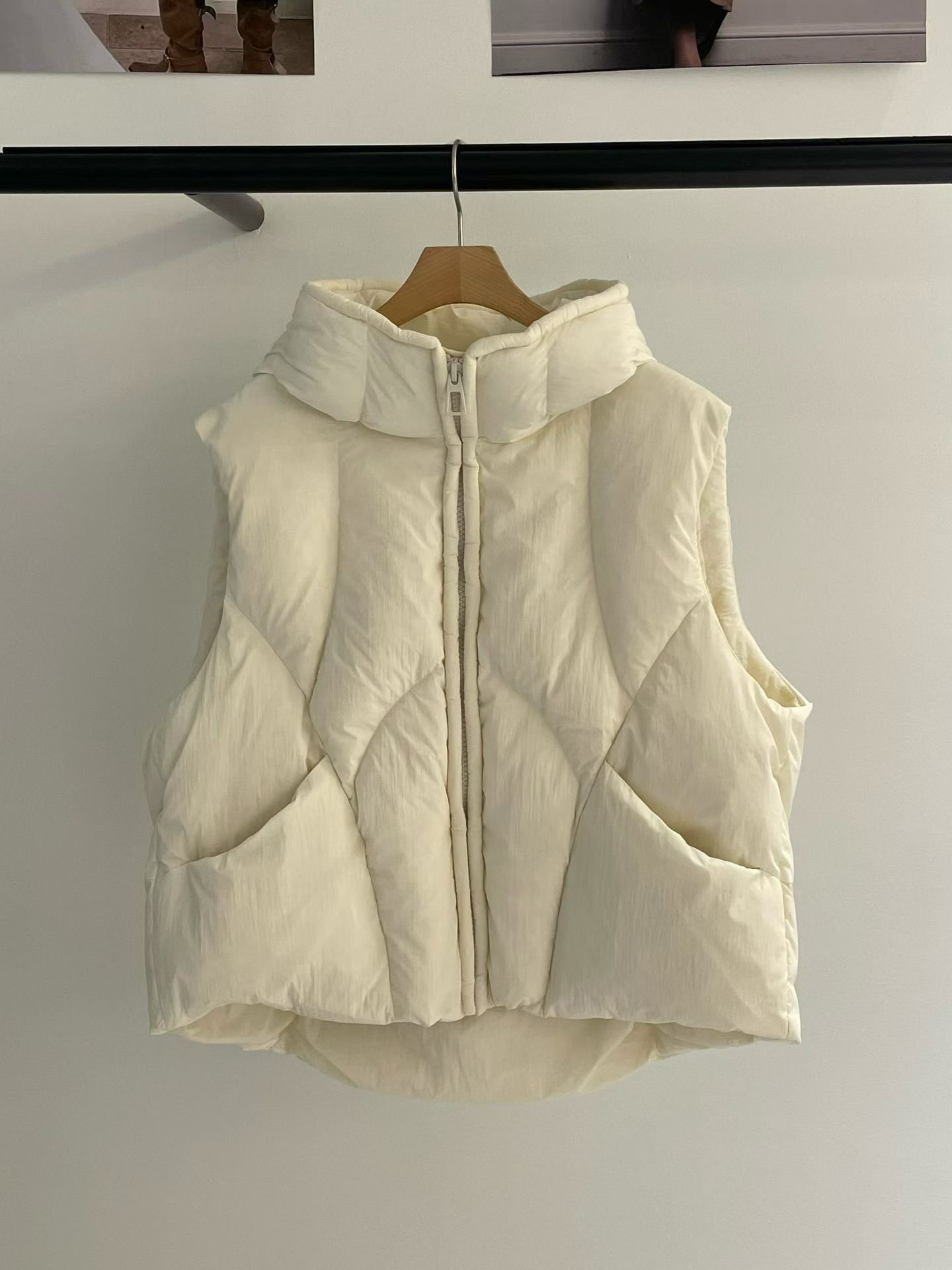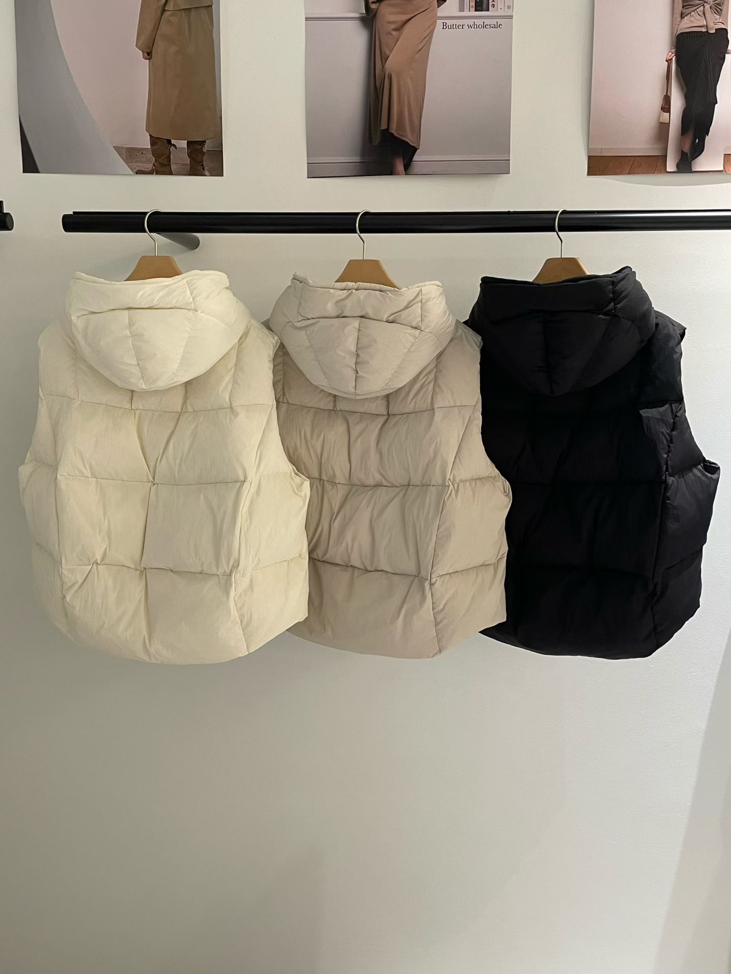 BT05 壓紋羽絨背心 90% duck down 3色 米/灰/黑 Shoulder 18.5" chest 52" length 23"前 26.5" 後