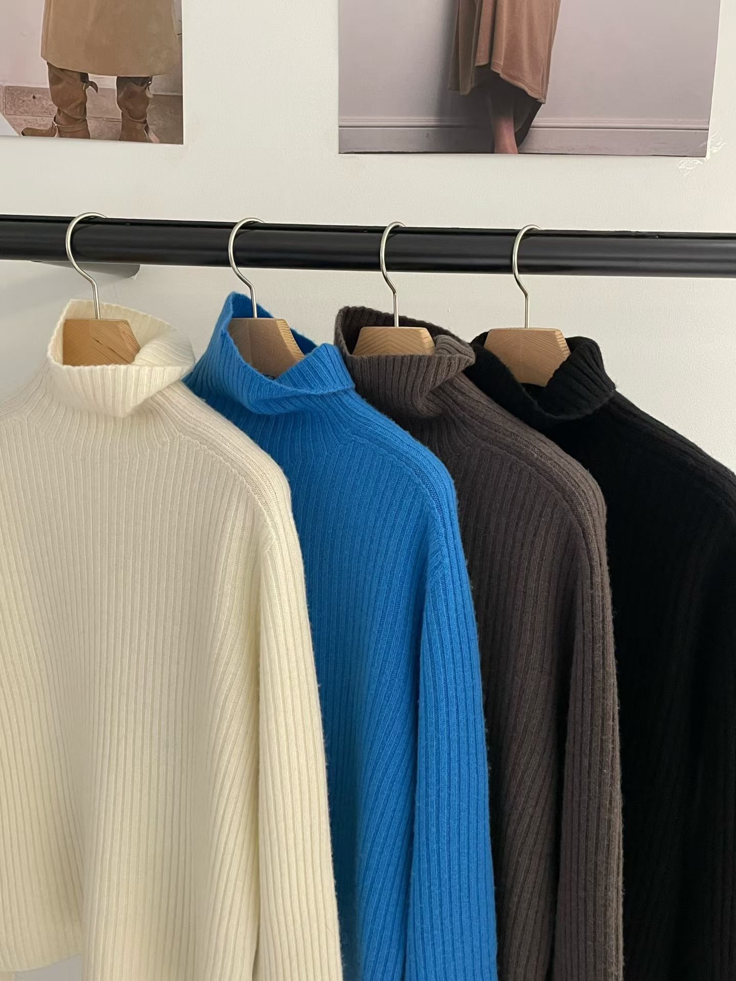 BT14 直紋樽領wool Top 4色 米/彩藍/啡/黑 Chest 40-50" length 24"