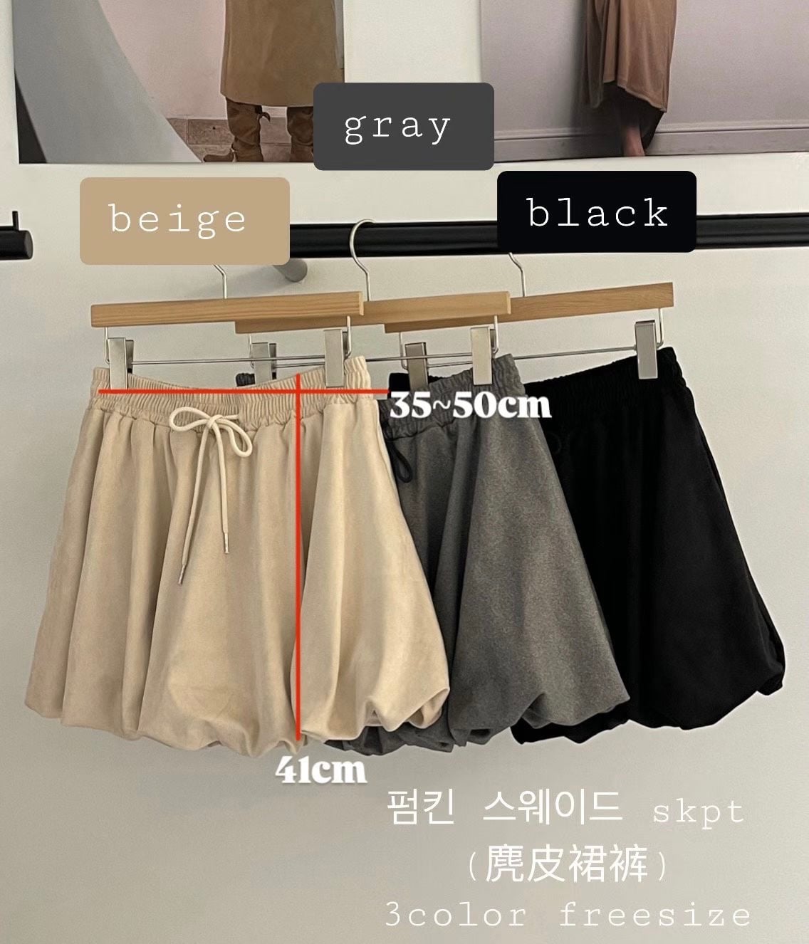 BT25 猄皮泡泡短裙 3色 杏/灰/黑 Waist 26-38" hip 40+ length 16"