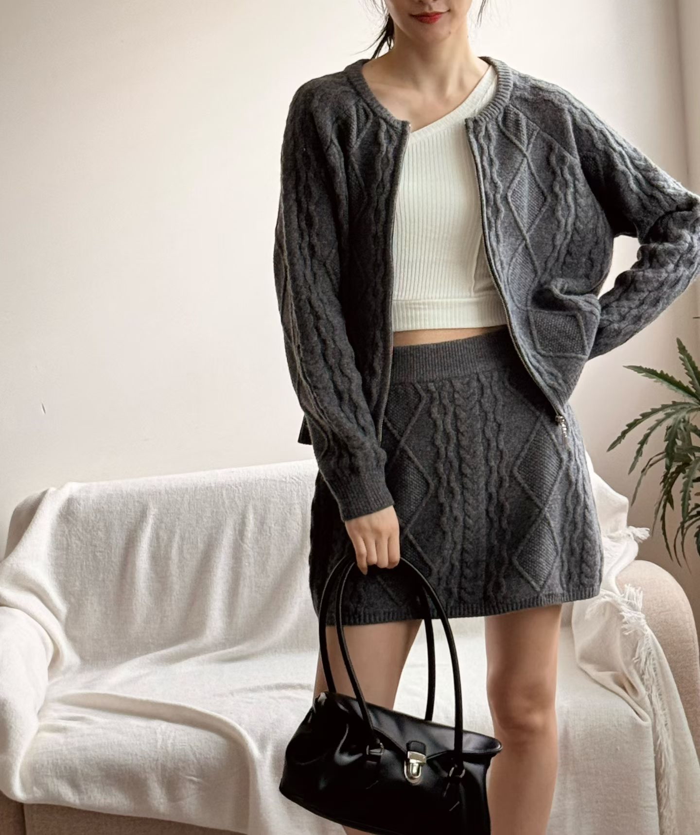 BT33 麻花拉鏈外套+裙set