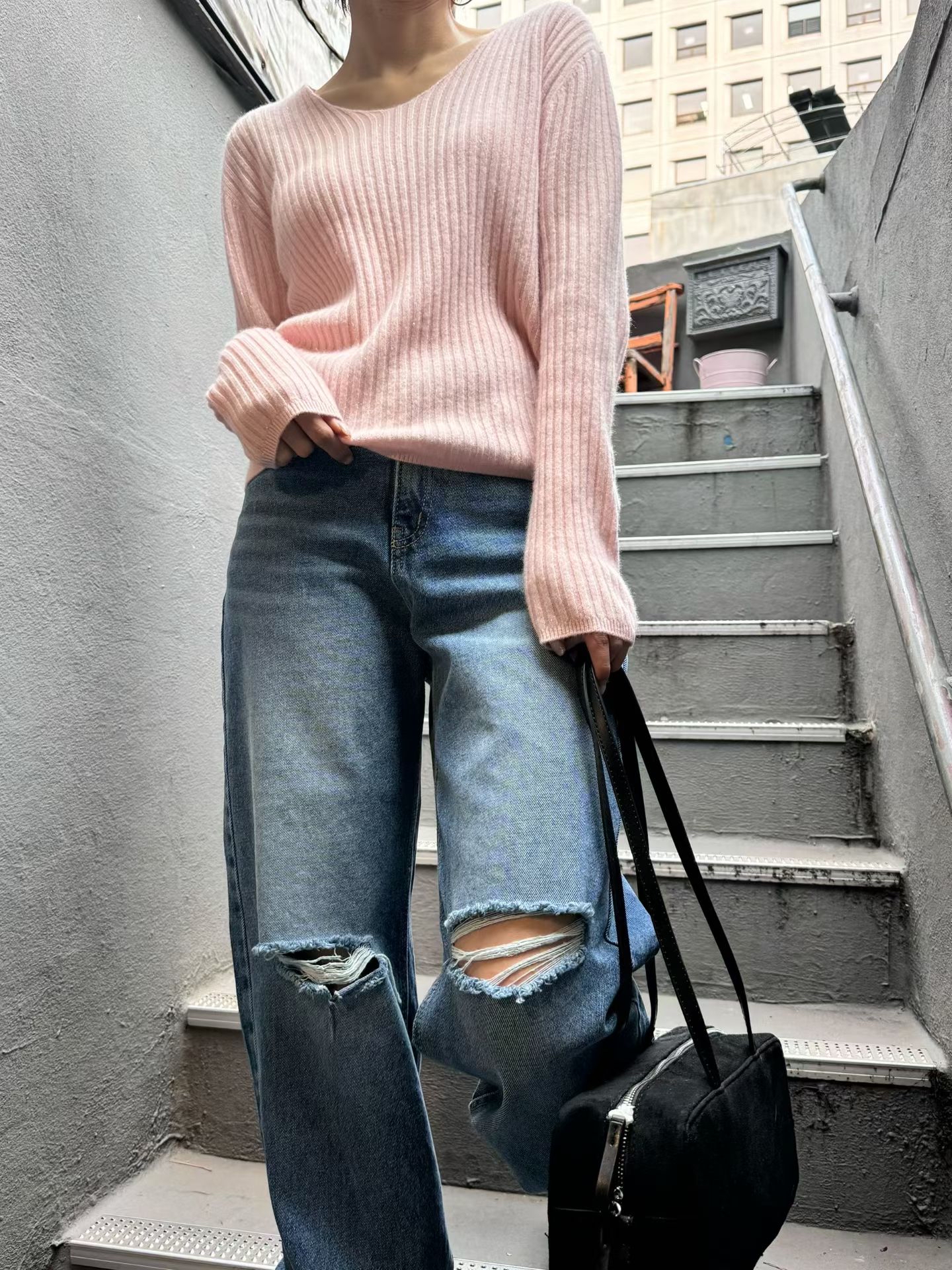 BT34 閃閃V領直紋Top 3色 米/粉/深灰 Chest 37-40" length 22"