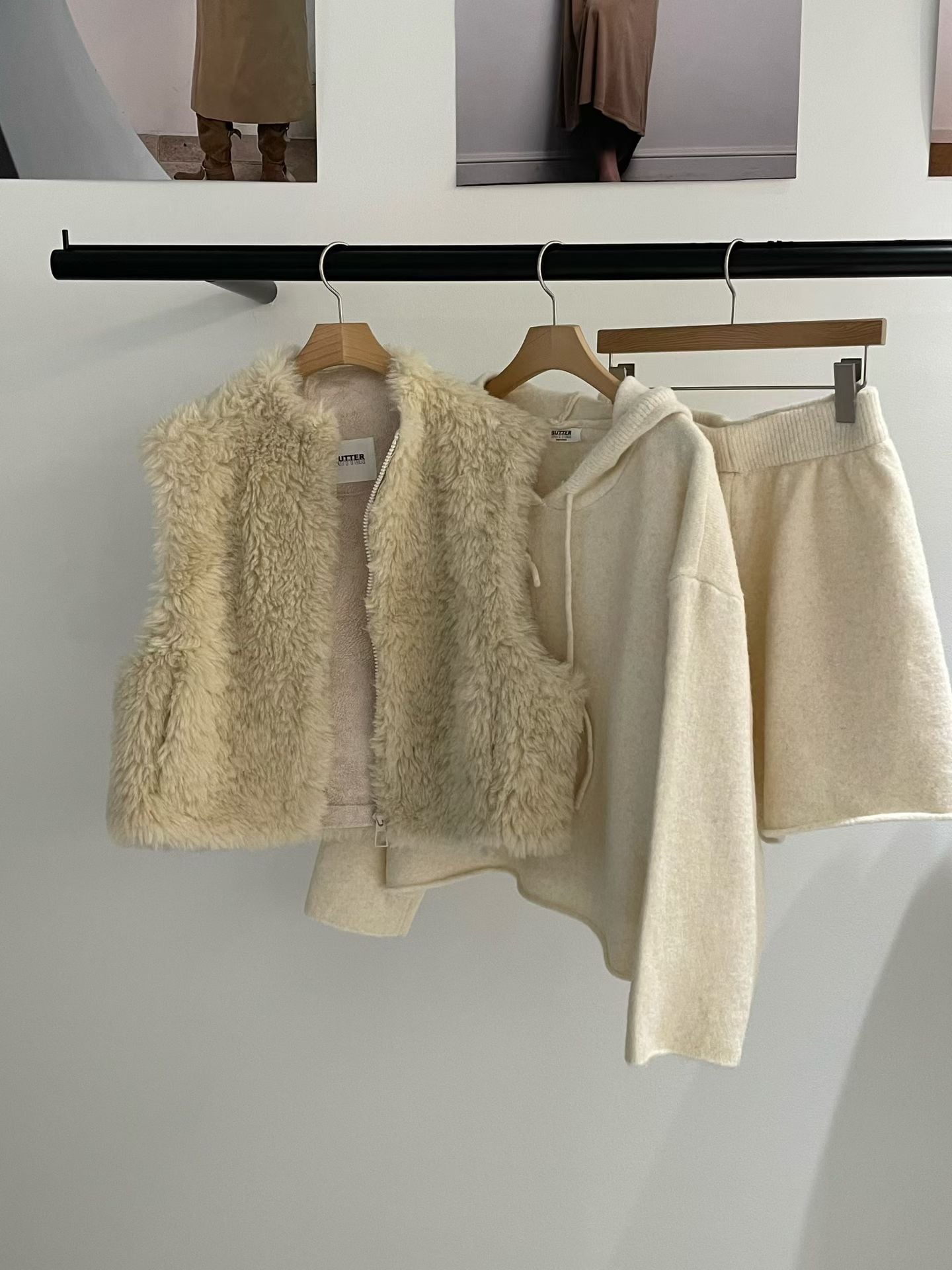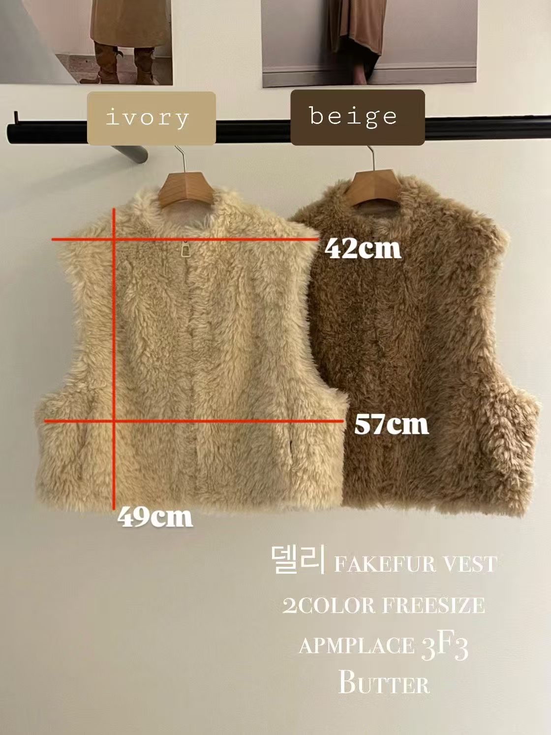 BT36 毛毛背心外套 2色 杏/卡其 Chest 44" length 19"