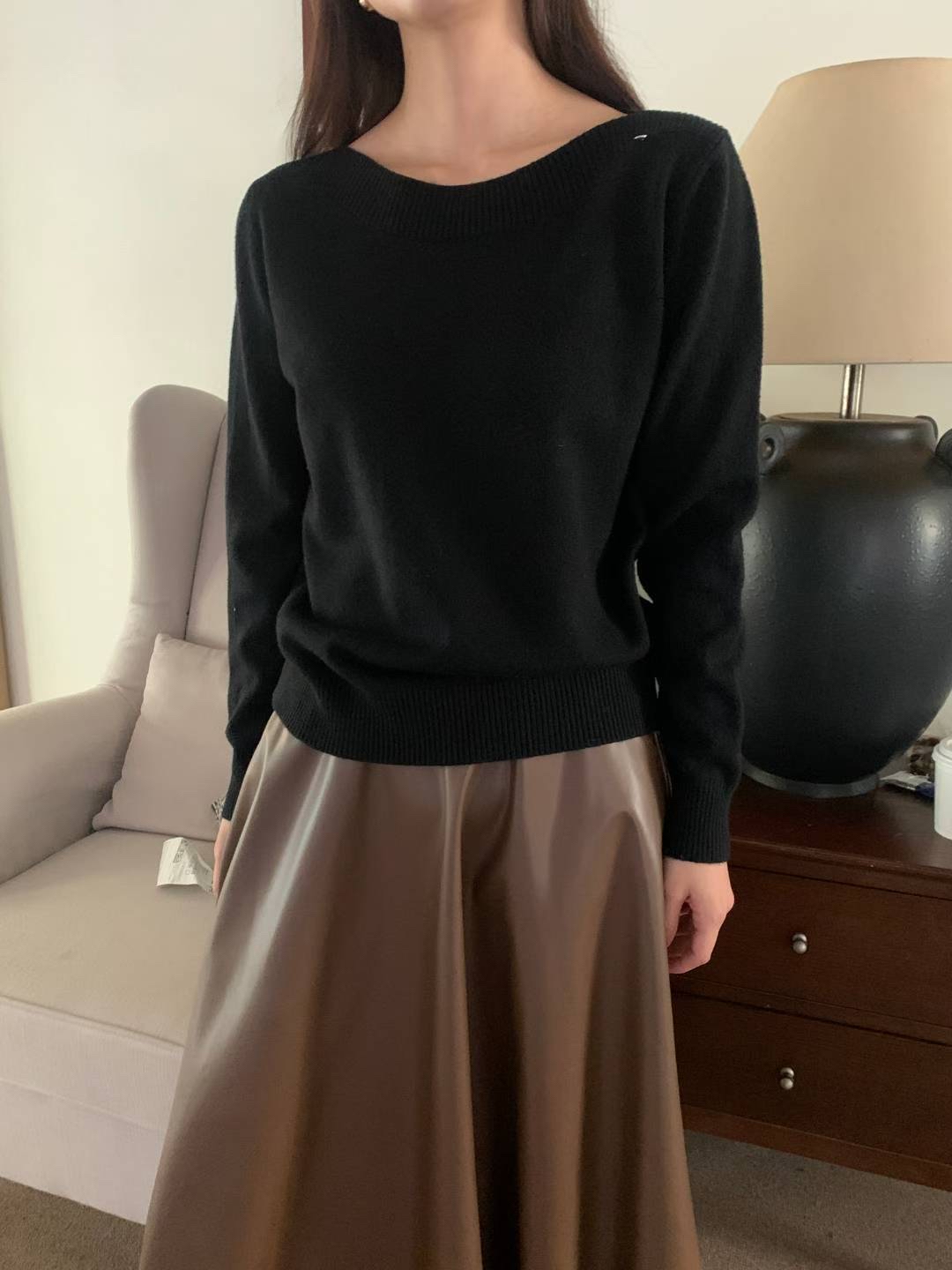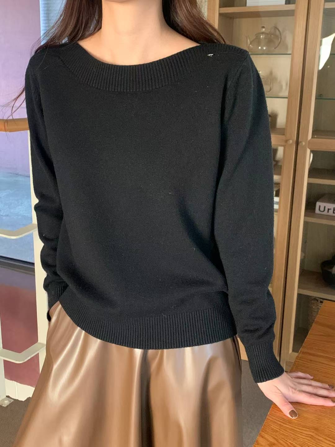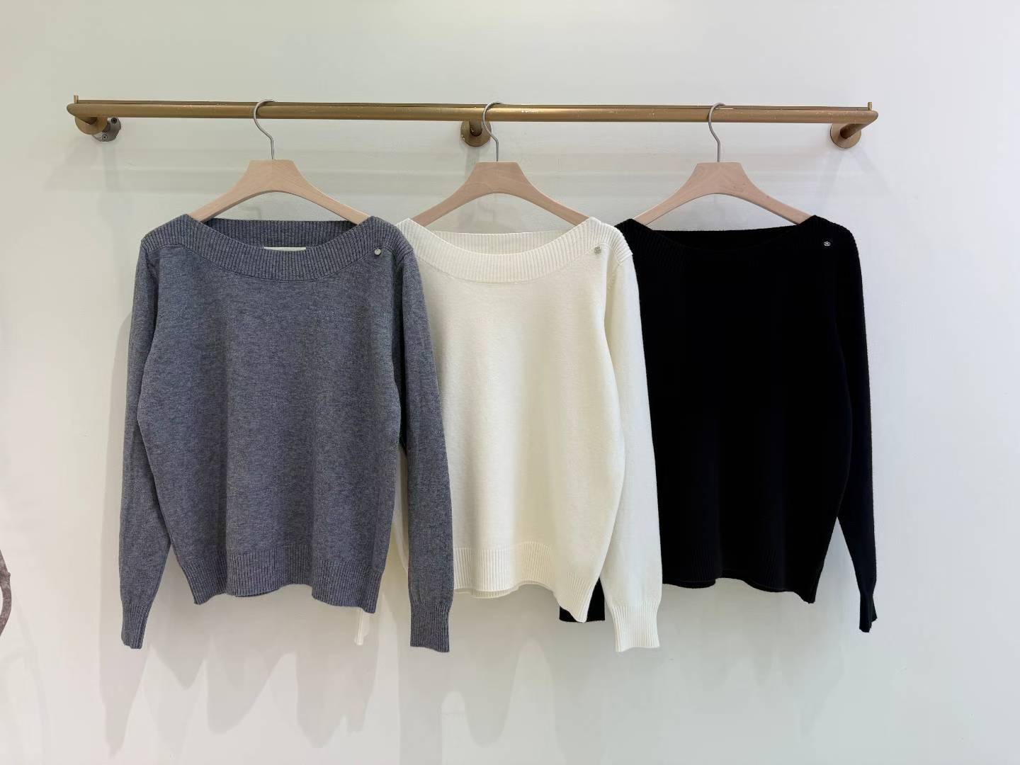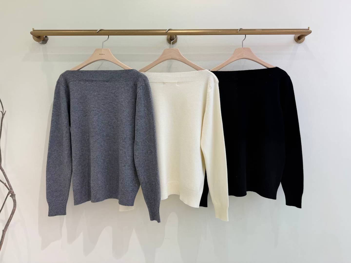 CT01 一字領淨色針織Top 3色 灰/米/黑 Chest 40-56" length 23"