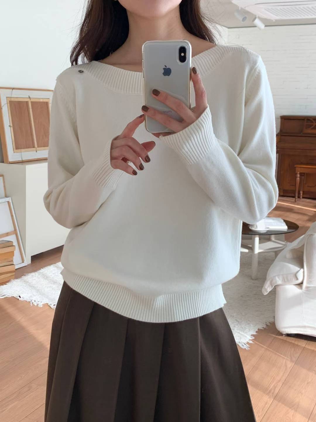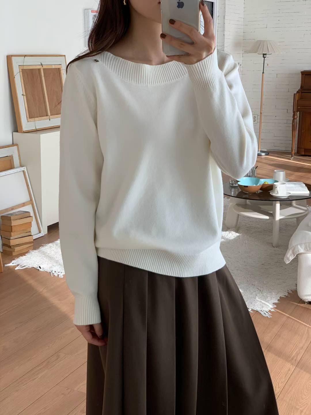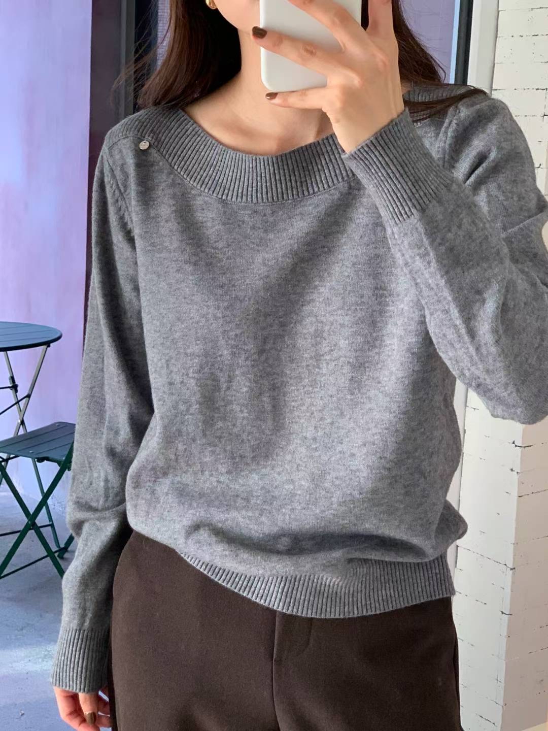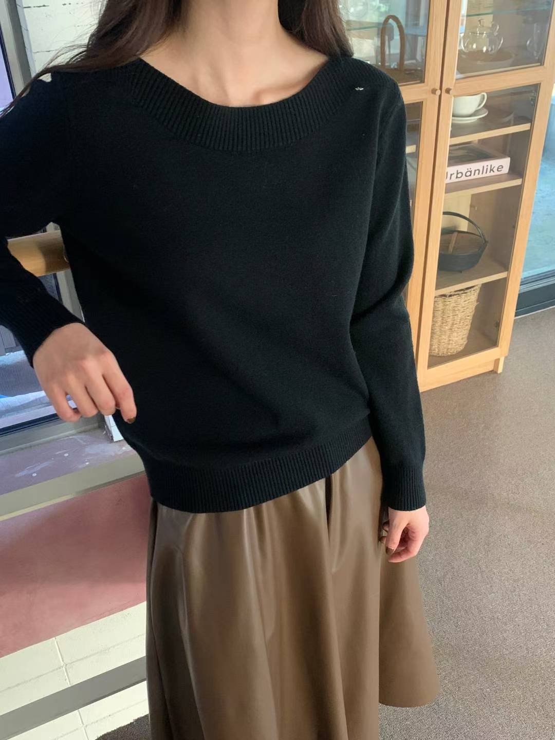 CT01 一字領淨色針織Top 3色 灰/米/黑 Chest 40-56" length 23"