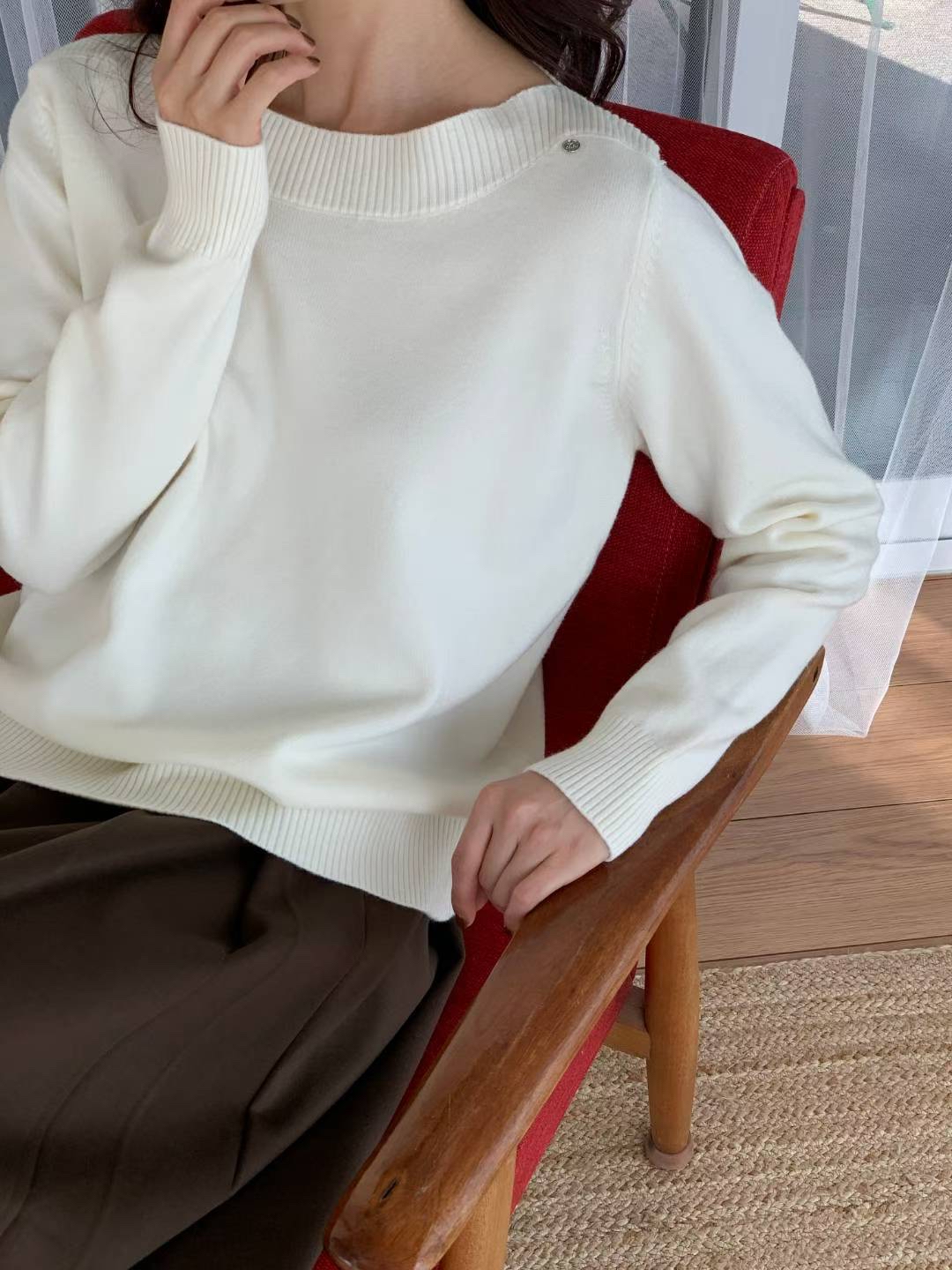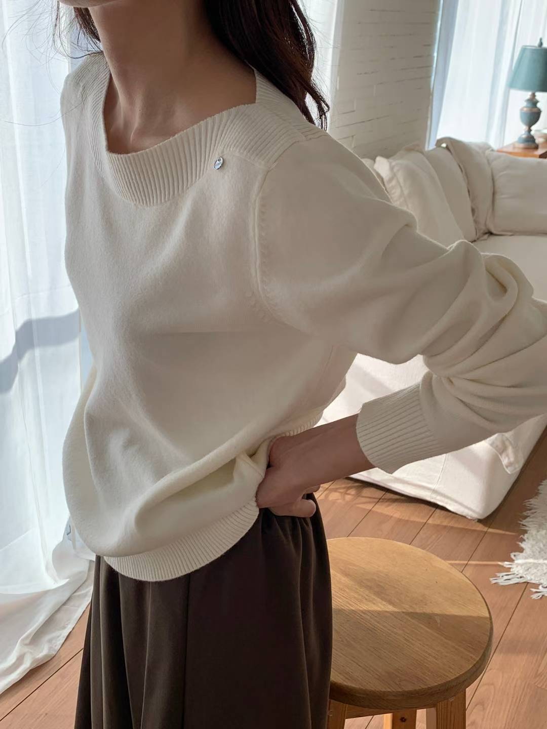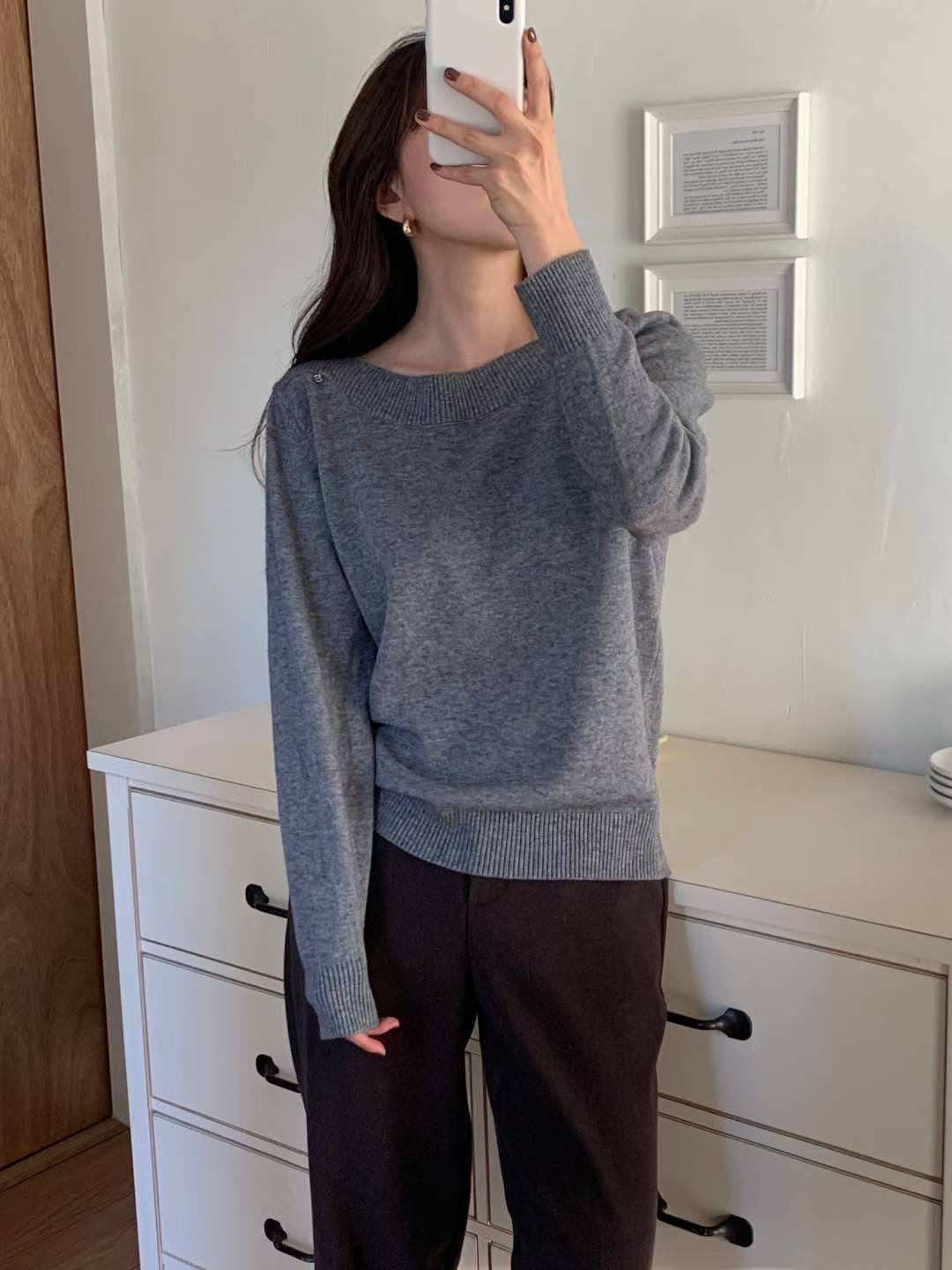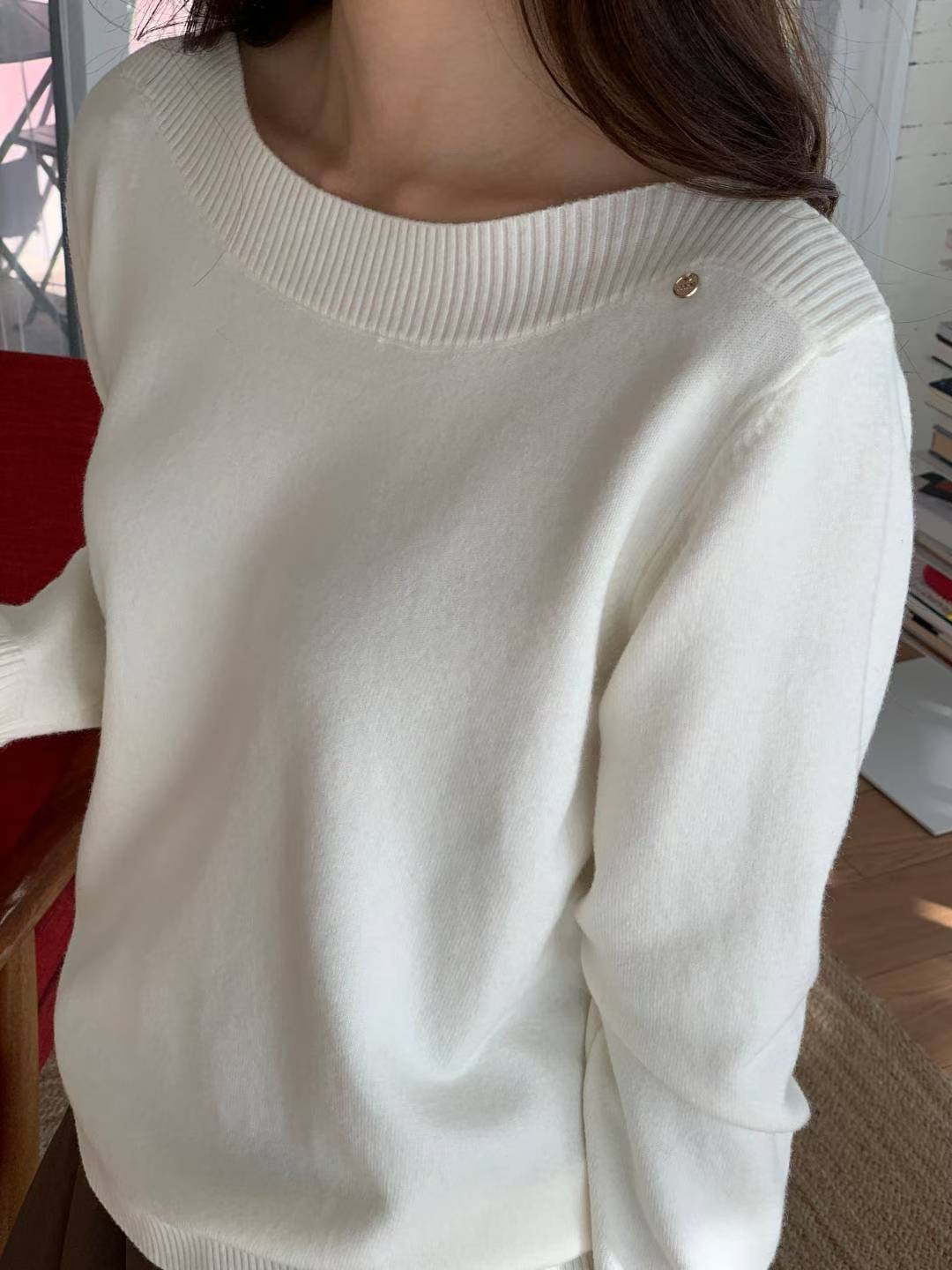 CT01 一字領淨色針織Top 3色 灰/米/黑 Chest 40-56" length 23"
