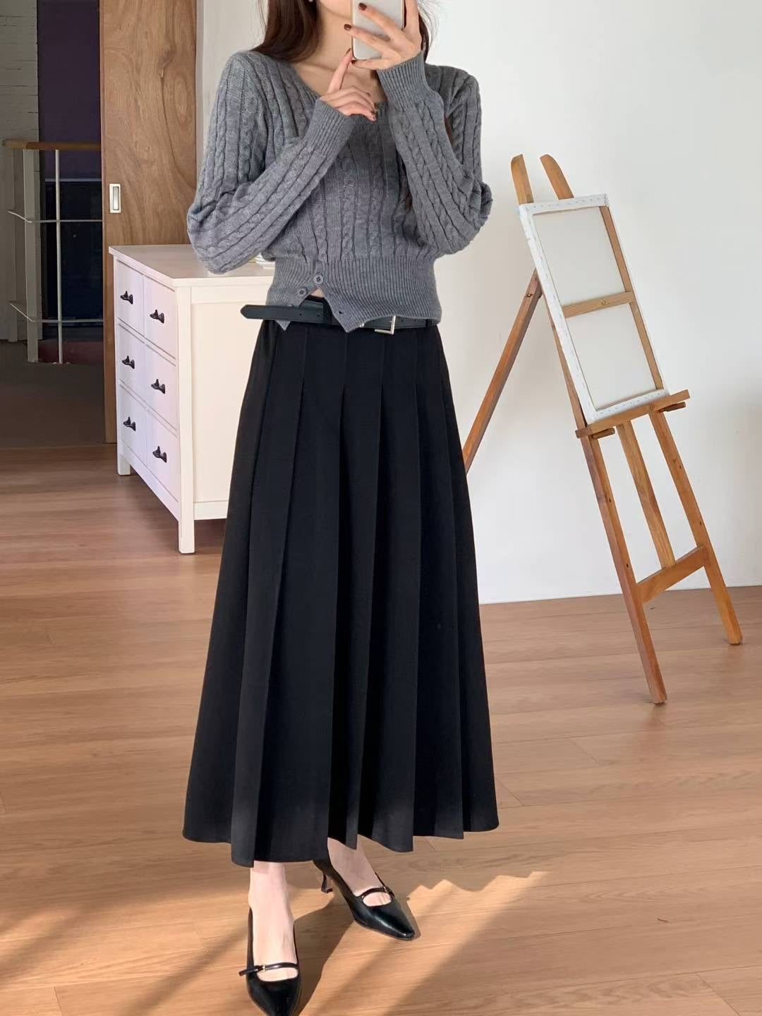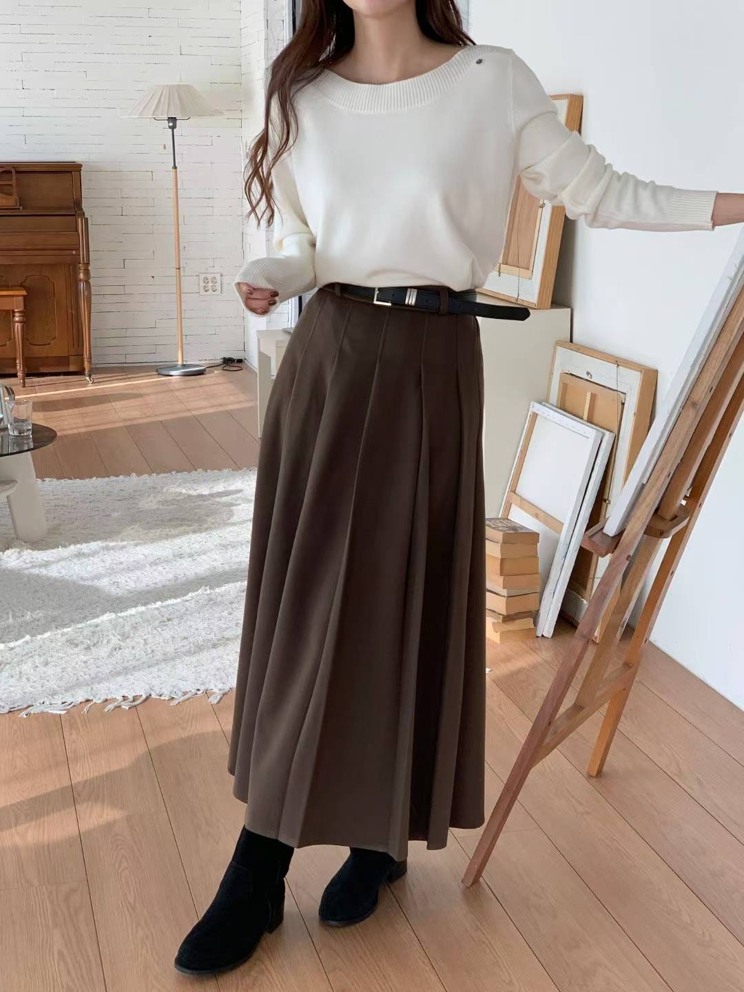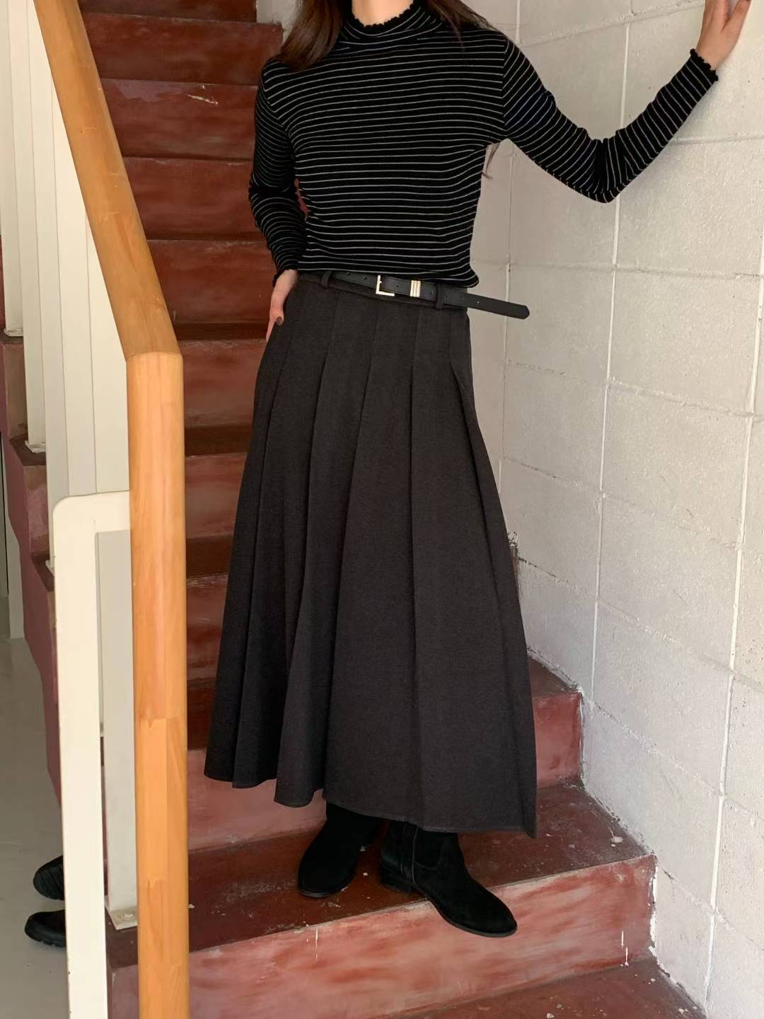 CT02 連belt 百摺裙 3色 深灰/啡/黑 Waist 26-36" hip 42" length 34"