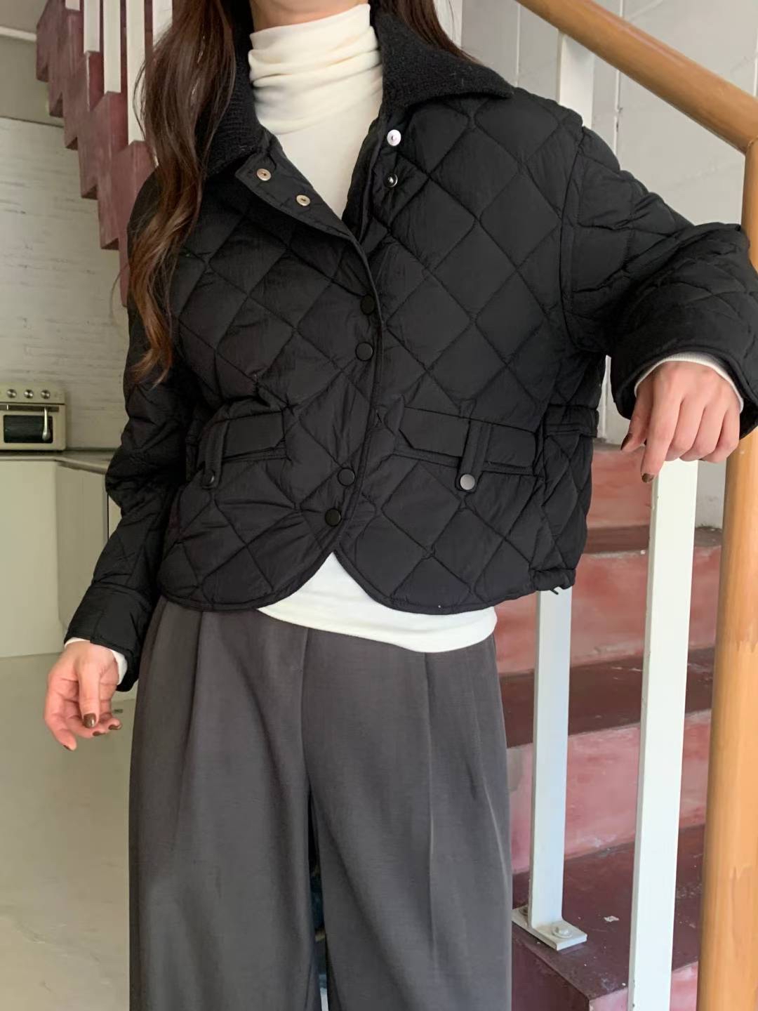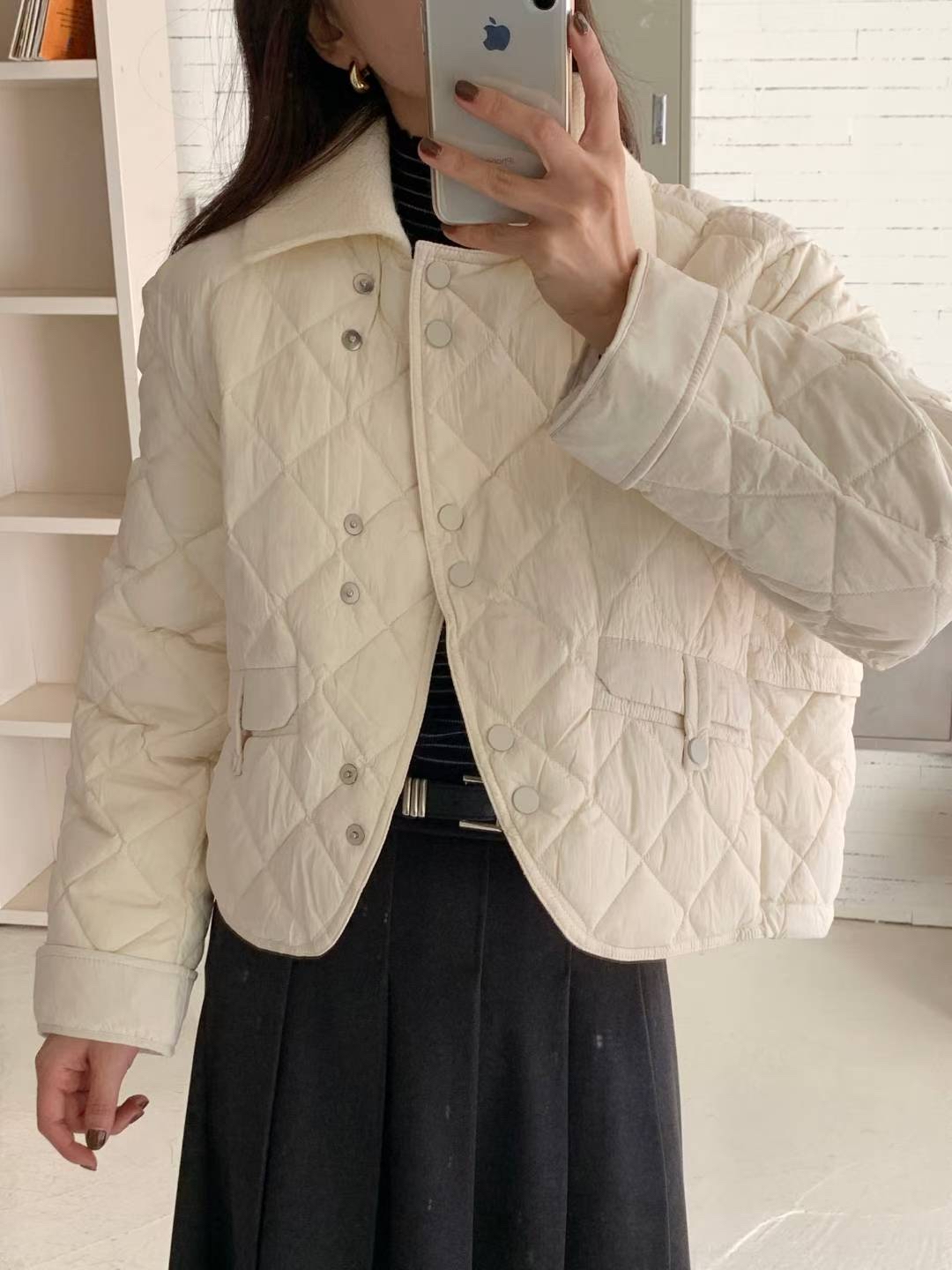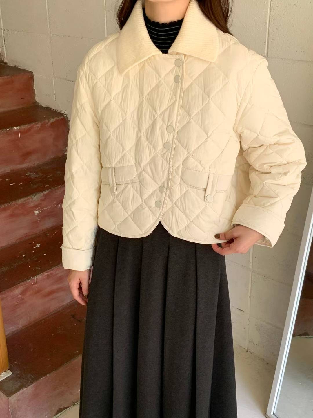 CT03 夾綿反領方格jk 2色 米/黑 Shoulder 18" chest 48" length 20"