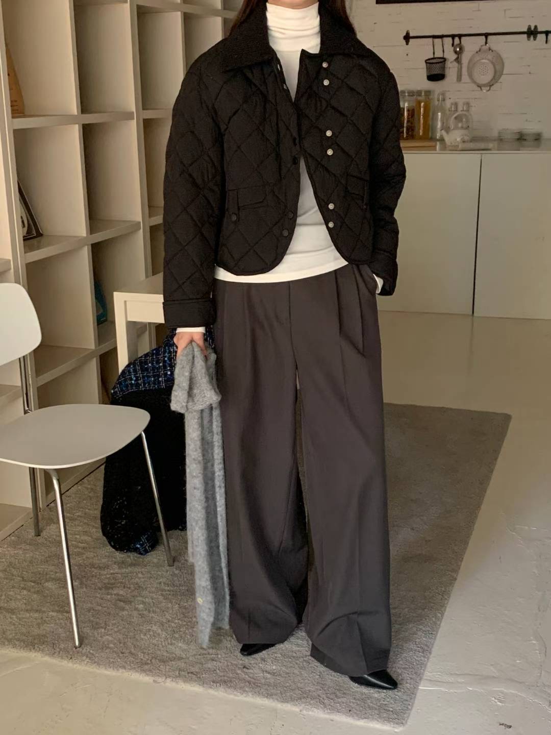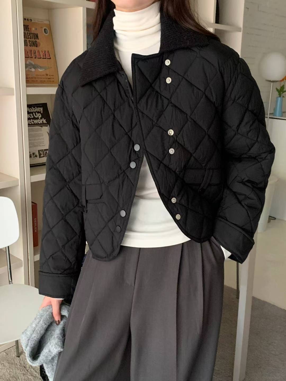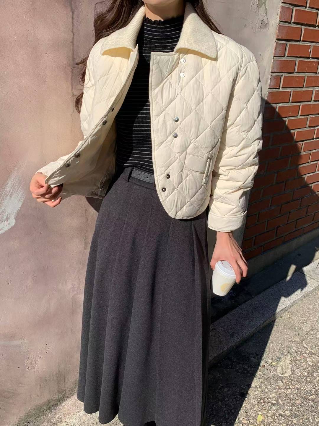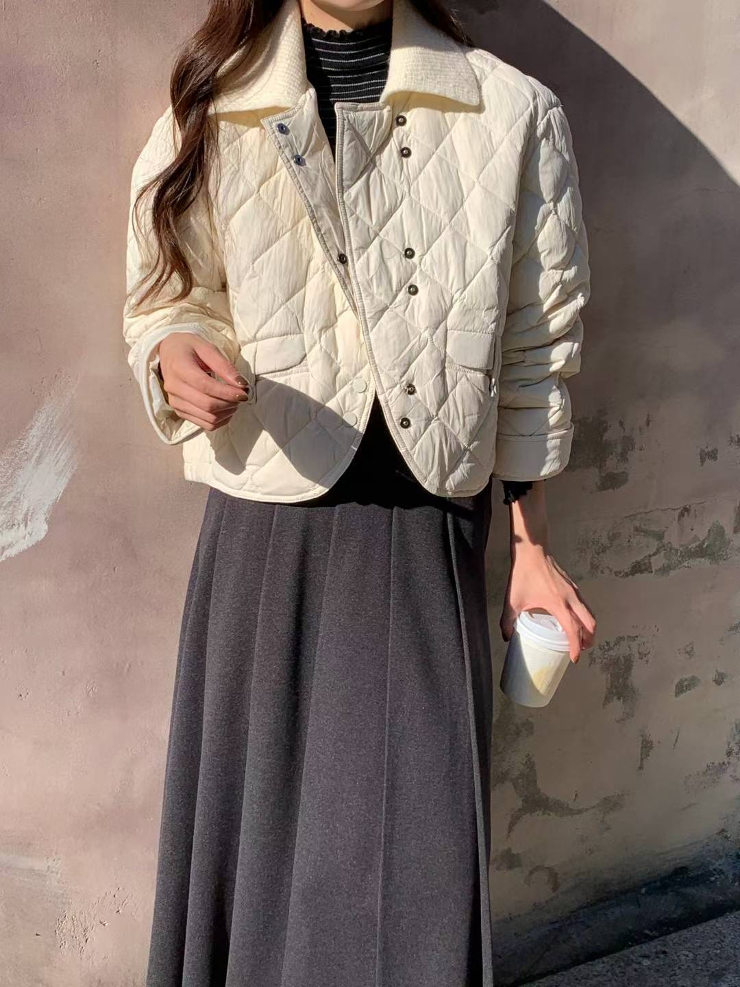 CT03 夾綿反領方格jk 2色 米/黑 Shoulder 18" chest 48" length 20"