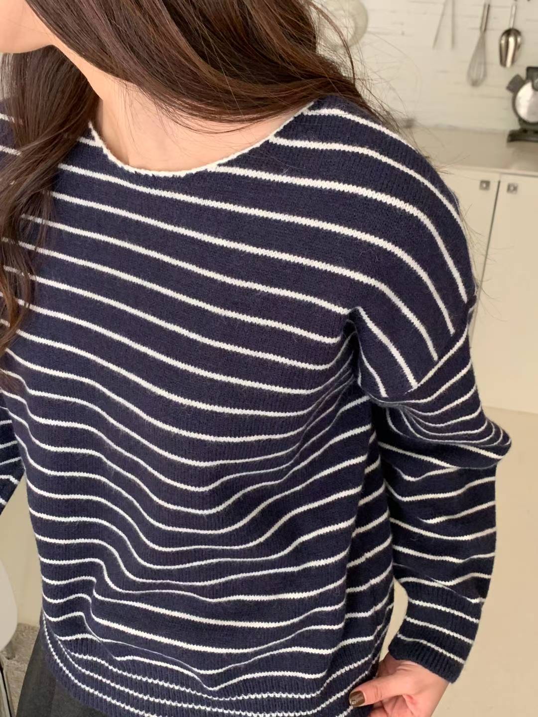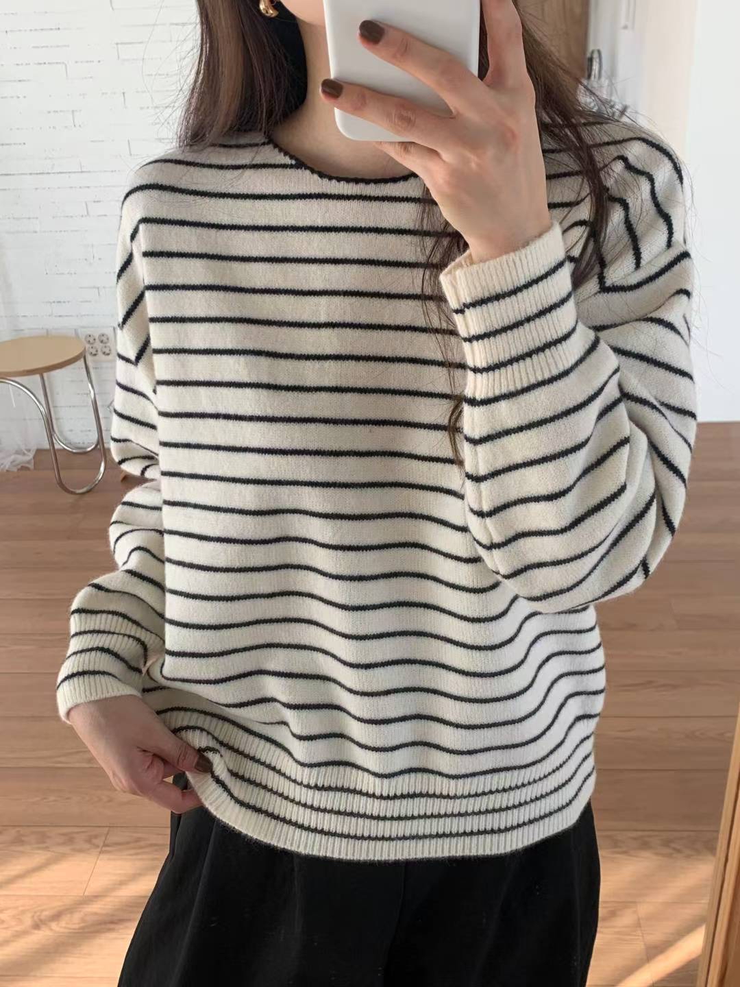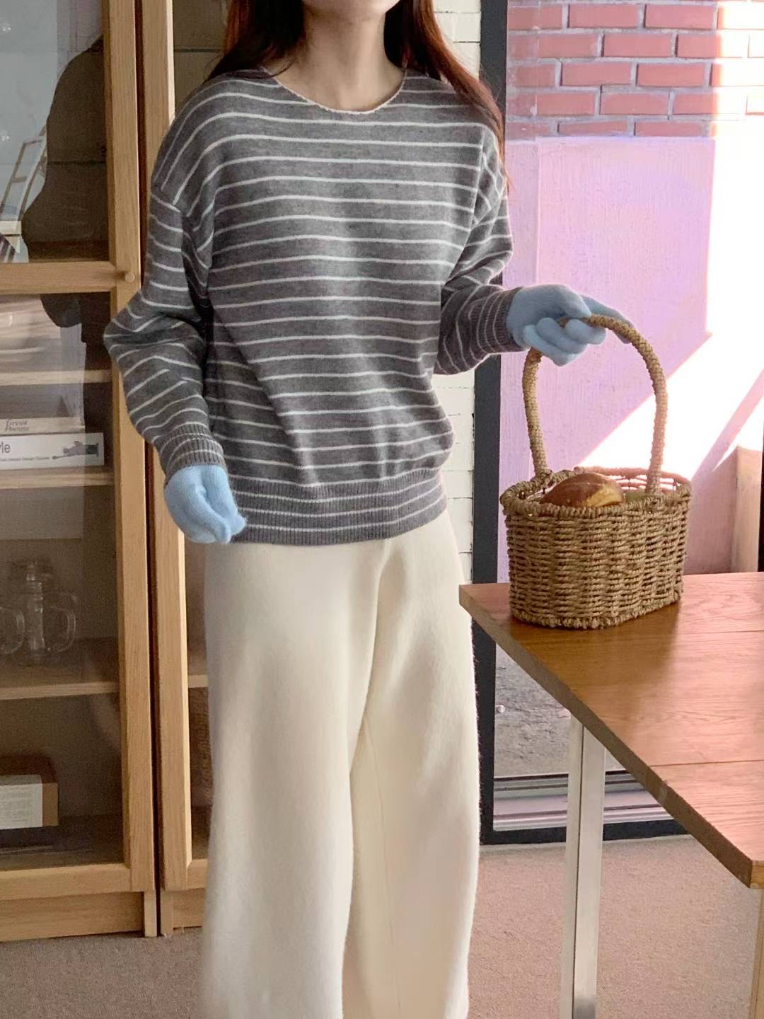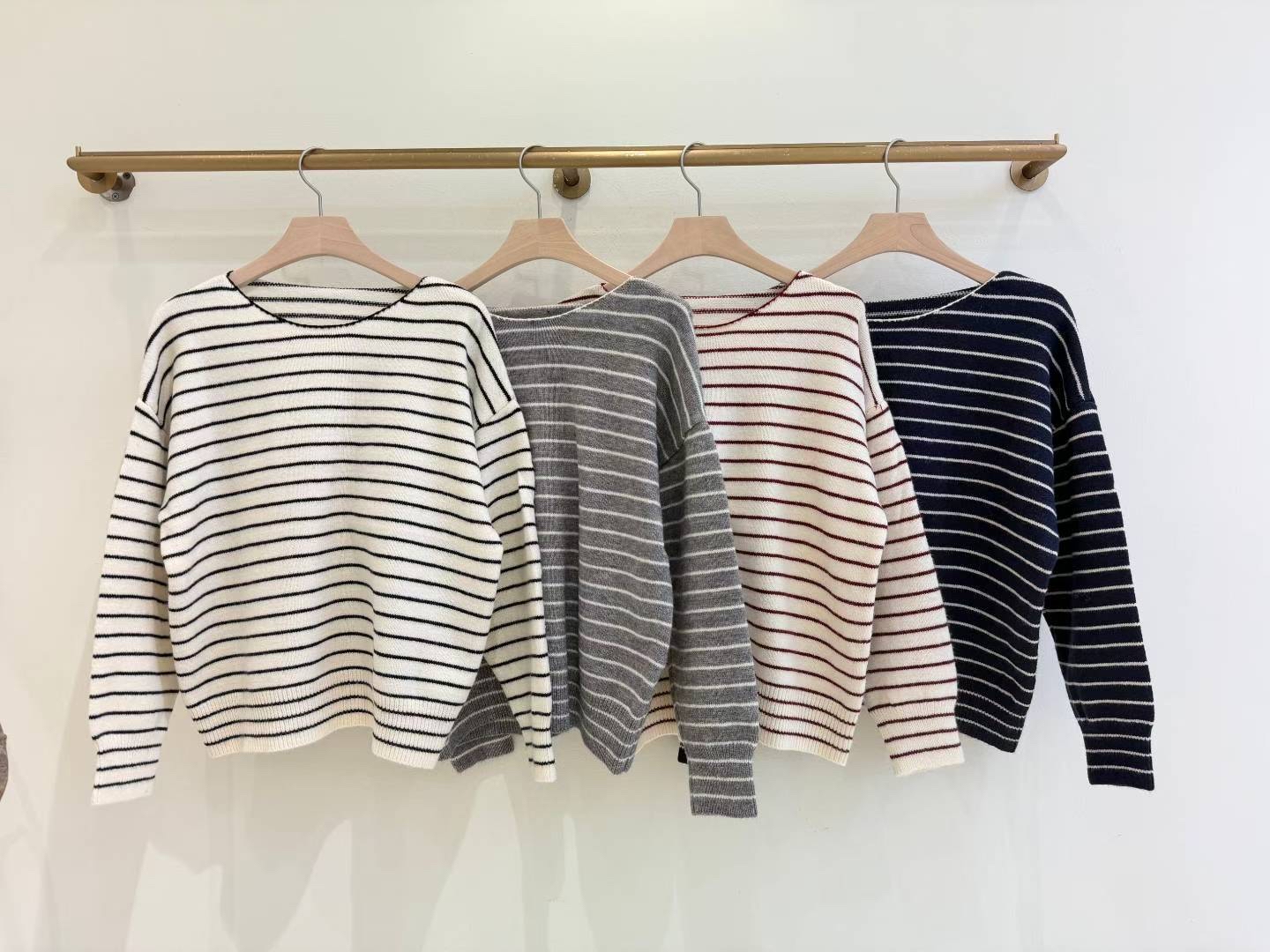 CT07 大圓領間條Top 4色 米/灰/燕麥/深藍 Chest 44-70" length 23.5"