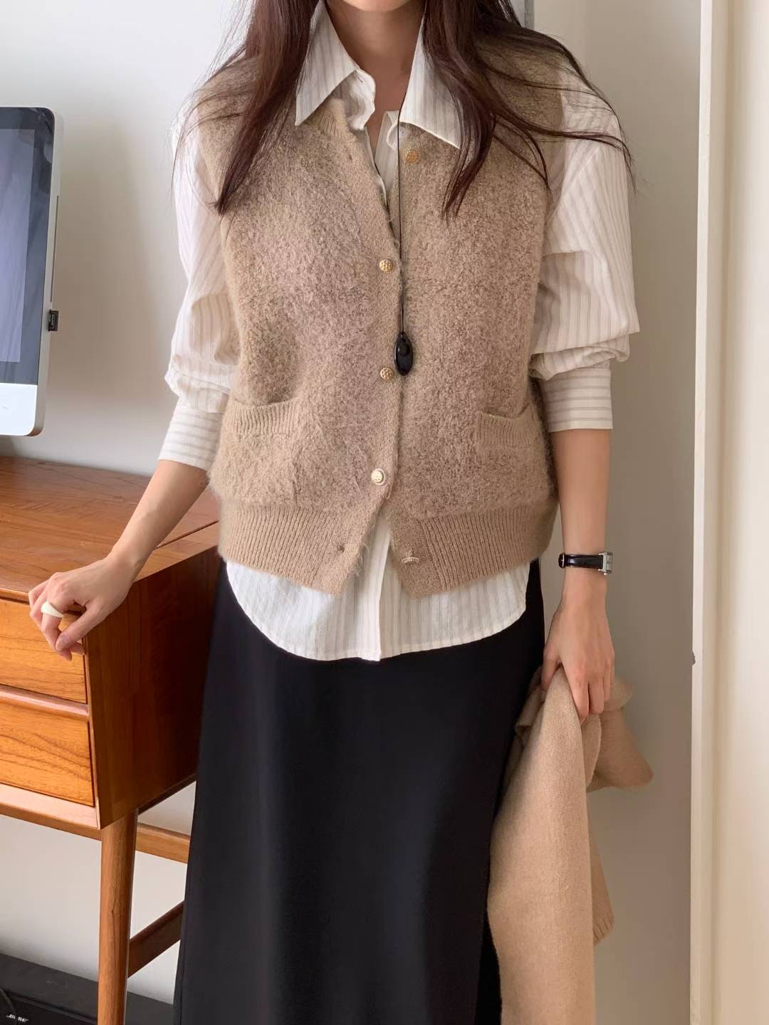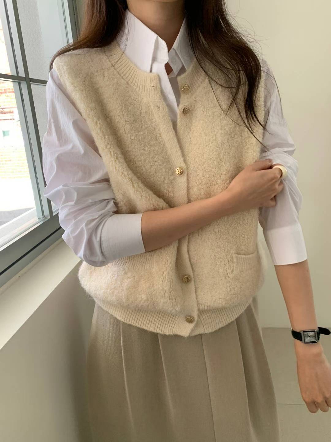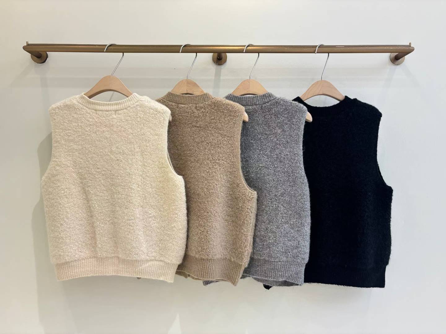 CT08 毛毛背心外套 4色 杏/mocha / 灰/黑 Chest 42" length 23.5"