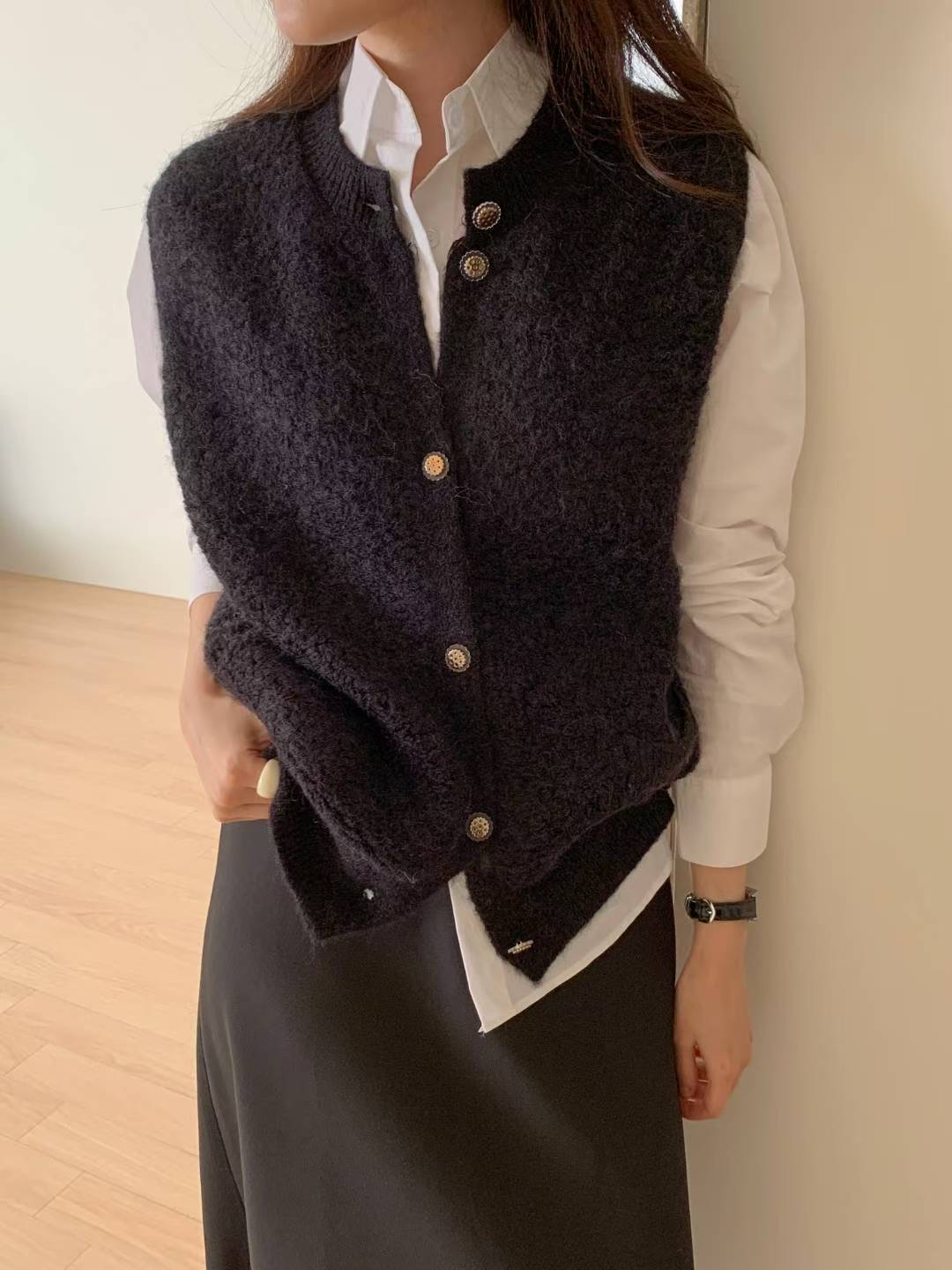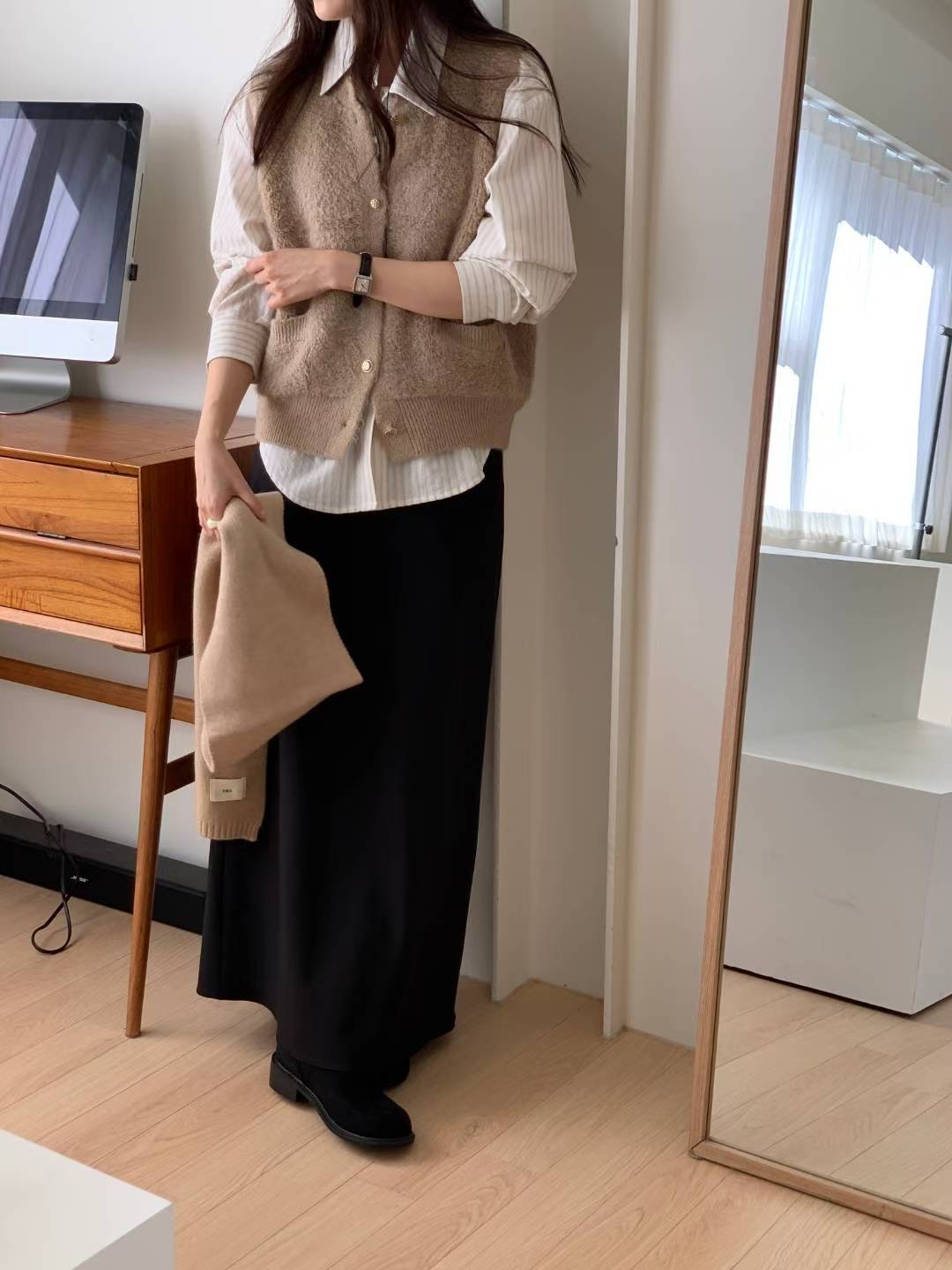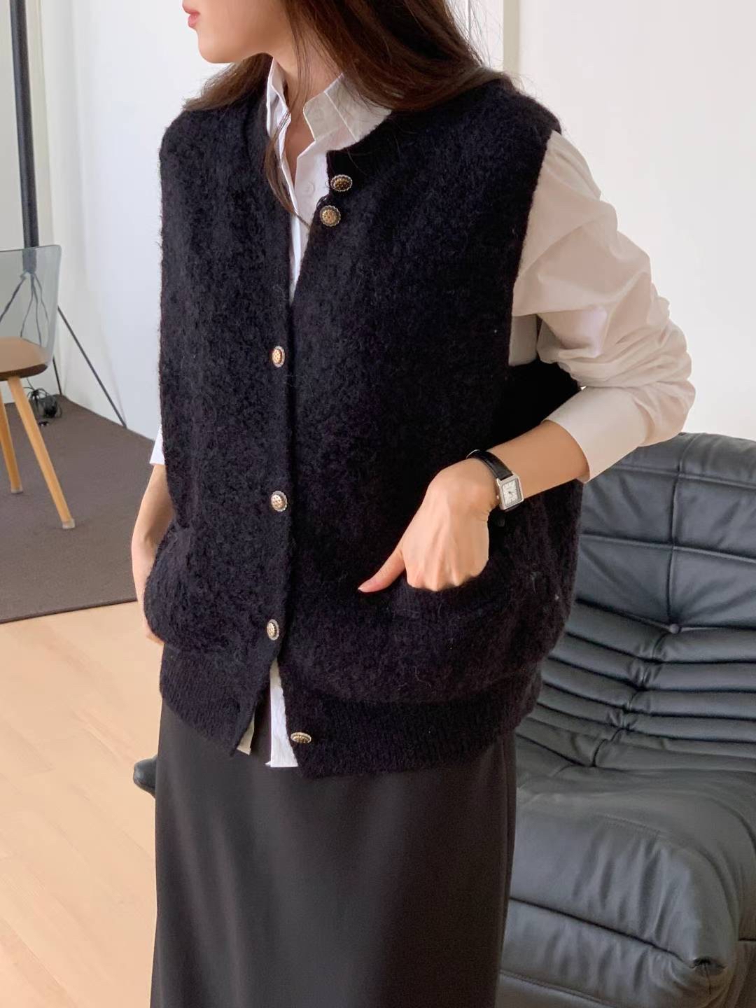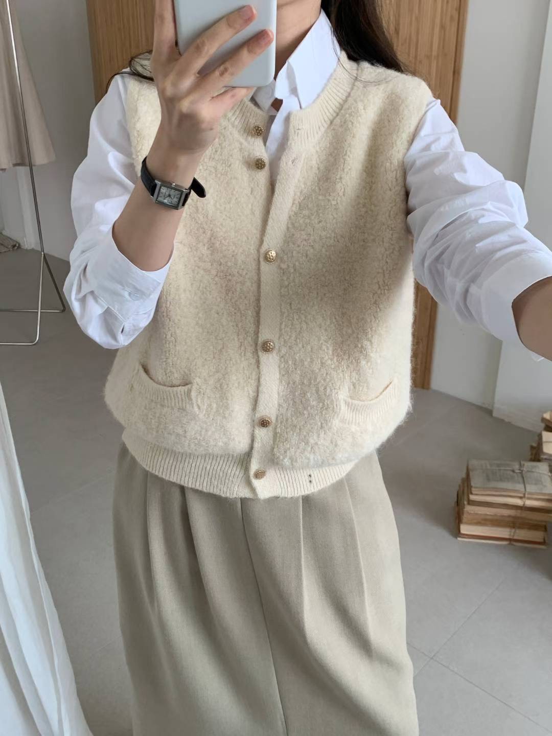 CT08 毛毛背心外套 4色 杏/mocha / 灰/黑 Chest 42" length 23.5"