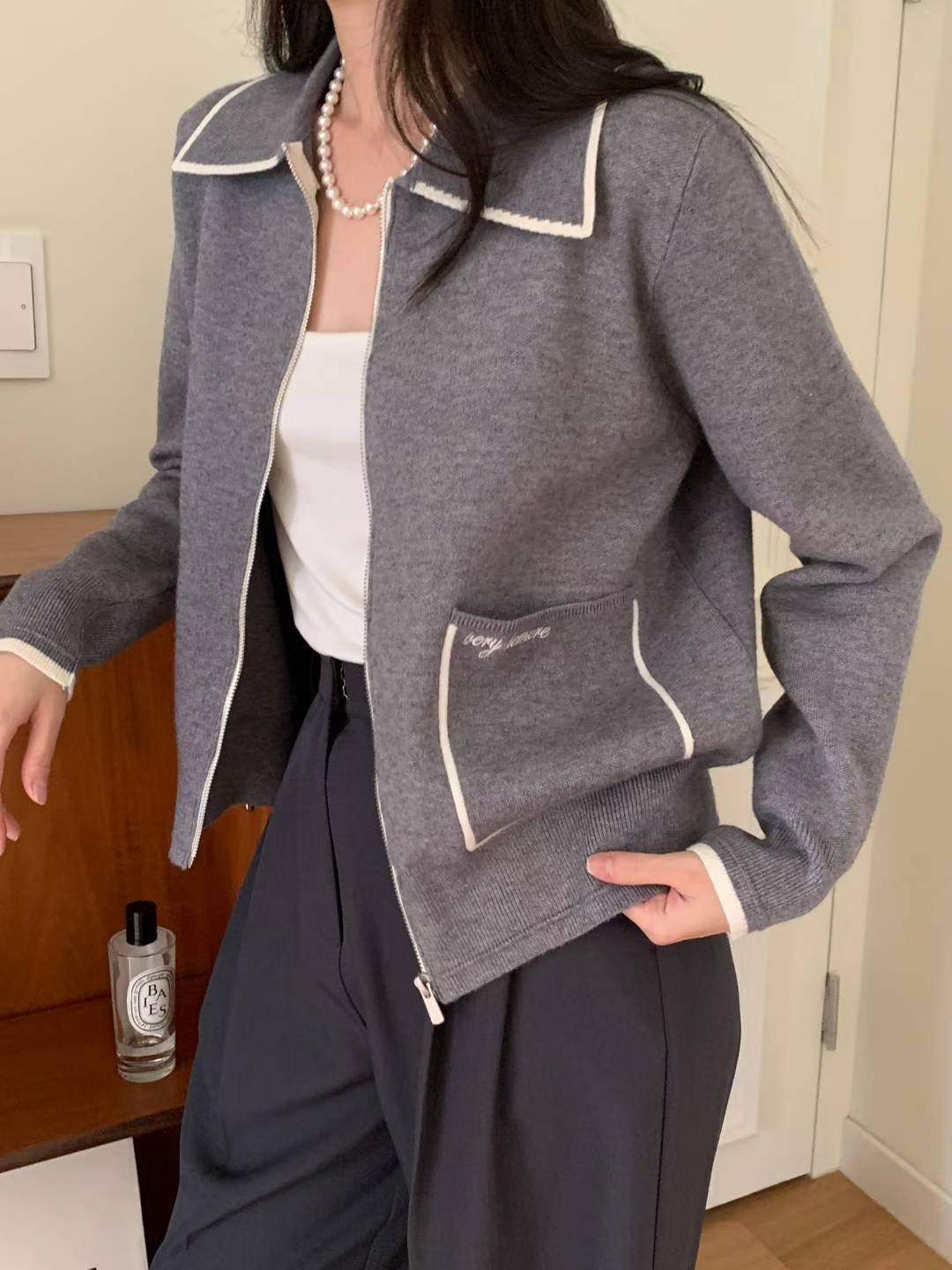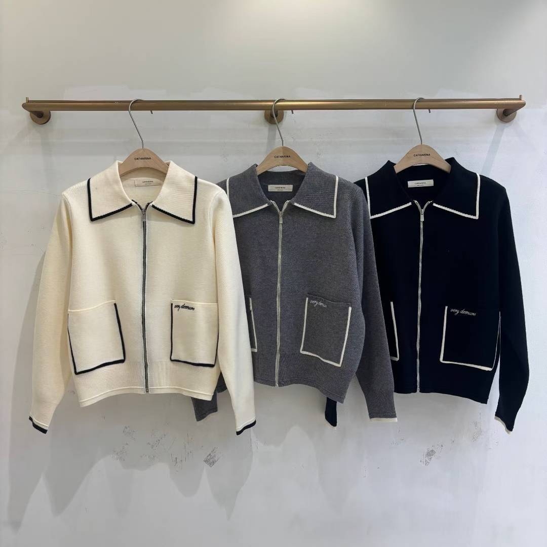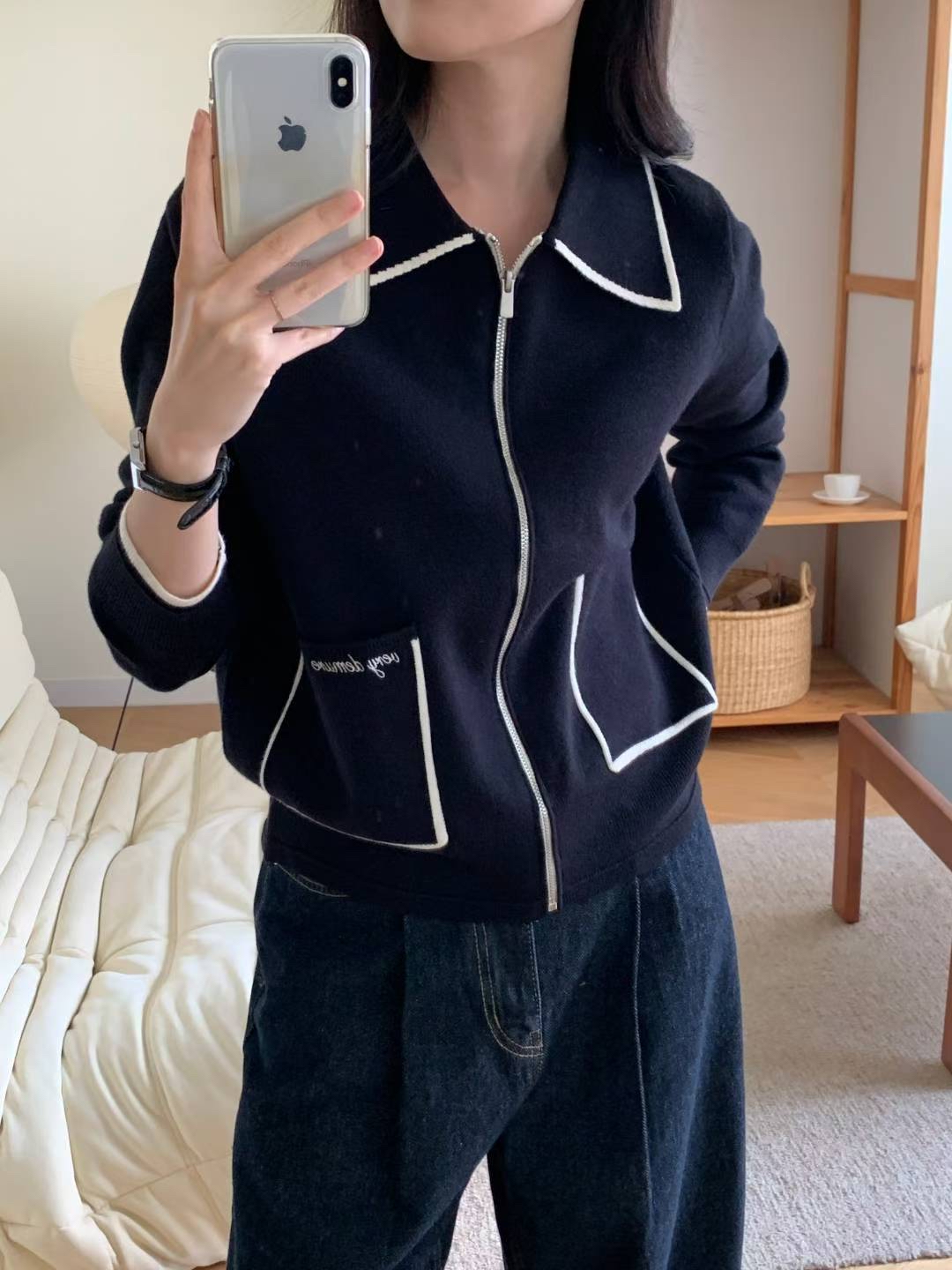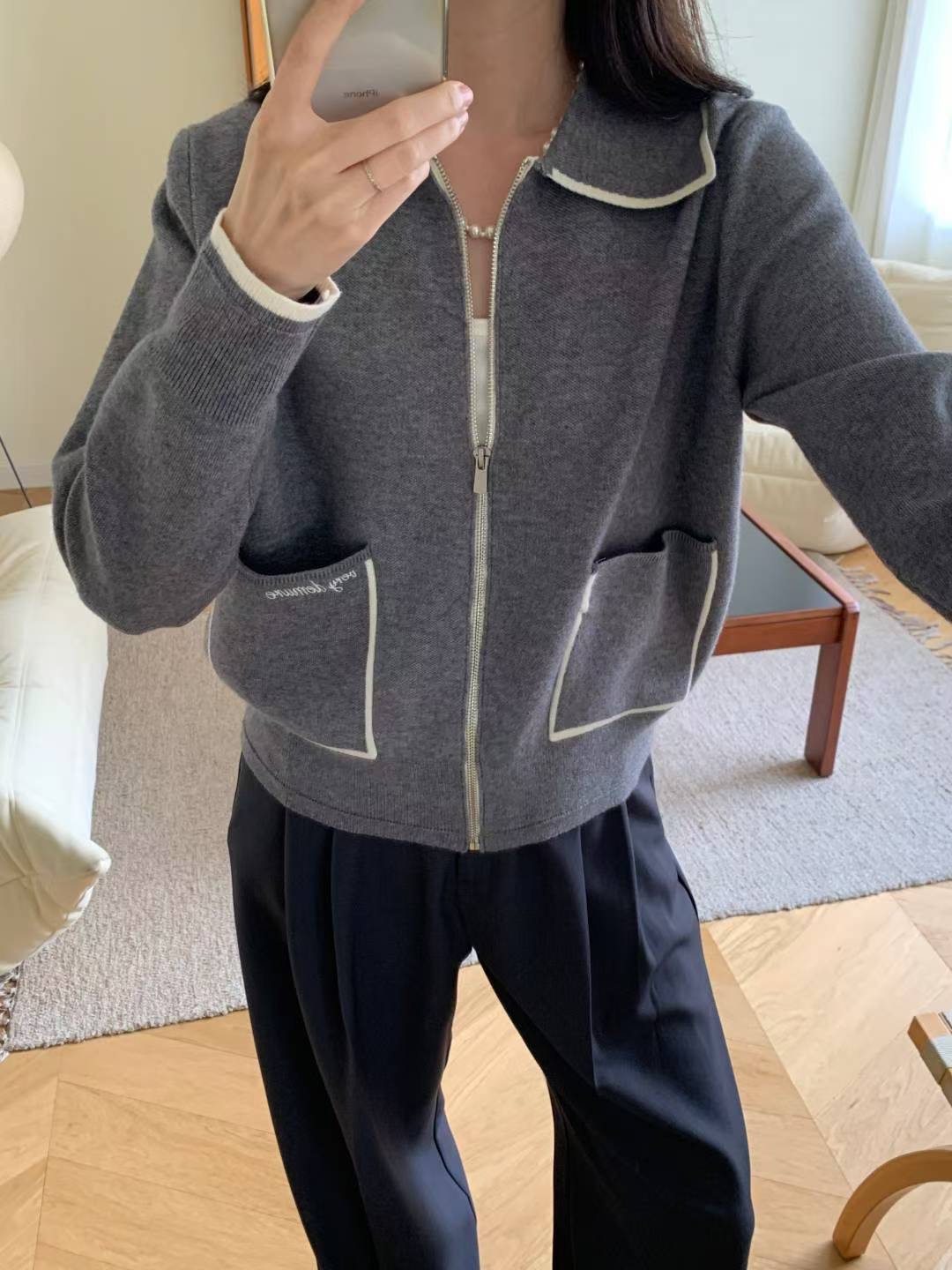 CT10 拼色邊拉鏈外套 3色 米/灰/黑 Shoulder 16" chest 42" length 22"