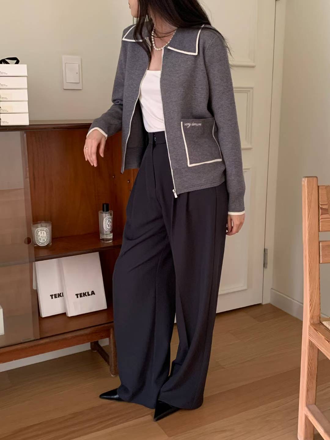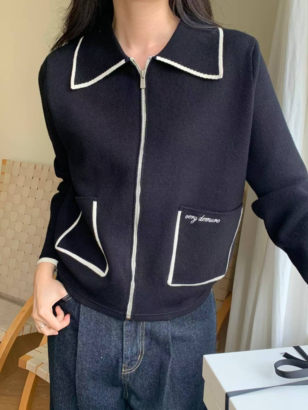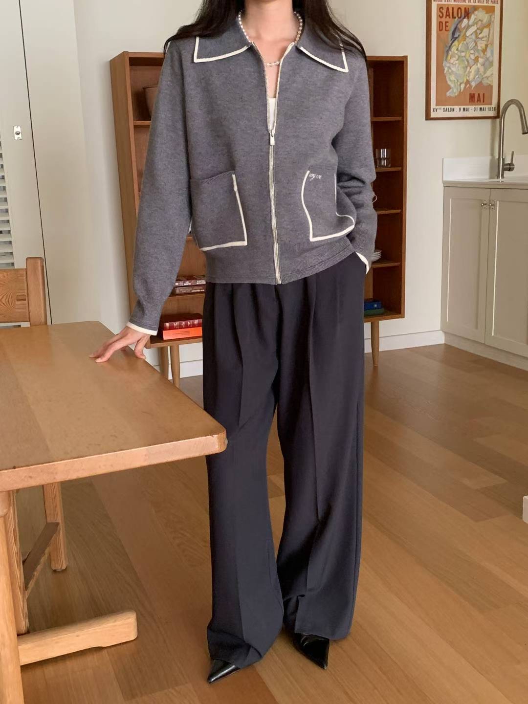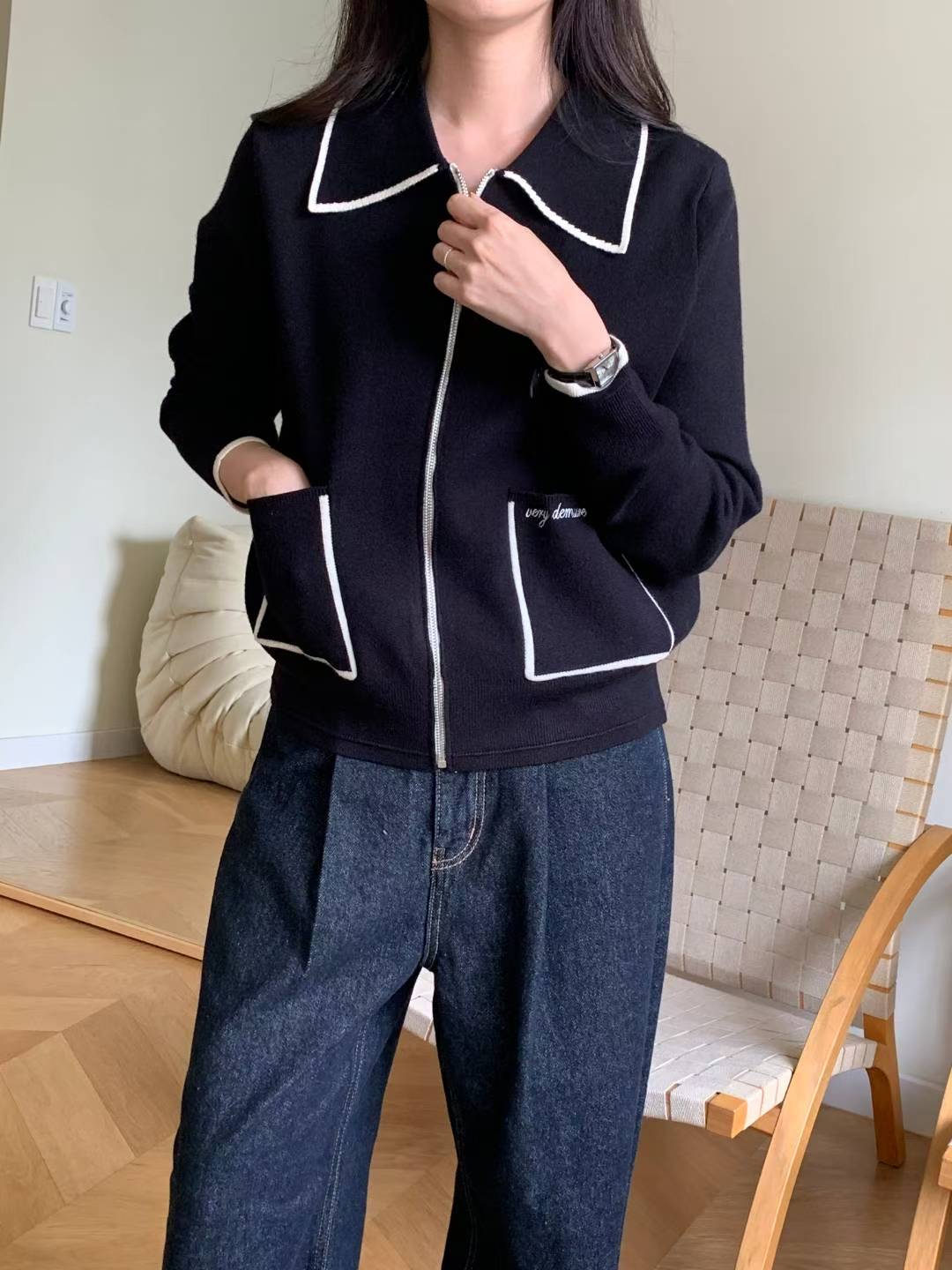 CT10 拼色邊拉鏈外套 3色 米/灰/黑 Shoulder 16" chest 42" length 22"
