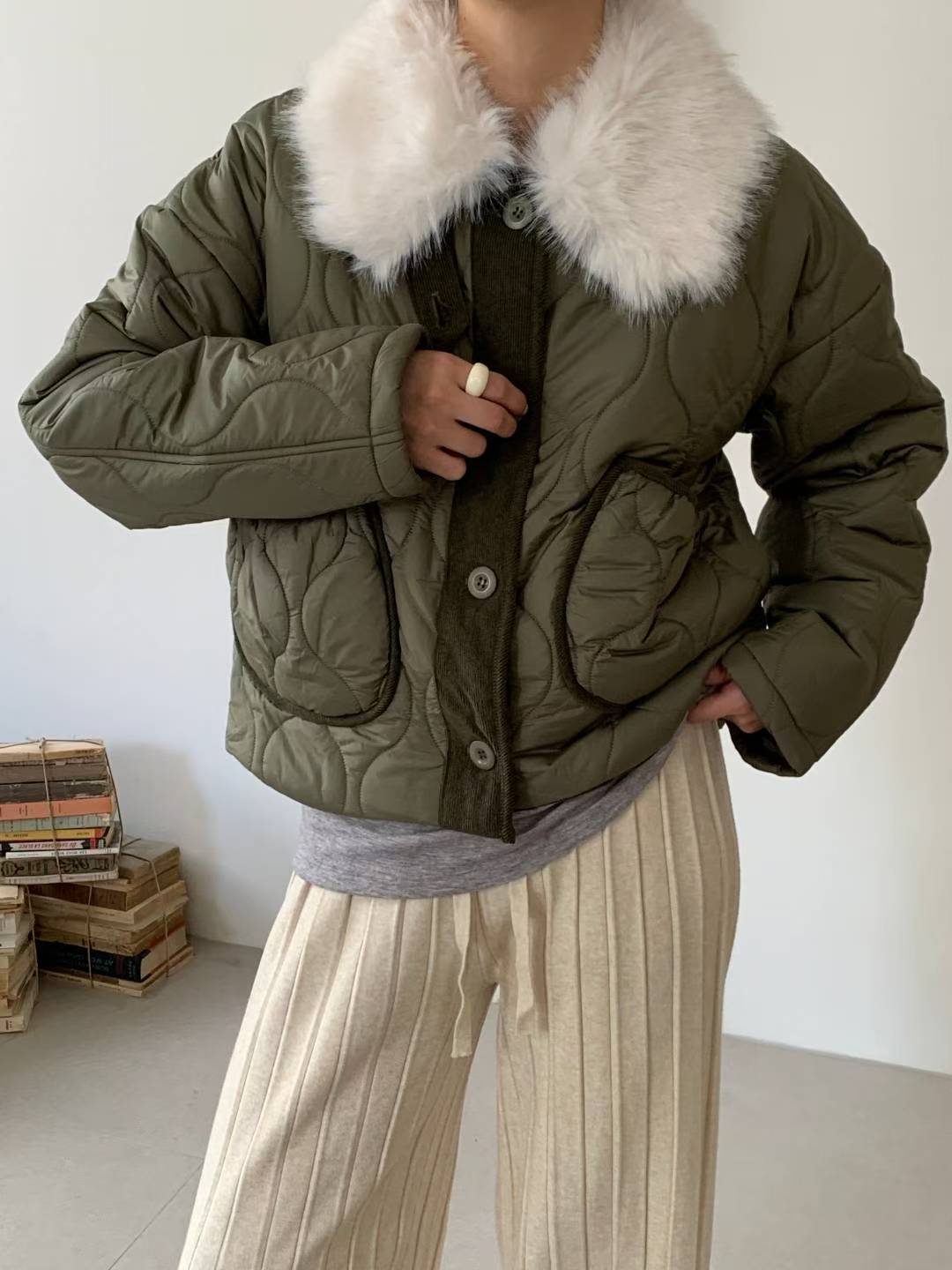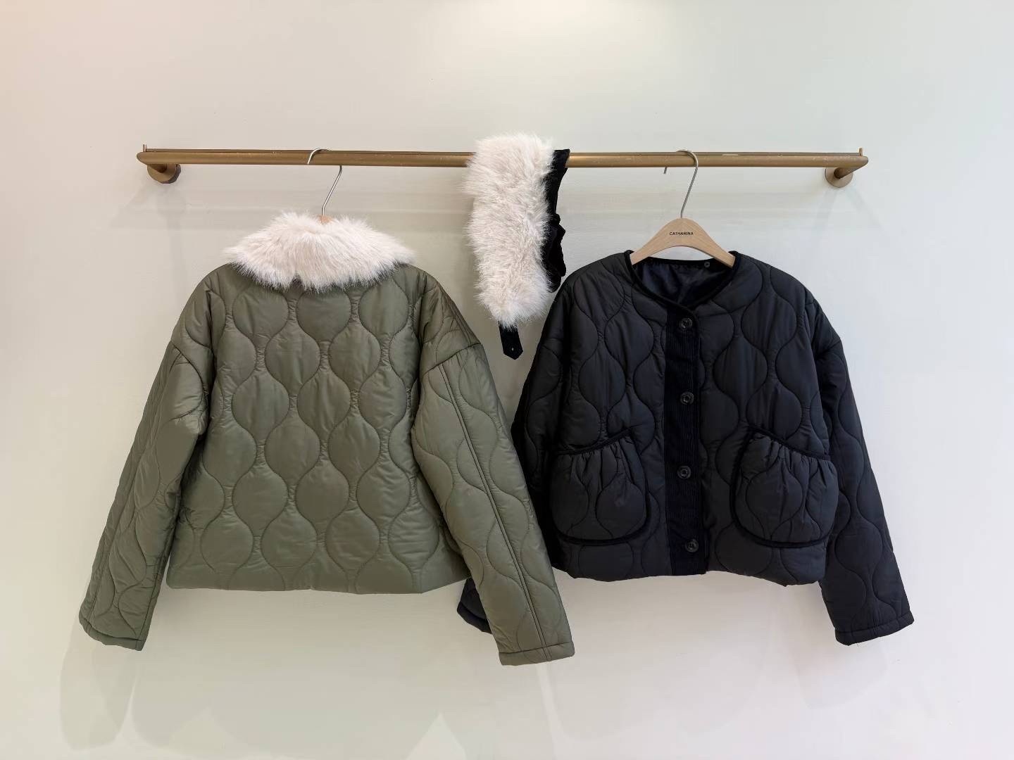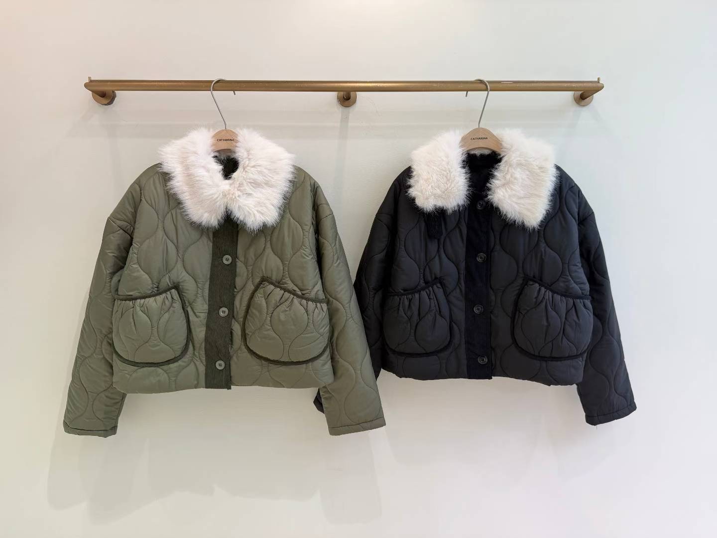 CT15 毛毛領夾綿jk 2色 綠/黑 Shoulder 16" chest 44" length 21.5"