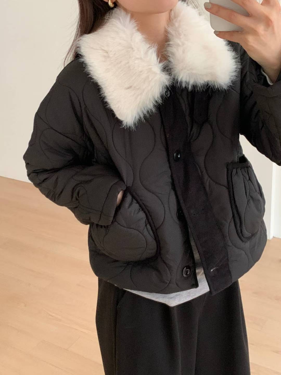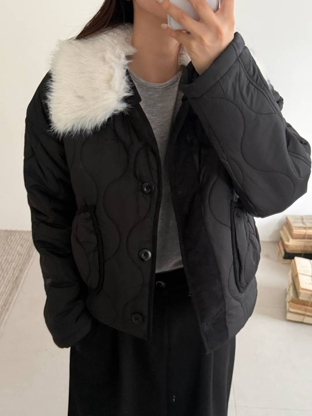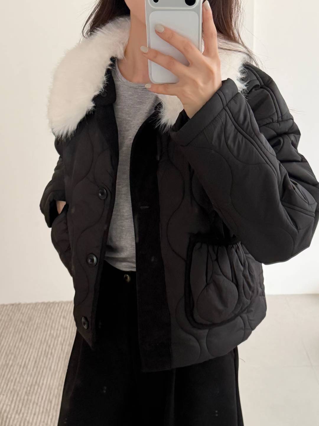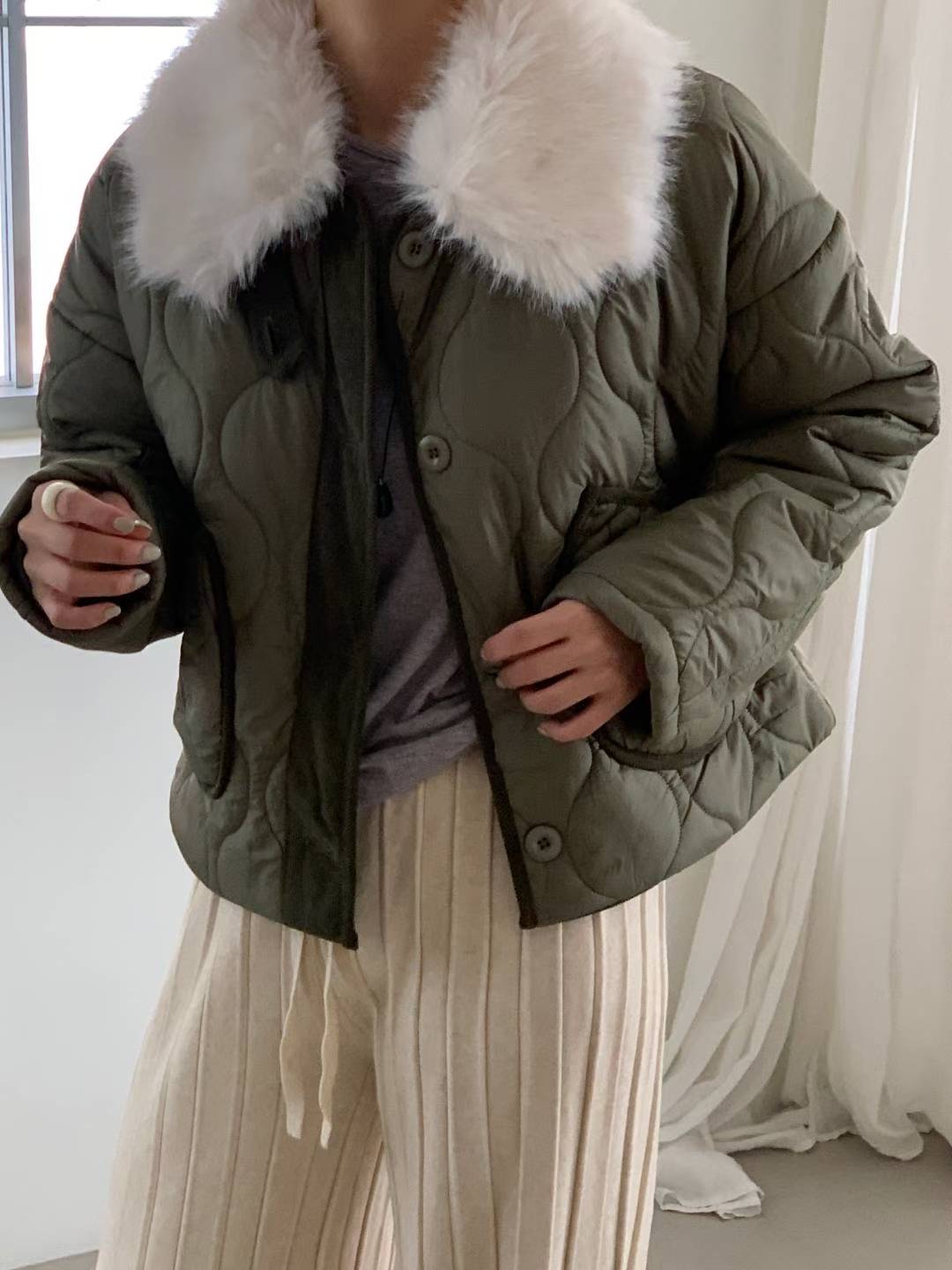 CT15 毛毛領夾綿jk 2色 綠/黑 Shoulder 16" chest 44" length 21.5"