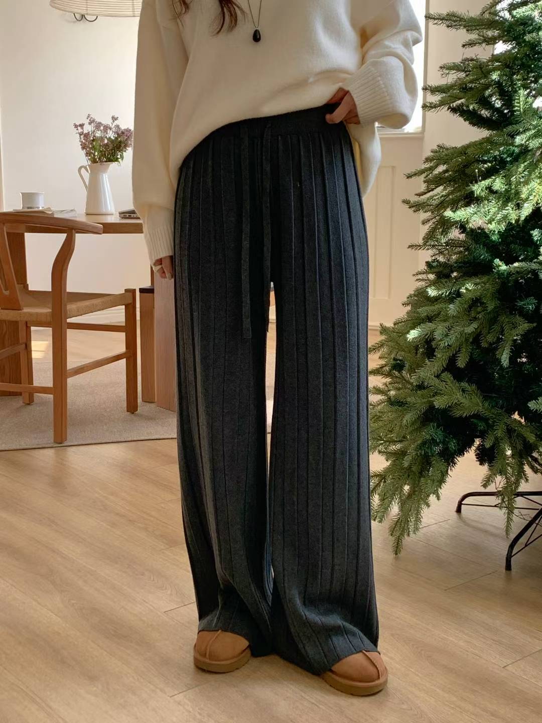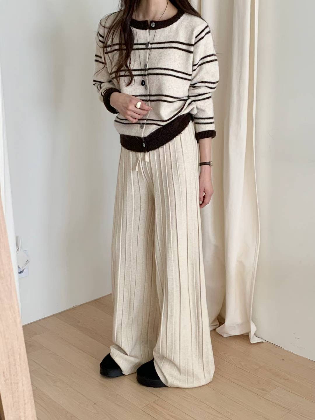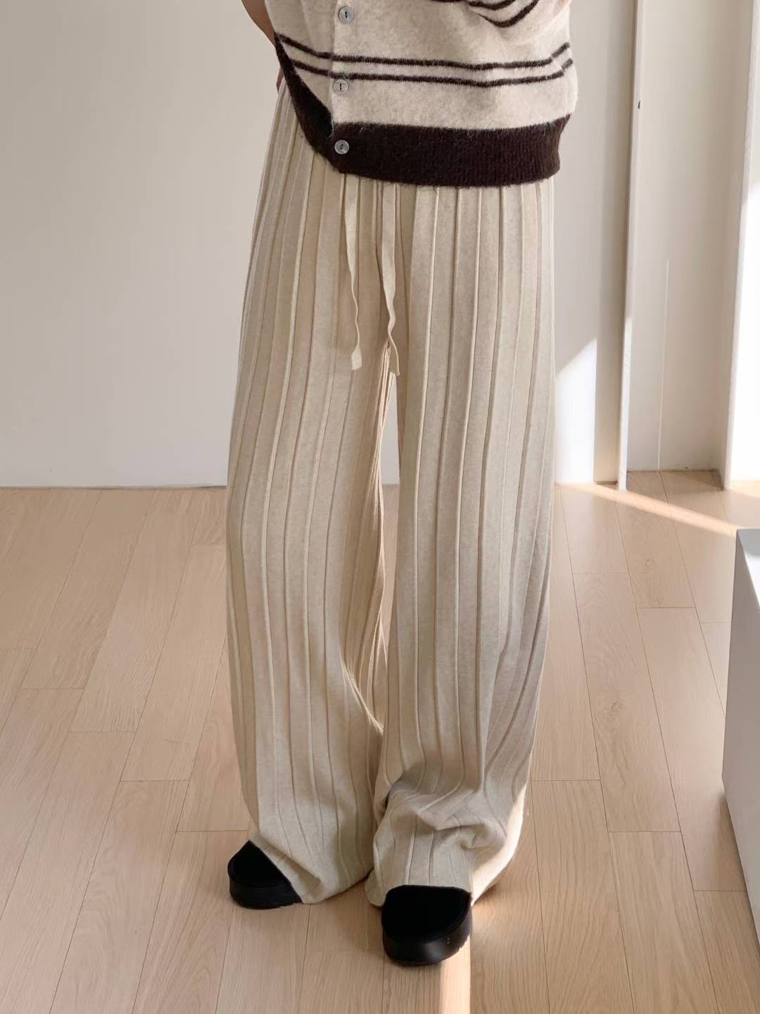 CT16 直紋針織褲 3色 米杏/深灰/黑 Waist 24-40" hip 41" length 41.5"