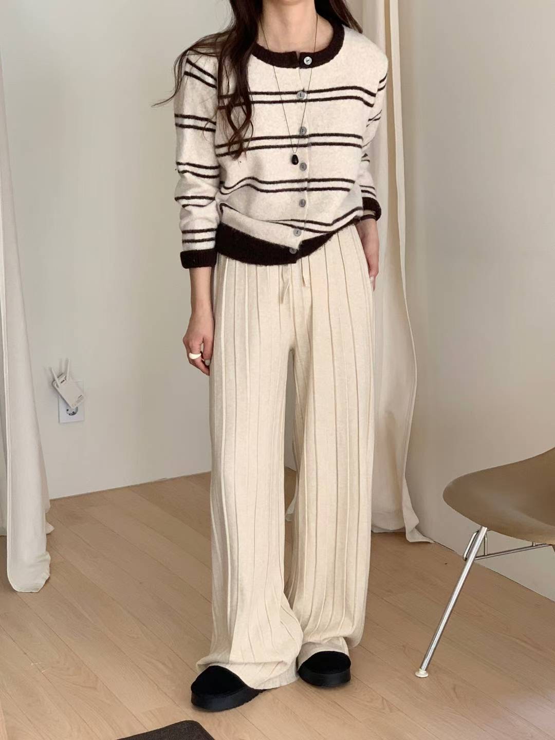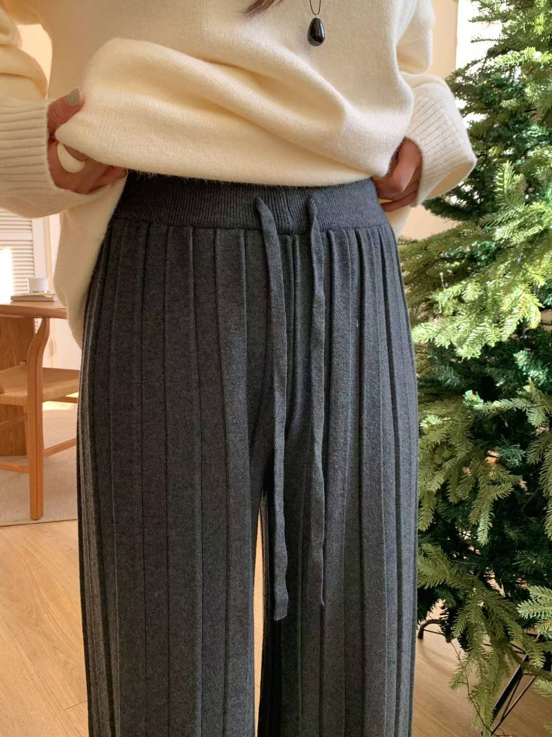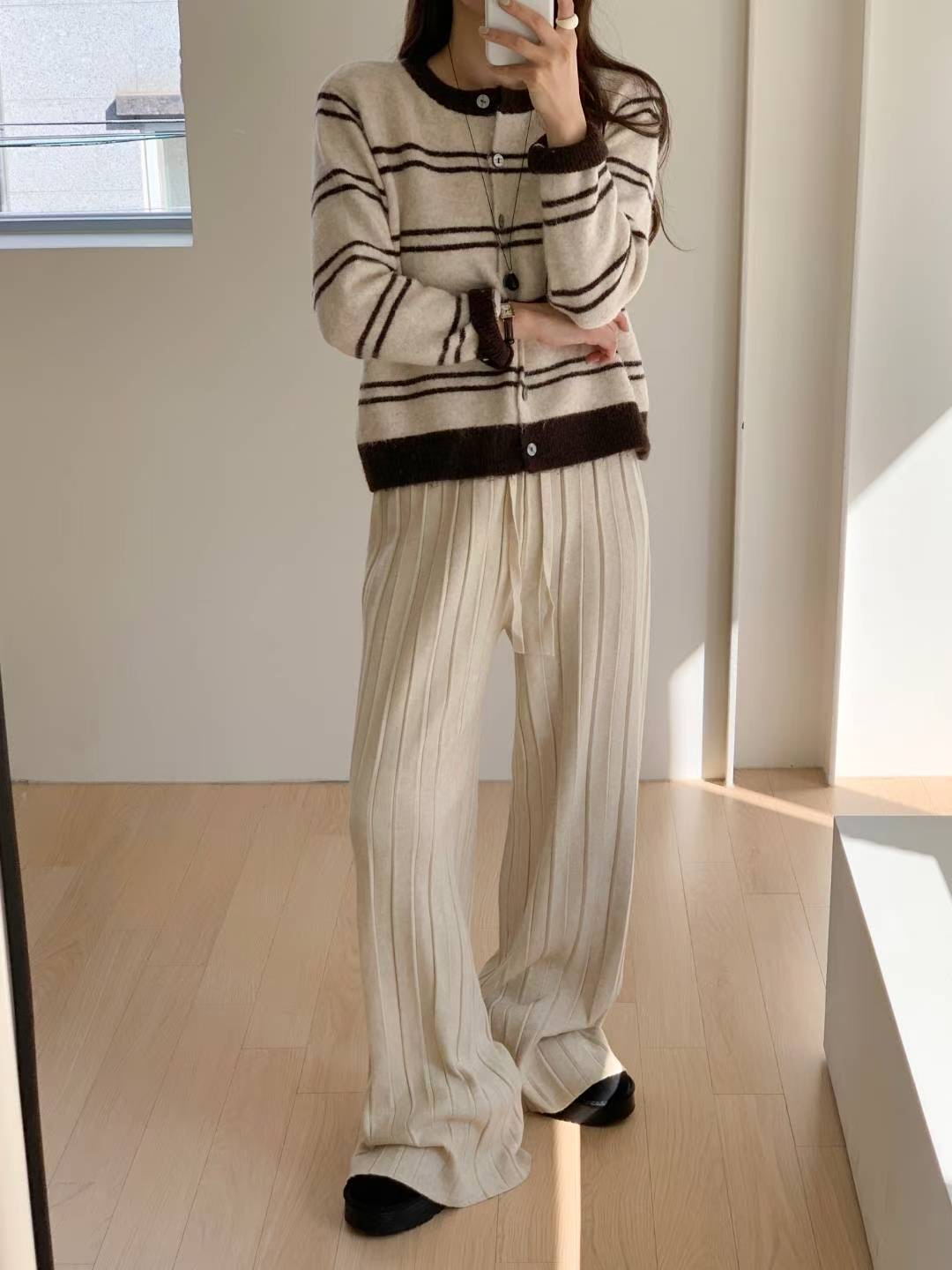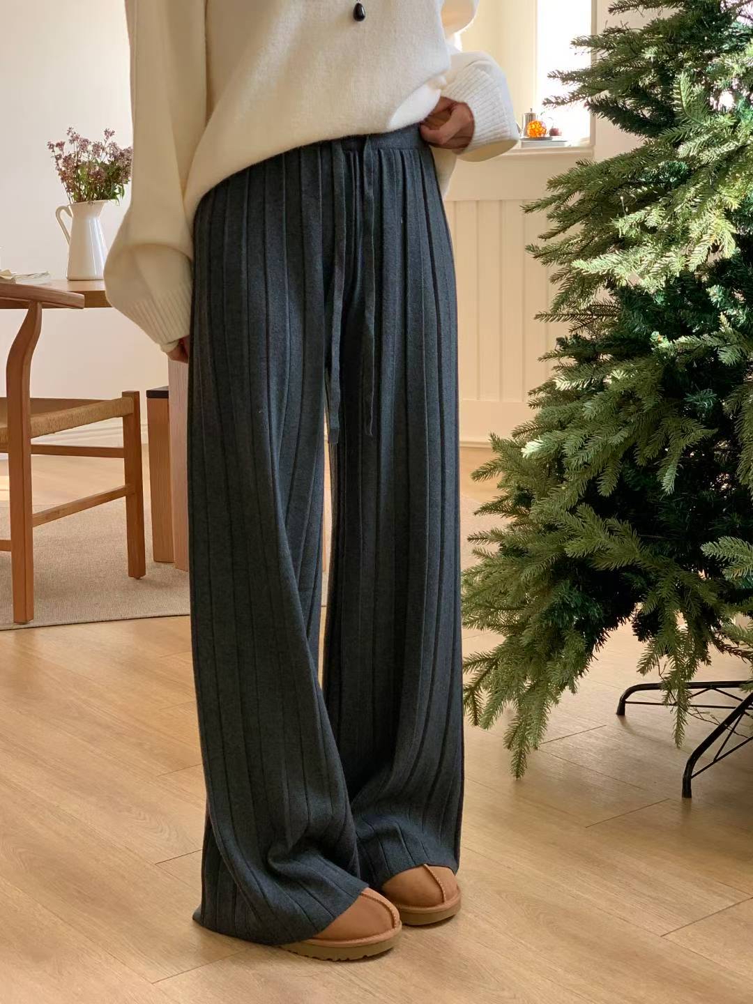 CT16 直紋針織褲 3色 米杏/深灰/黑 Waist 24-40" hip 41" length 41.5"