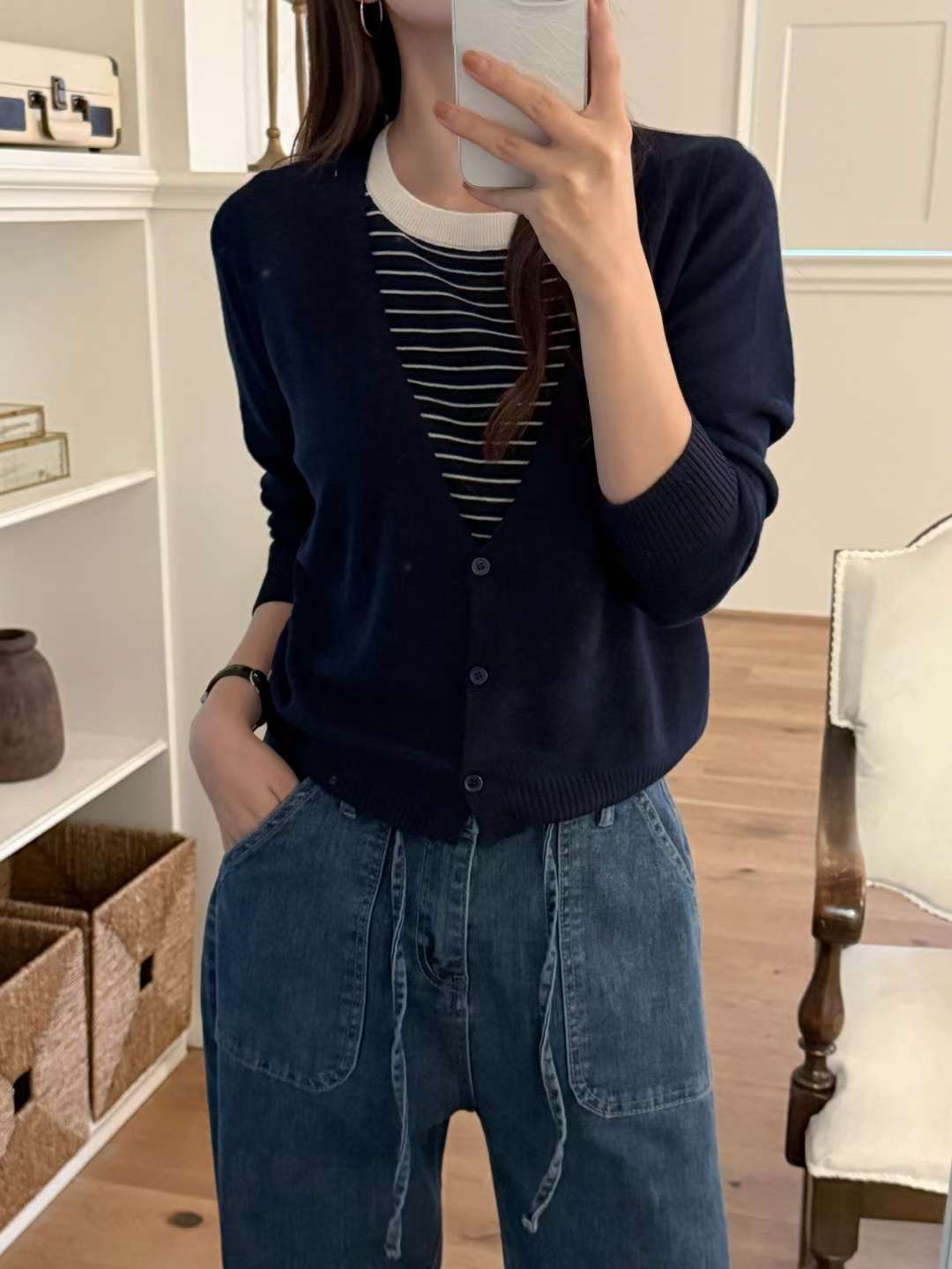 CT20 假2件拼間top 3色 黑/杏/深藍 Chest 40-50" length 22"