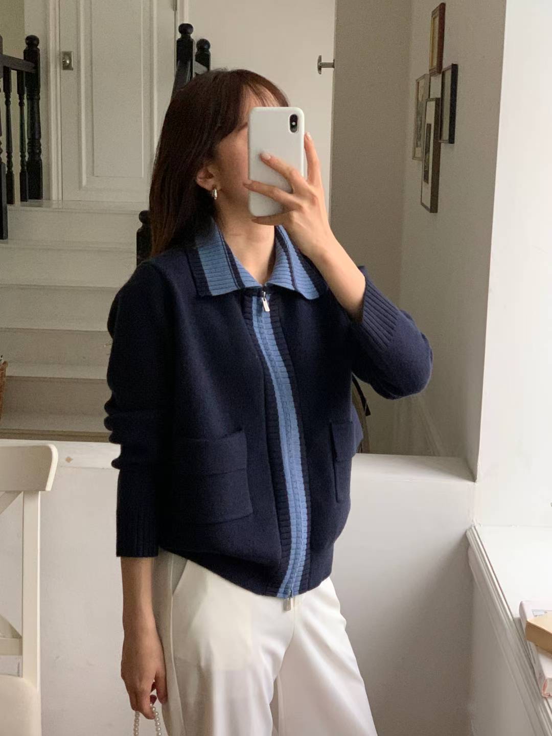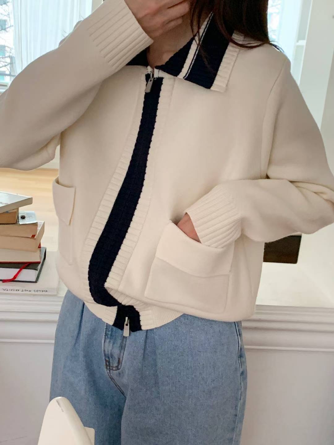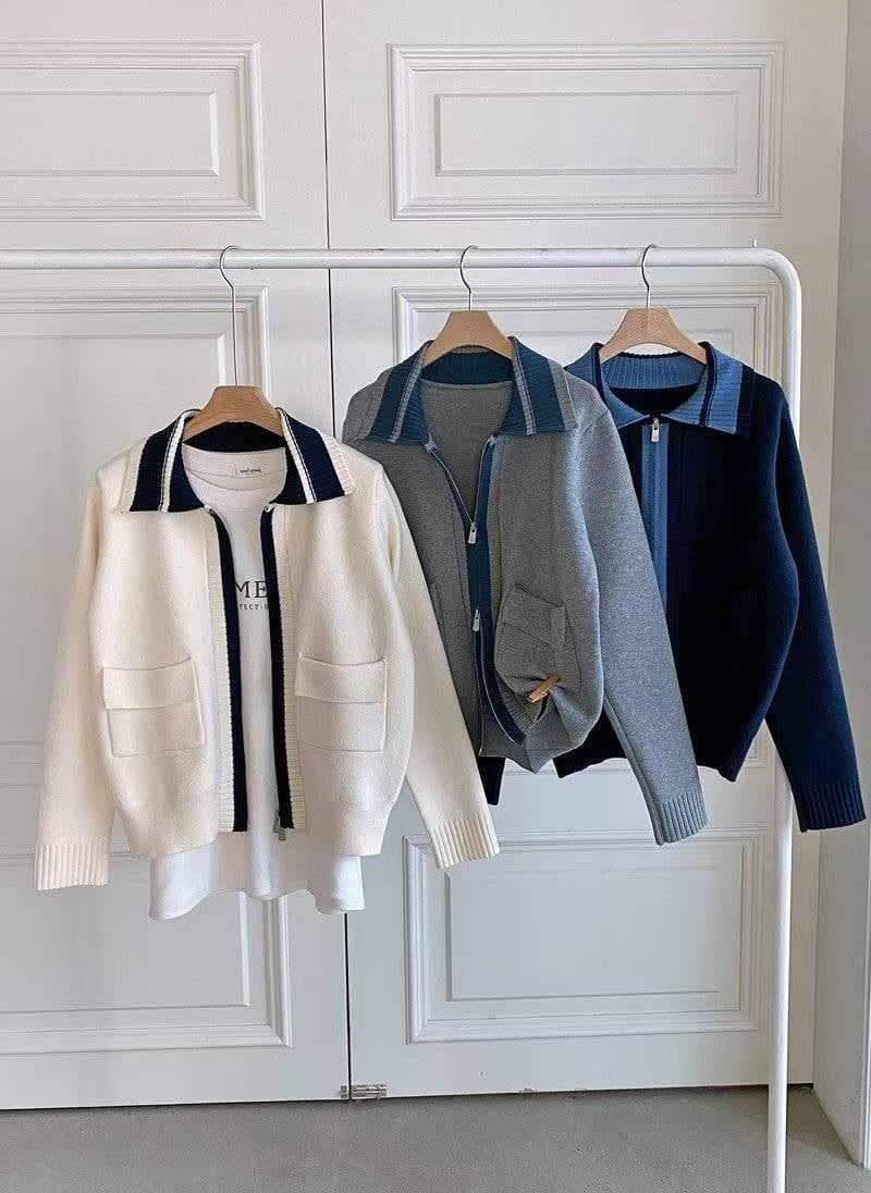 CT23 拼色領雙拉鏈外套 3色 米/灰/深藍 Chest 46" length 21"