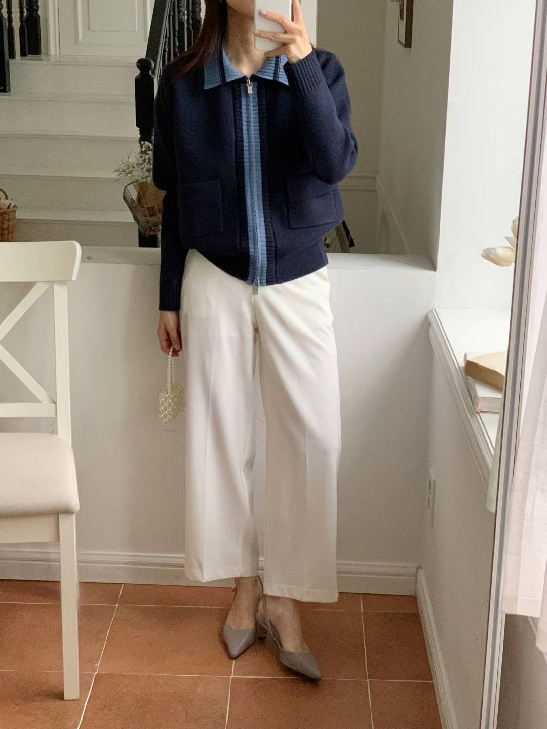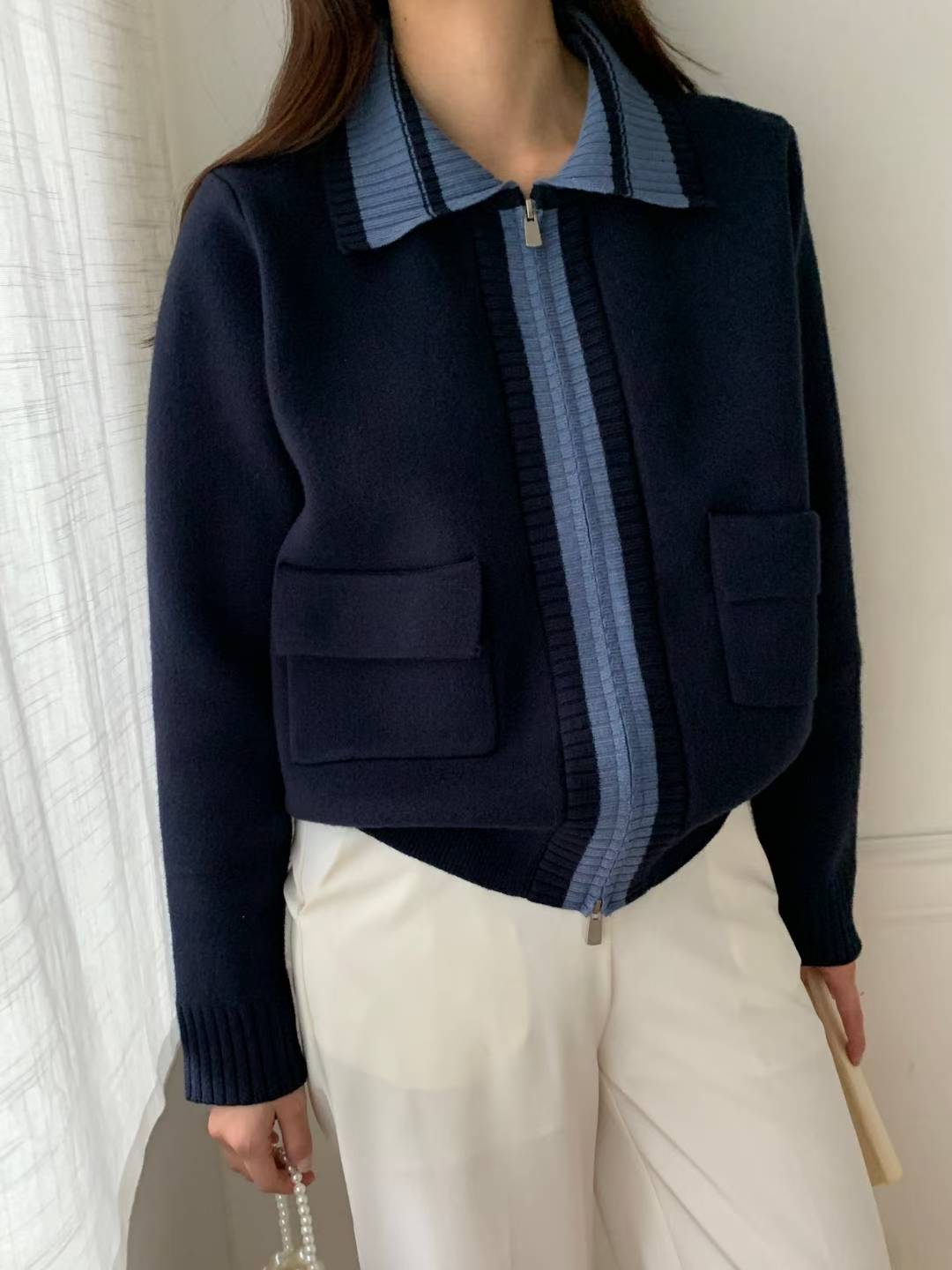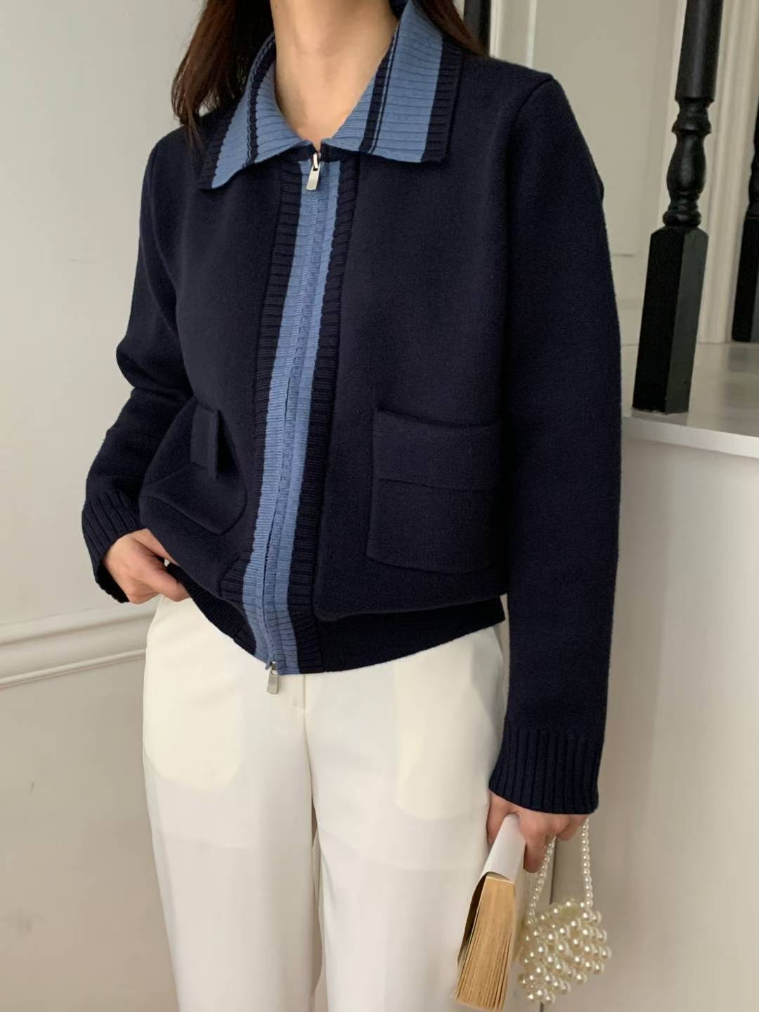 CT23 拼色領雙拉鏈外套 3色 米/灰/深藍 Chest 46" length 21"