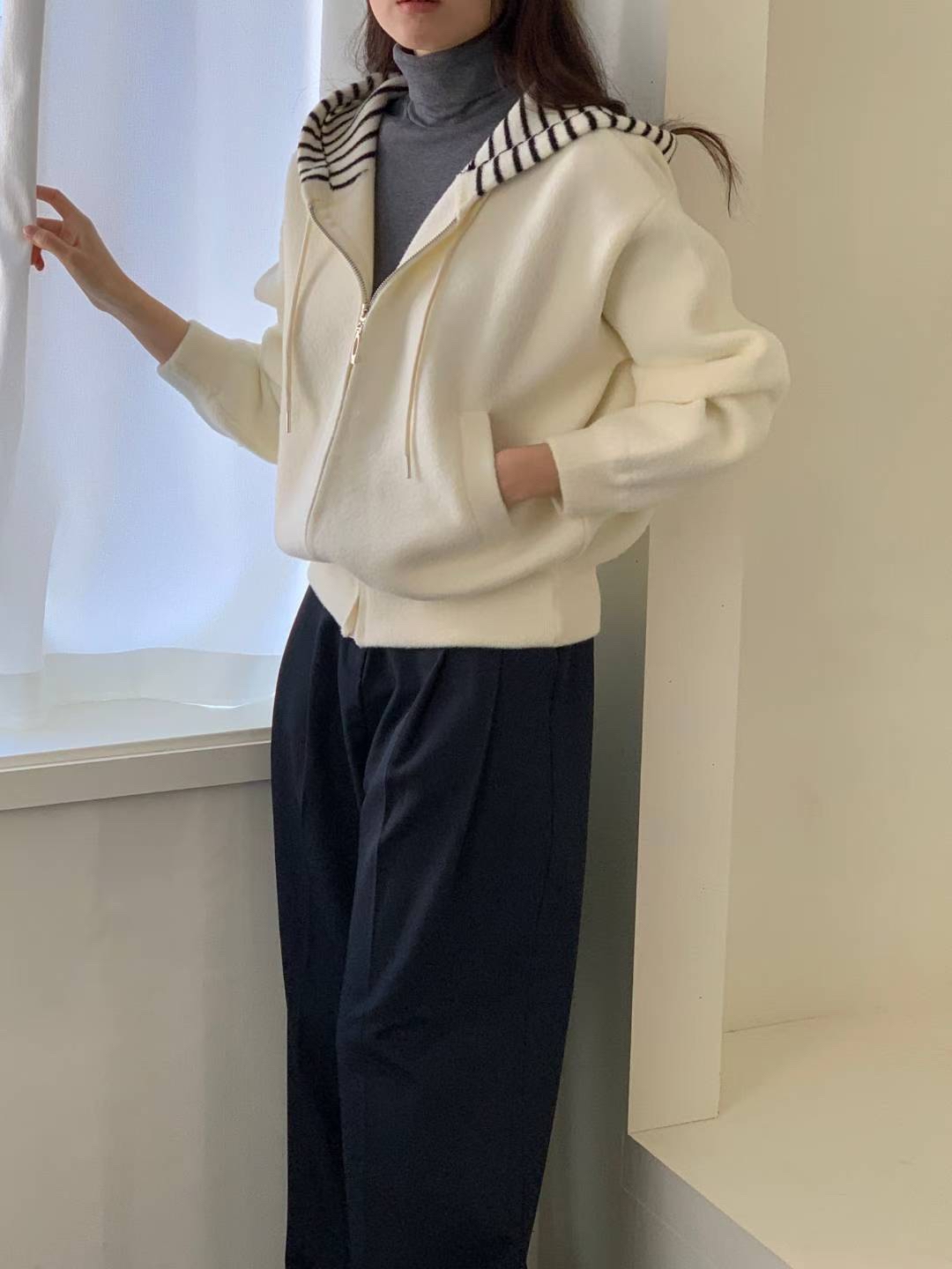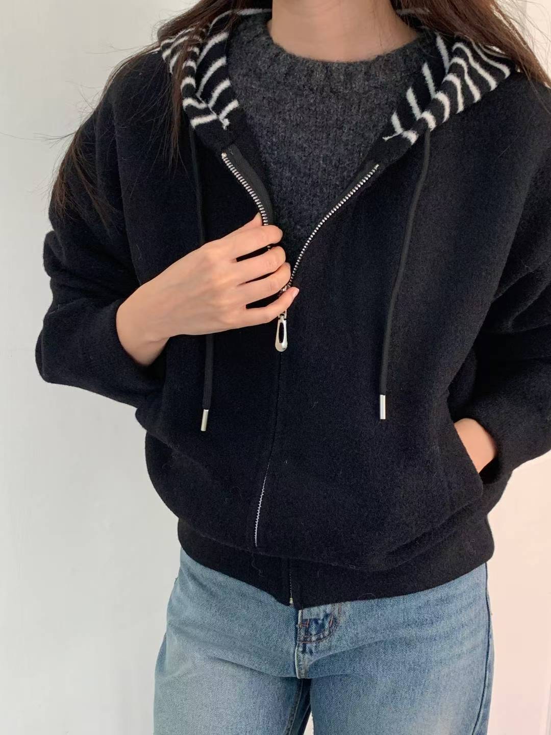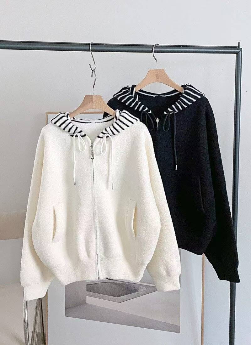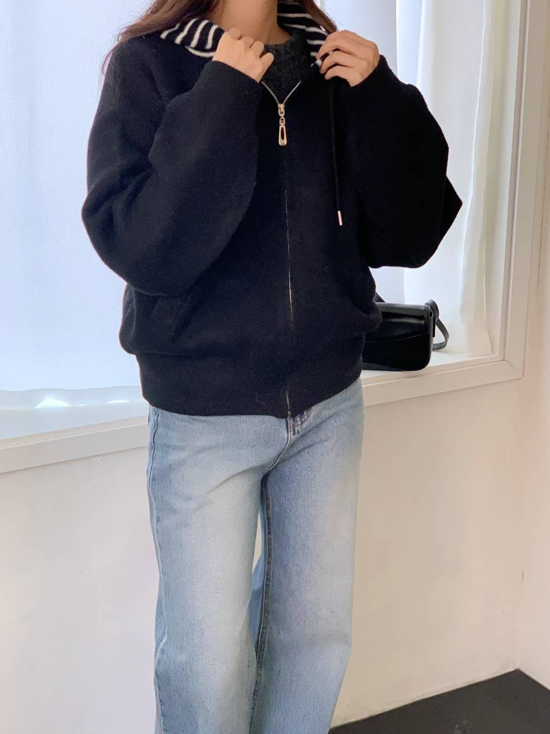 CT25 間帽拉鏈jk 2色 米/黑 Chest 48" length 23"