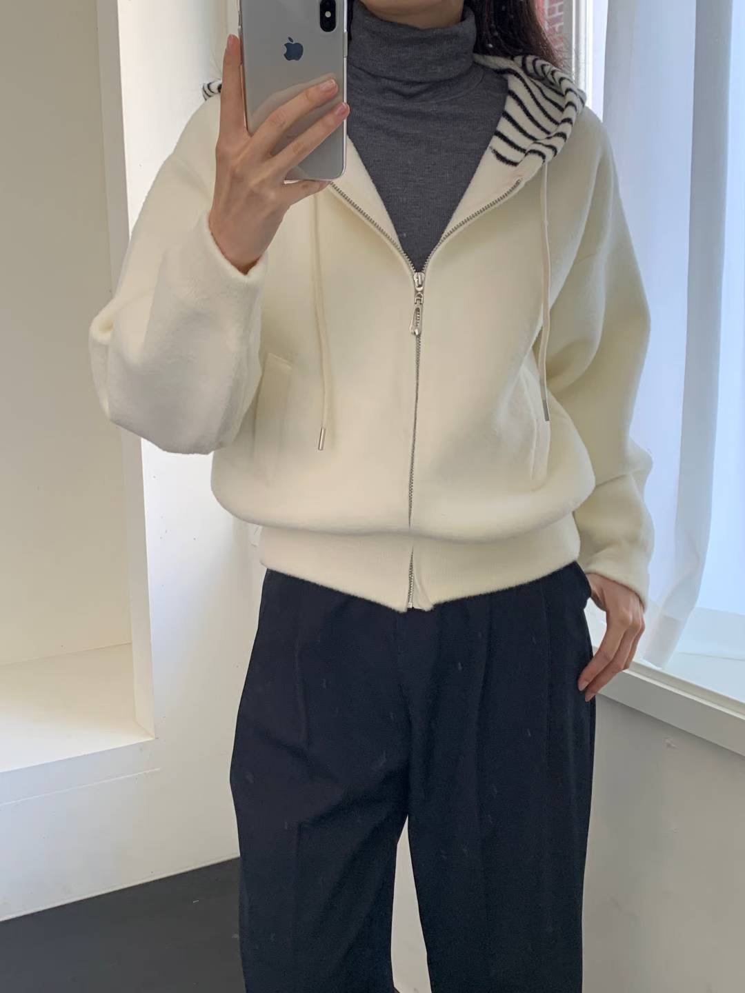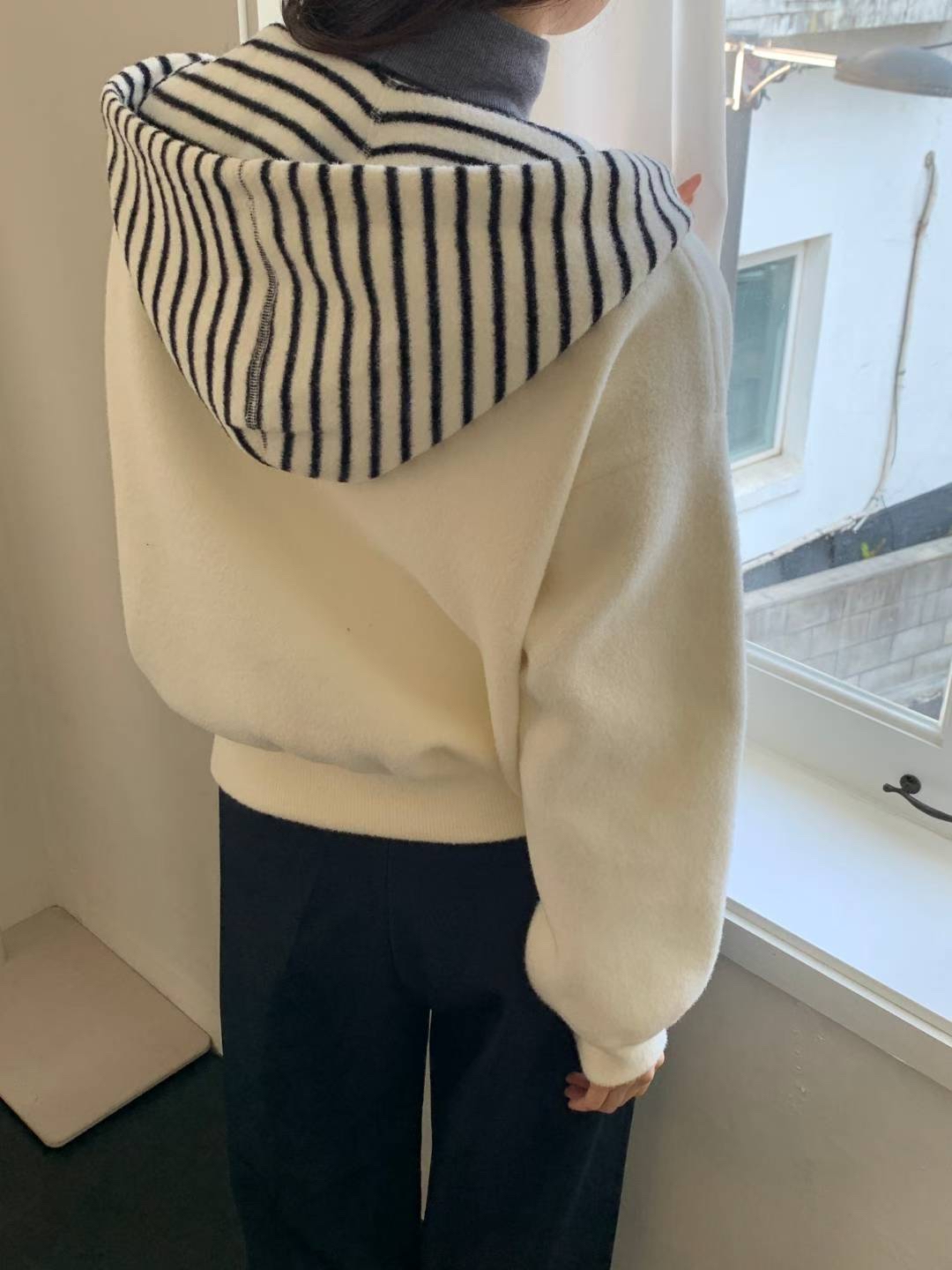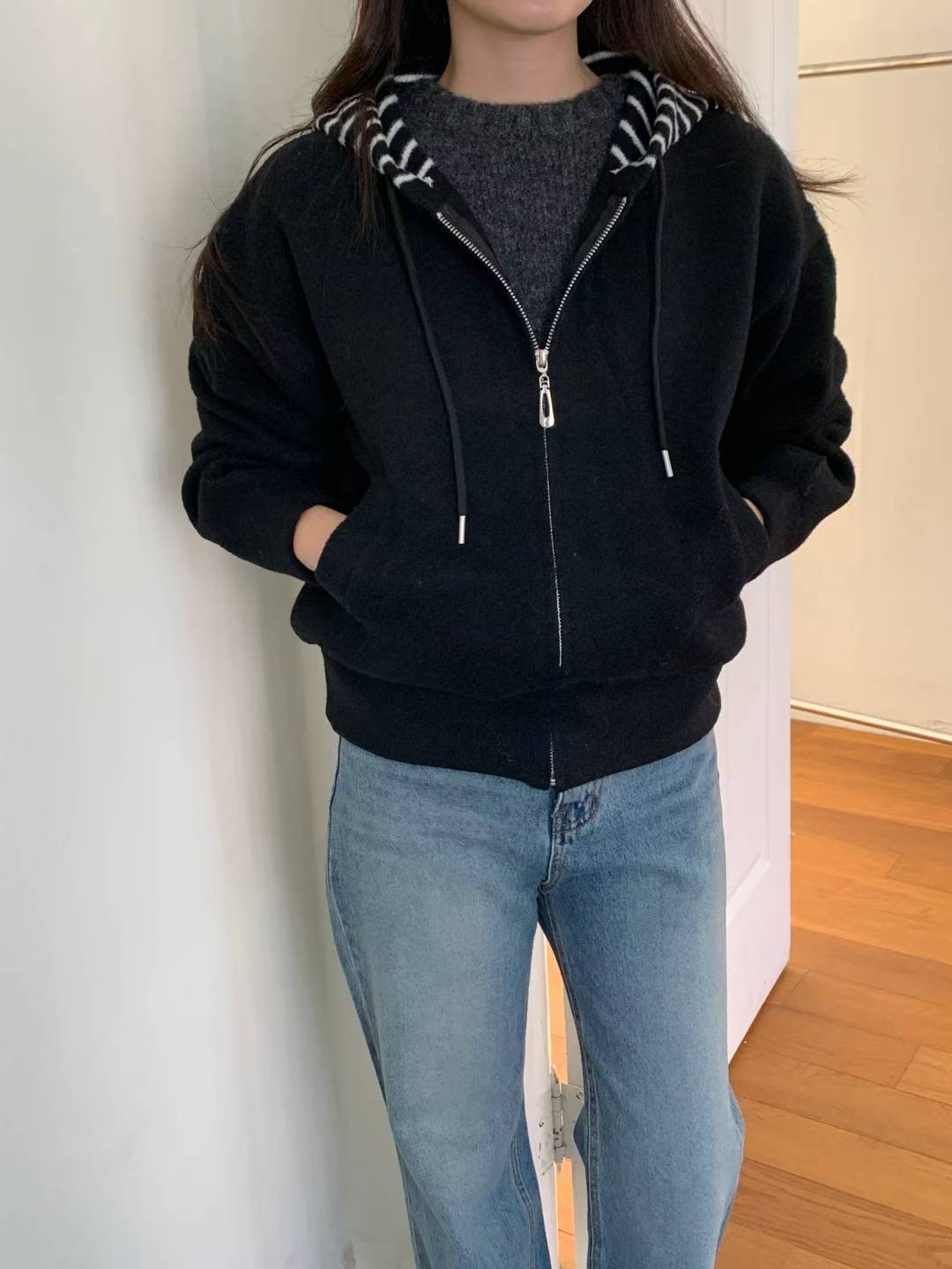 CT25 間帽拉鏈jk 2色 米/黑 Chest 48" length 23"