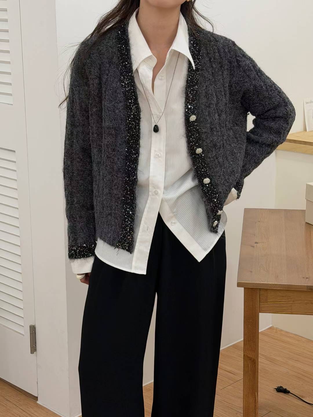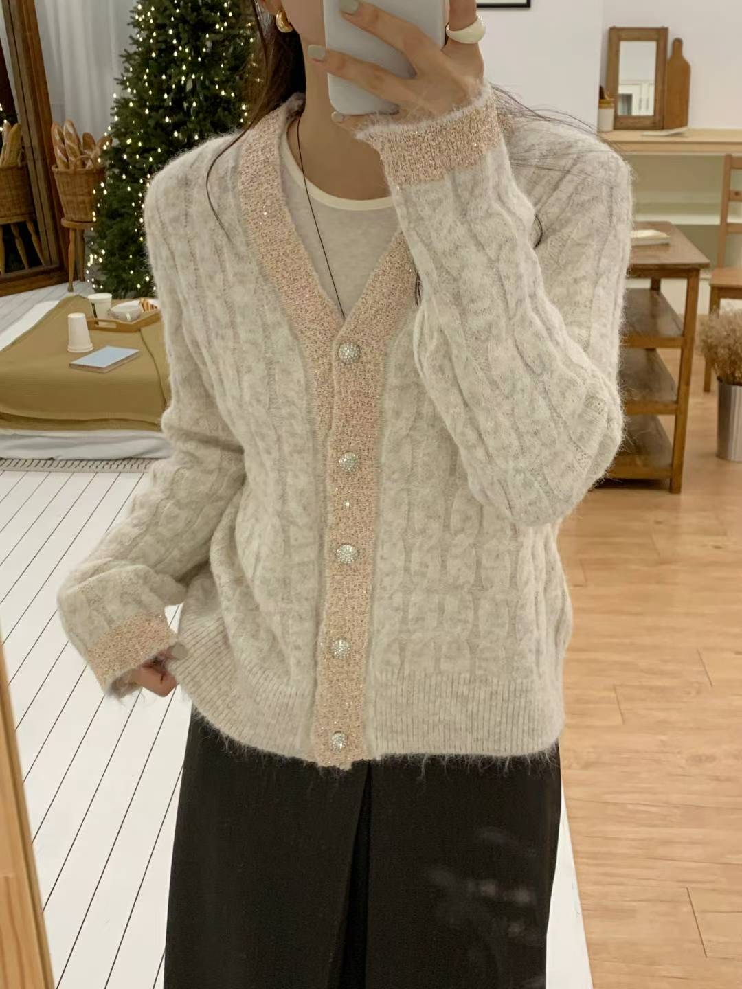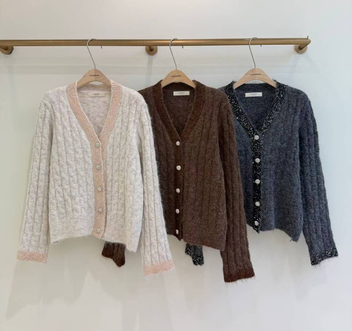 CT26 閃邊麻花Cardigan 3色 燕麥/啡/灰 Chest 42" length 24.5"