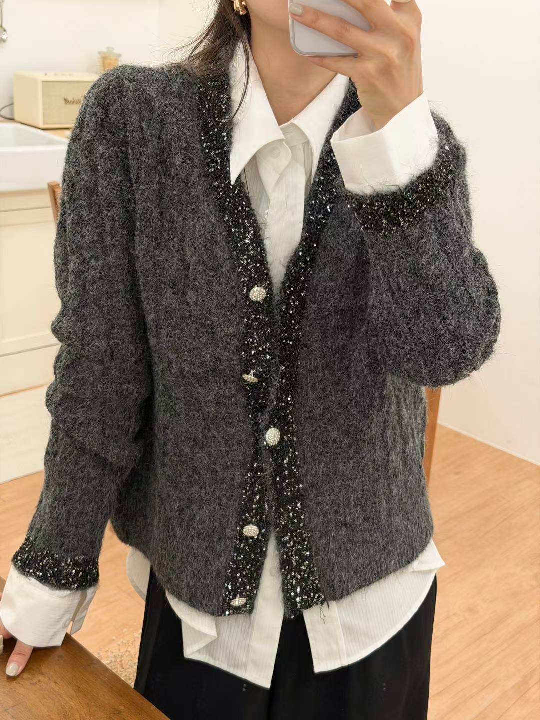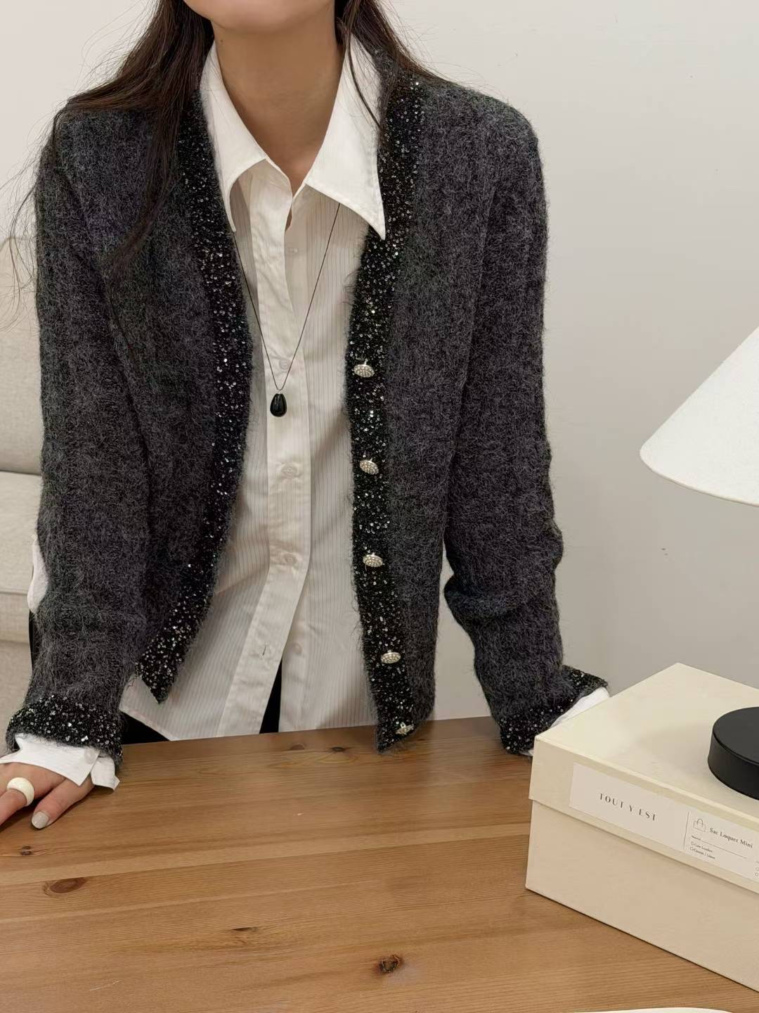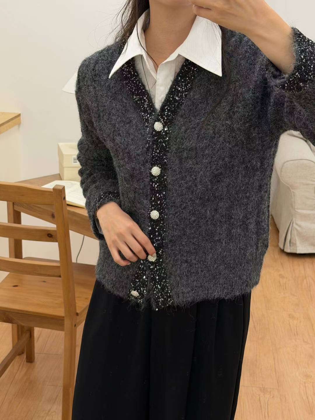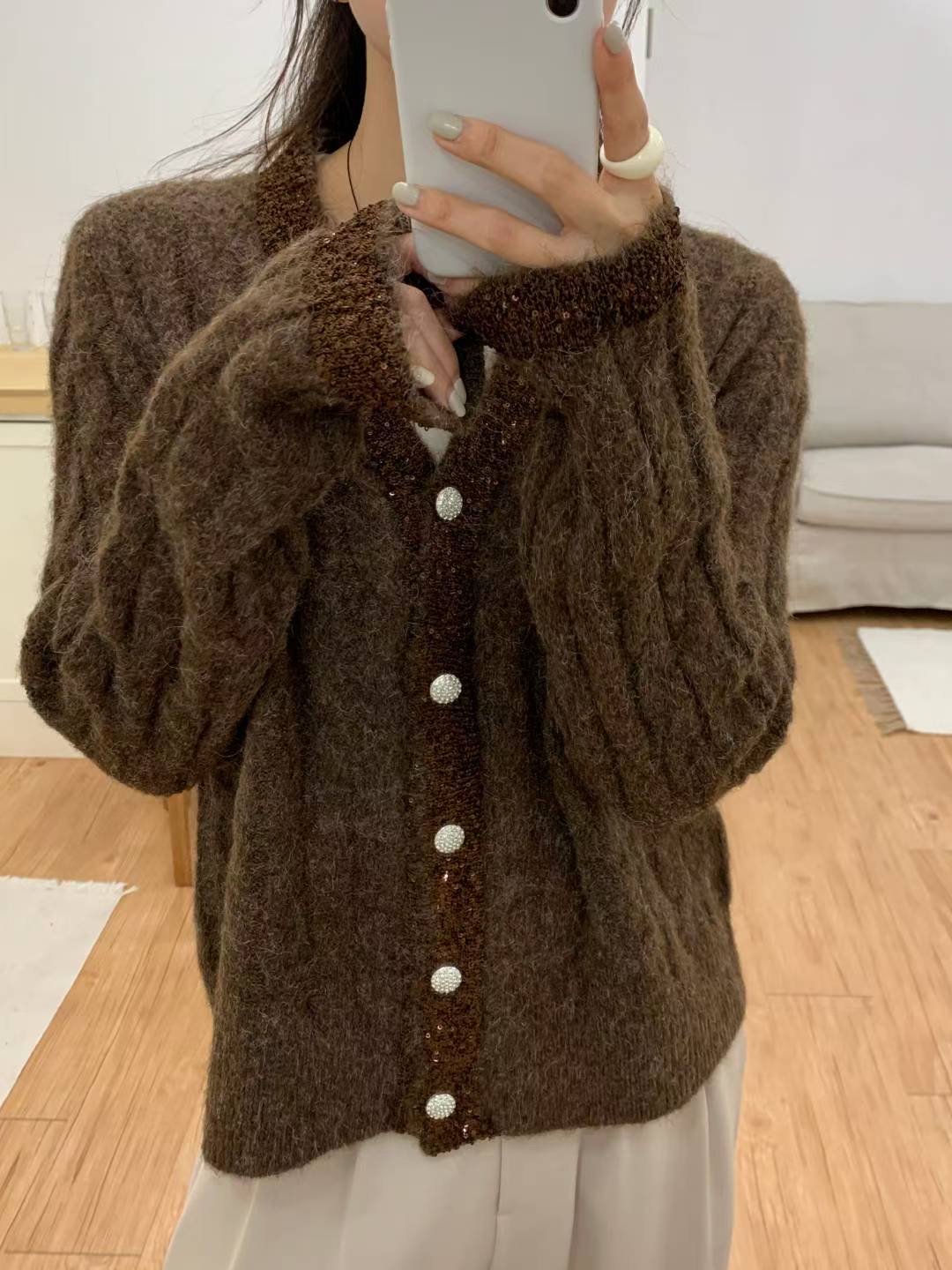 CT26 閃邊麻花Cardigan 3色 燕麥/啡/灰 Chest 42" length 24.5"
