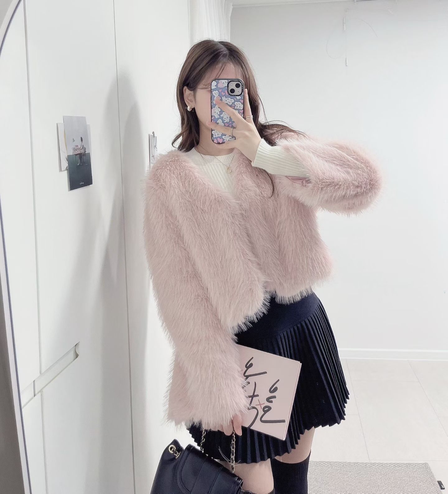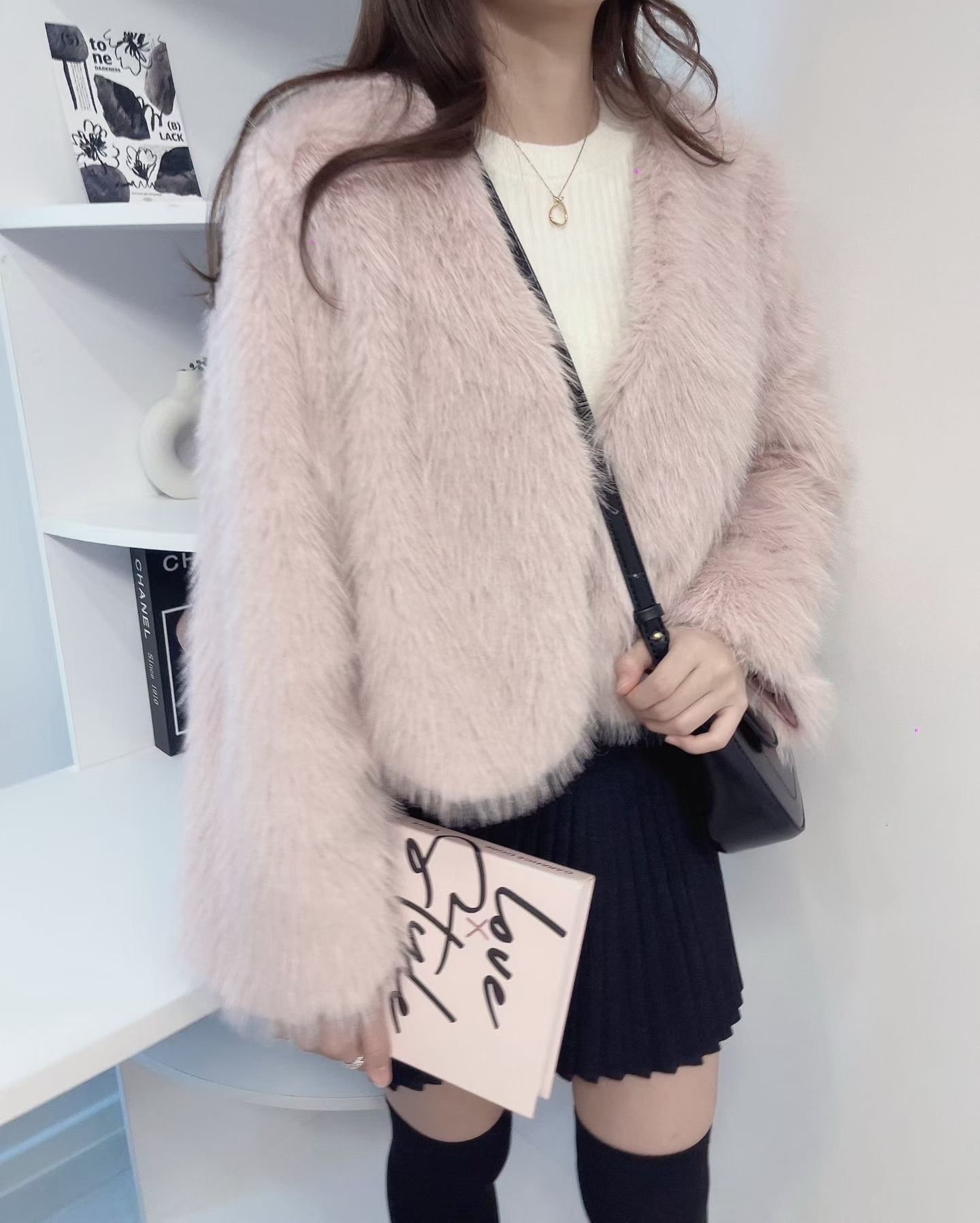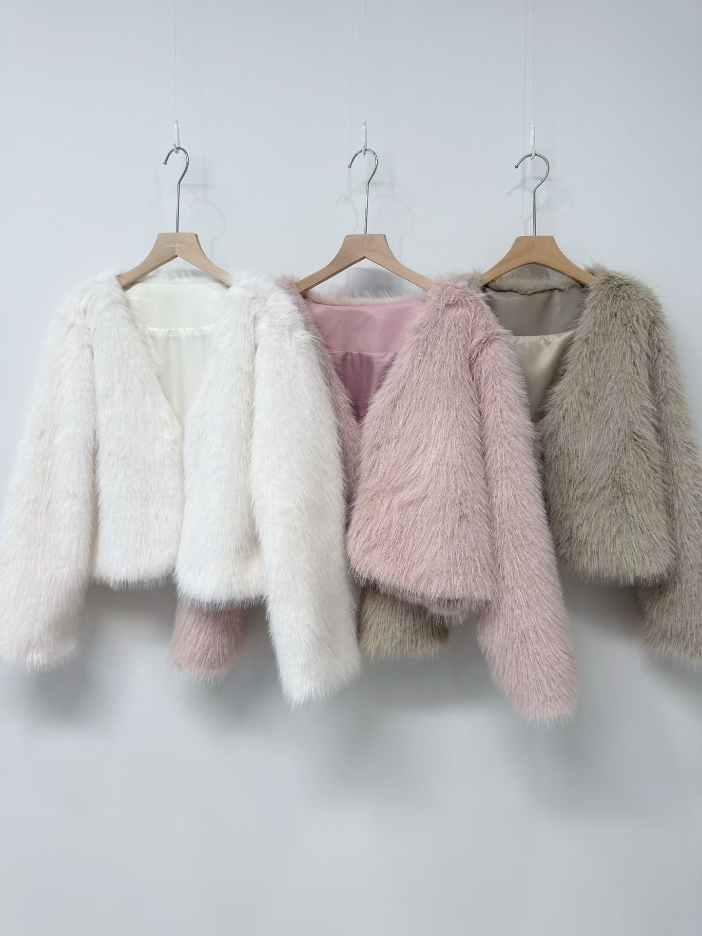 FY04 毛毛短外套 3色 米/粉/mocha Chest 48" length 19"