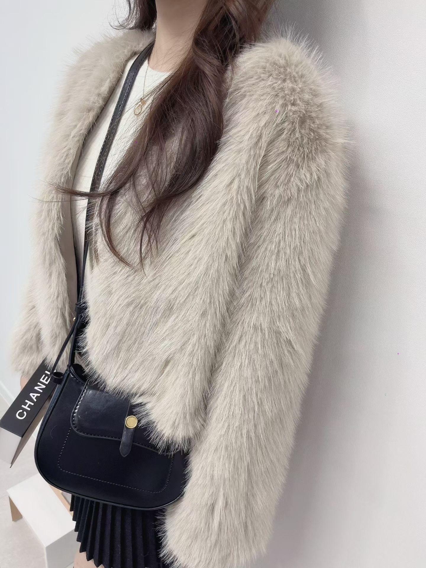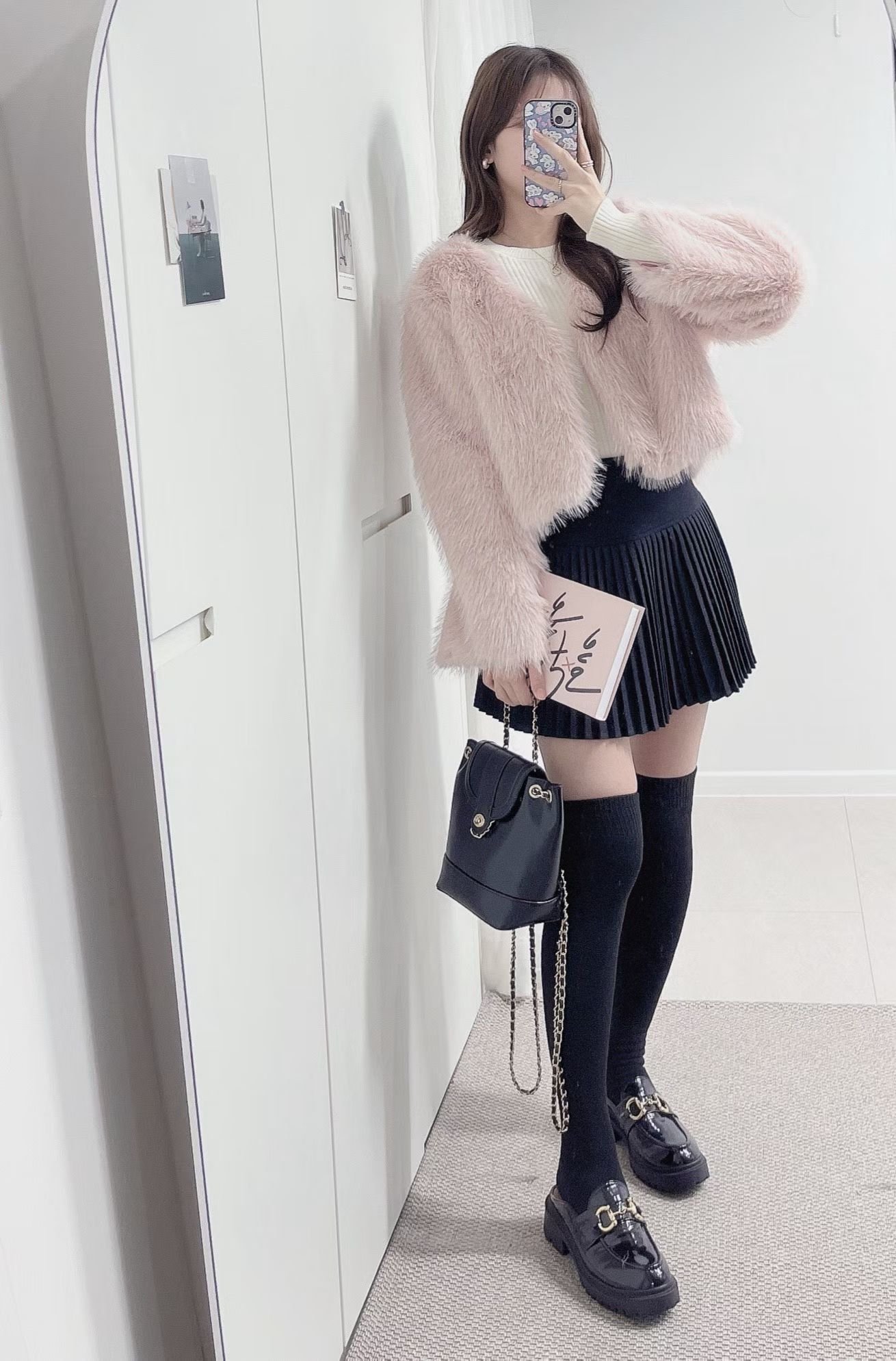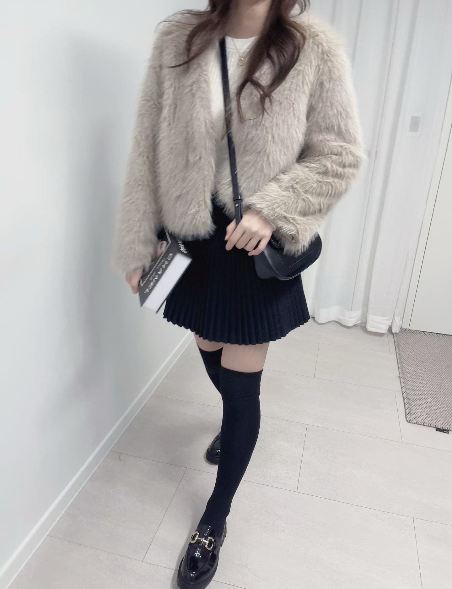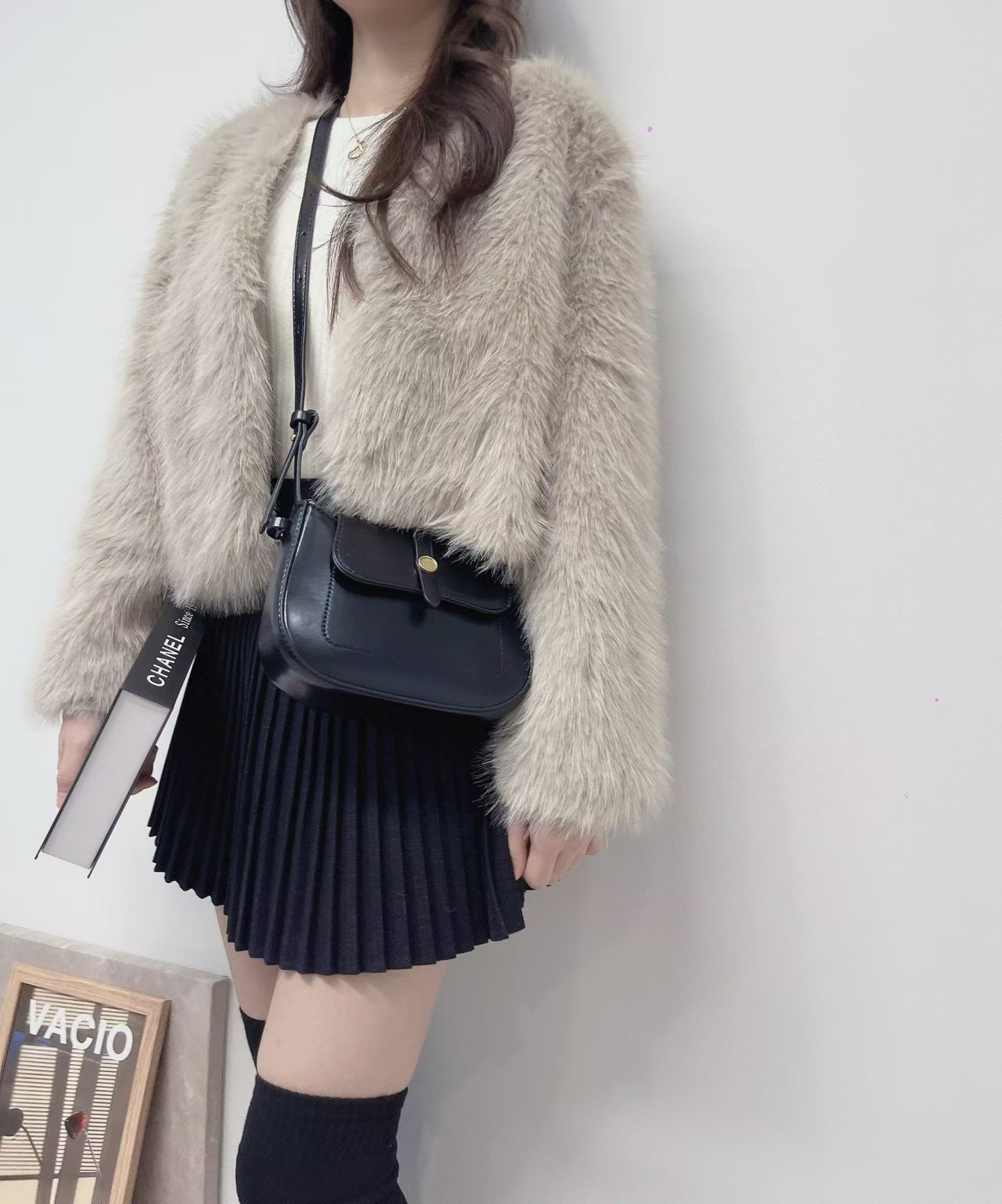 FY04 毛毛短外套 3色 米/粉/mocha Chest 48" length 19"