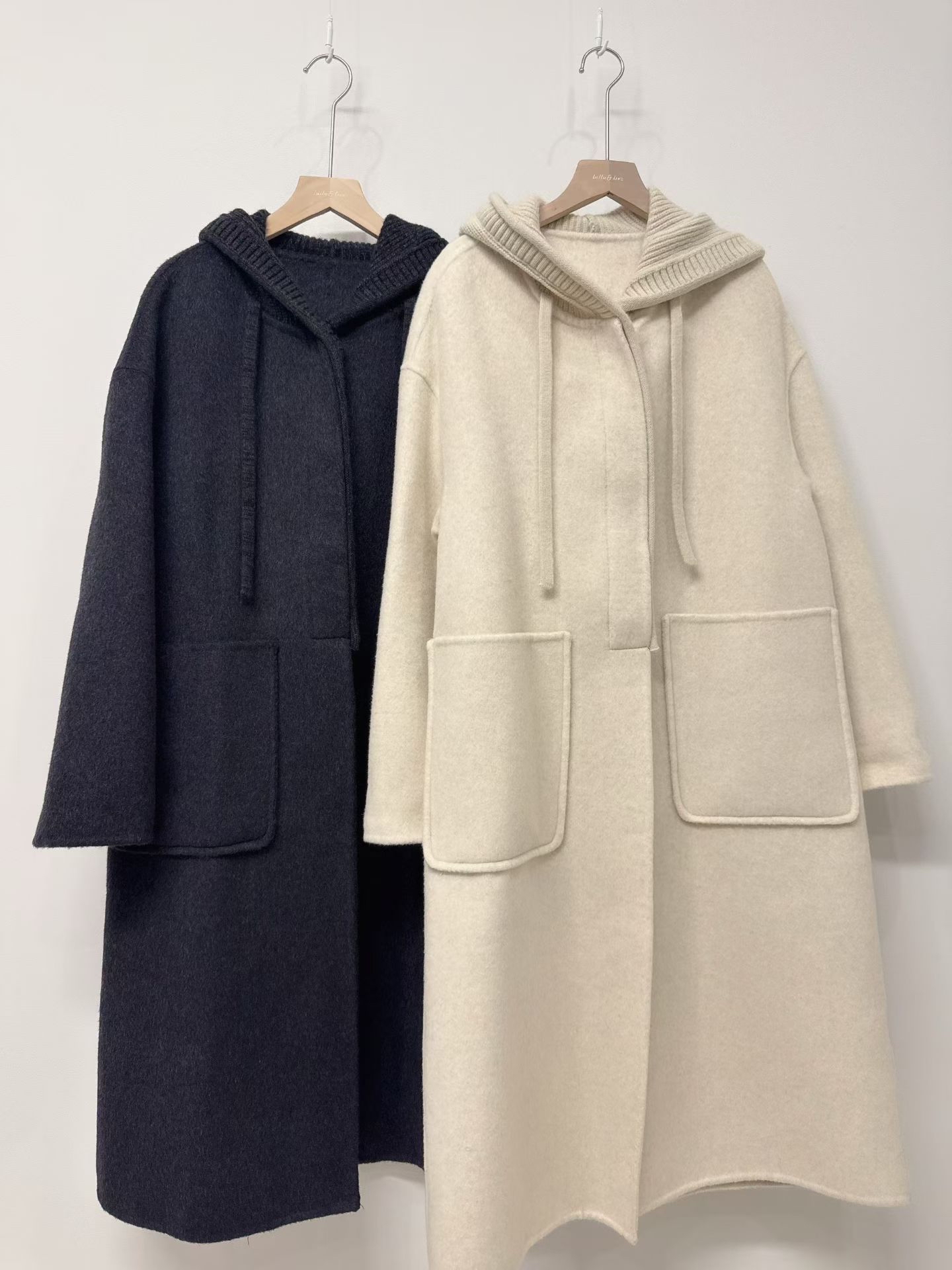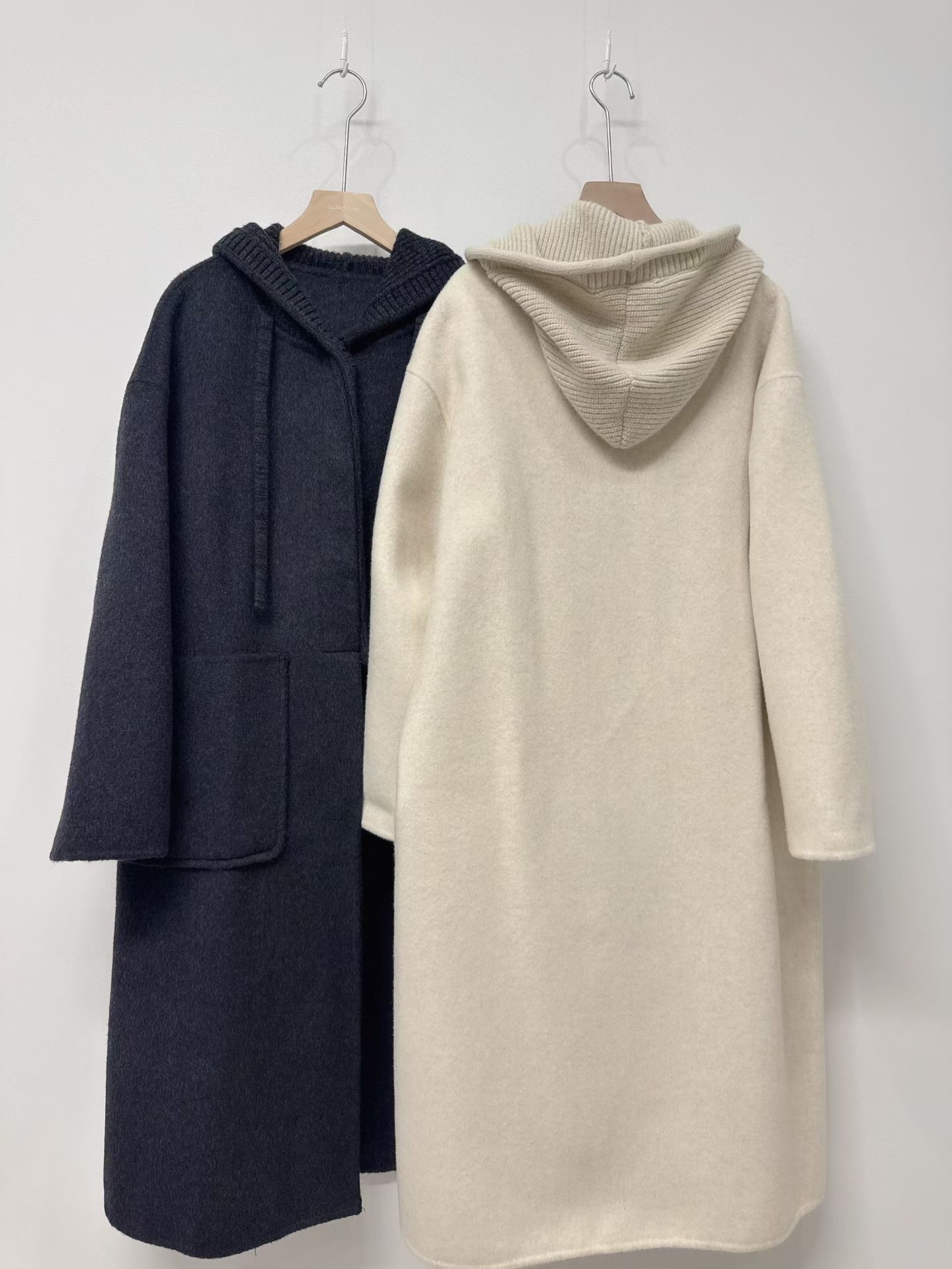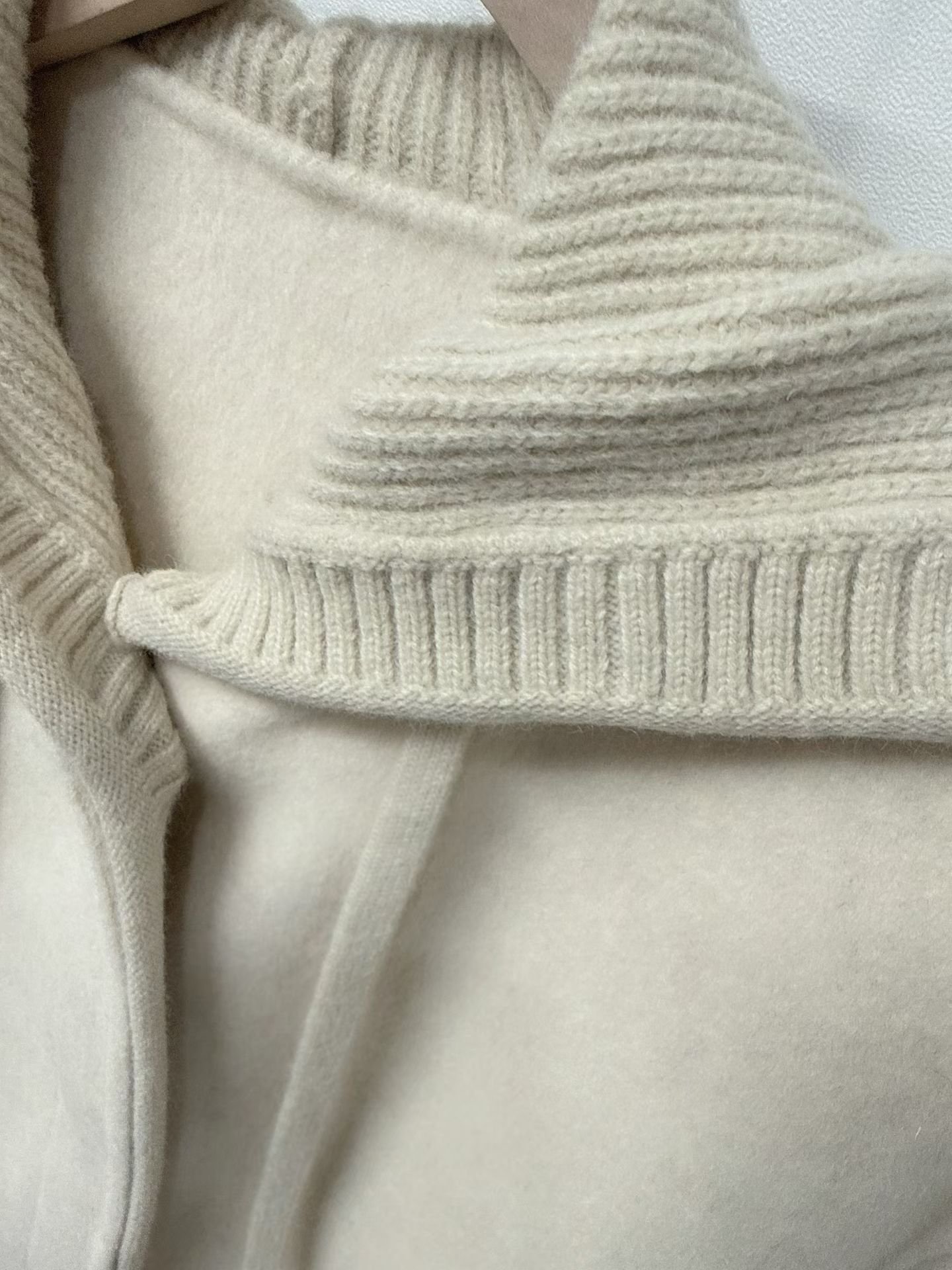 FY08 長版絨褸拼針織帽 2色 深藍/米杏 Chest 46" length 42.5"
