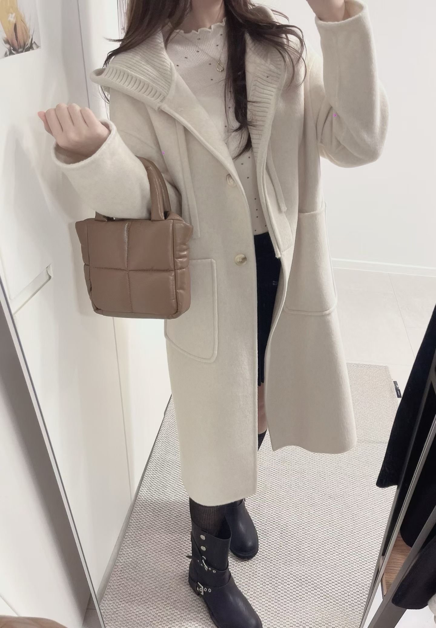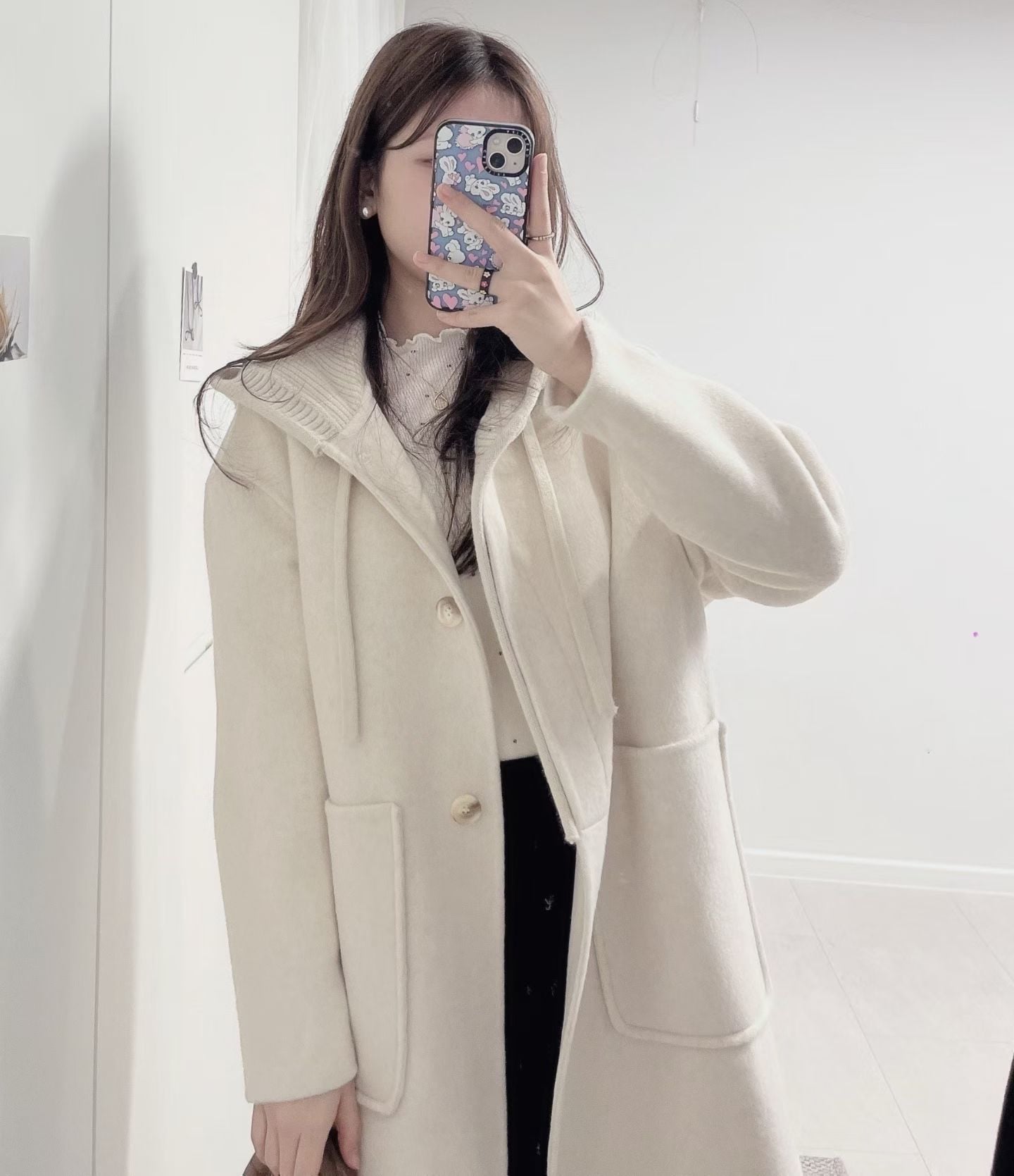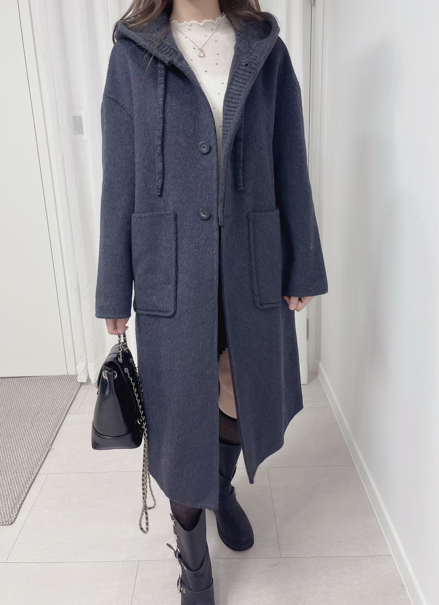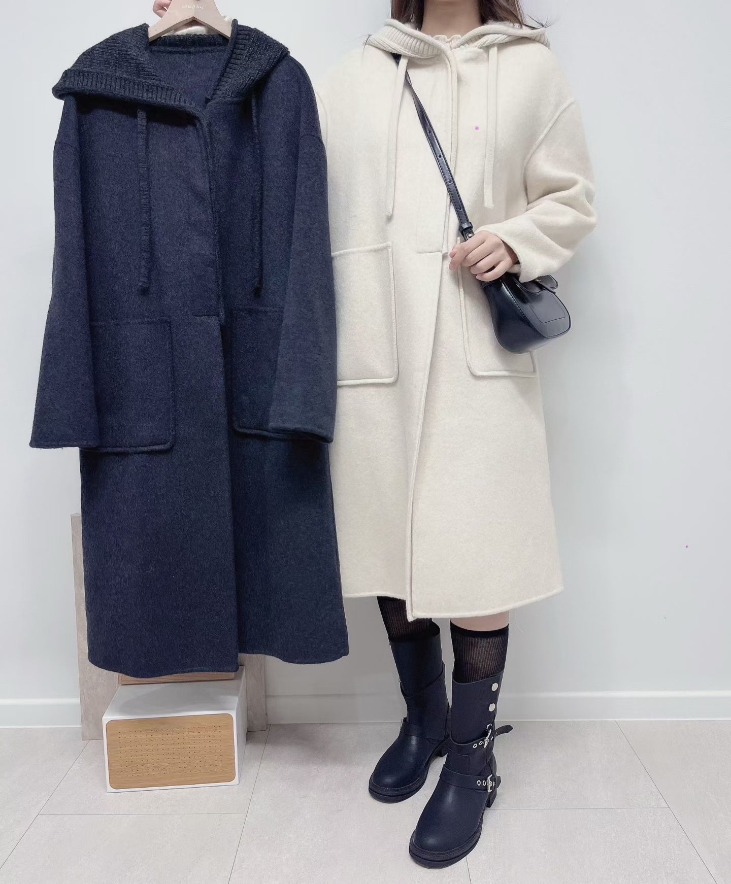 FY08 長版絨褸拼針織帽 2色 深藍/米杏 Chest 46" length 42.5"
