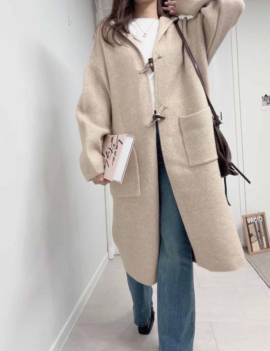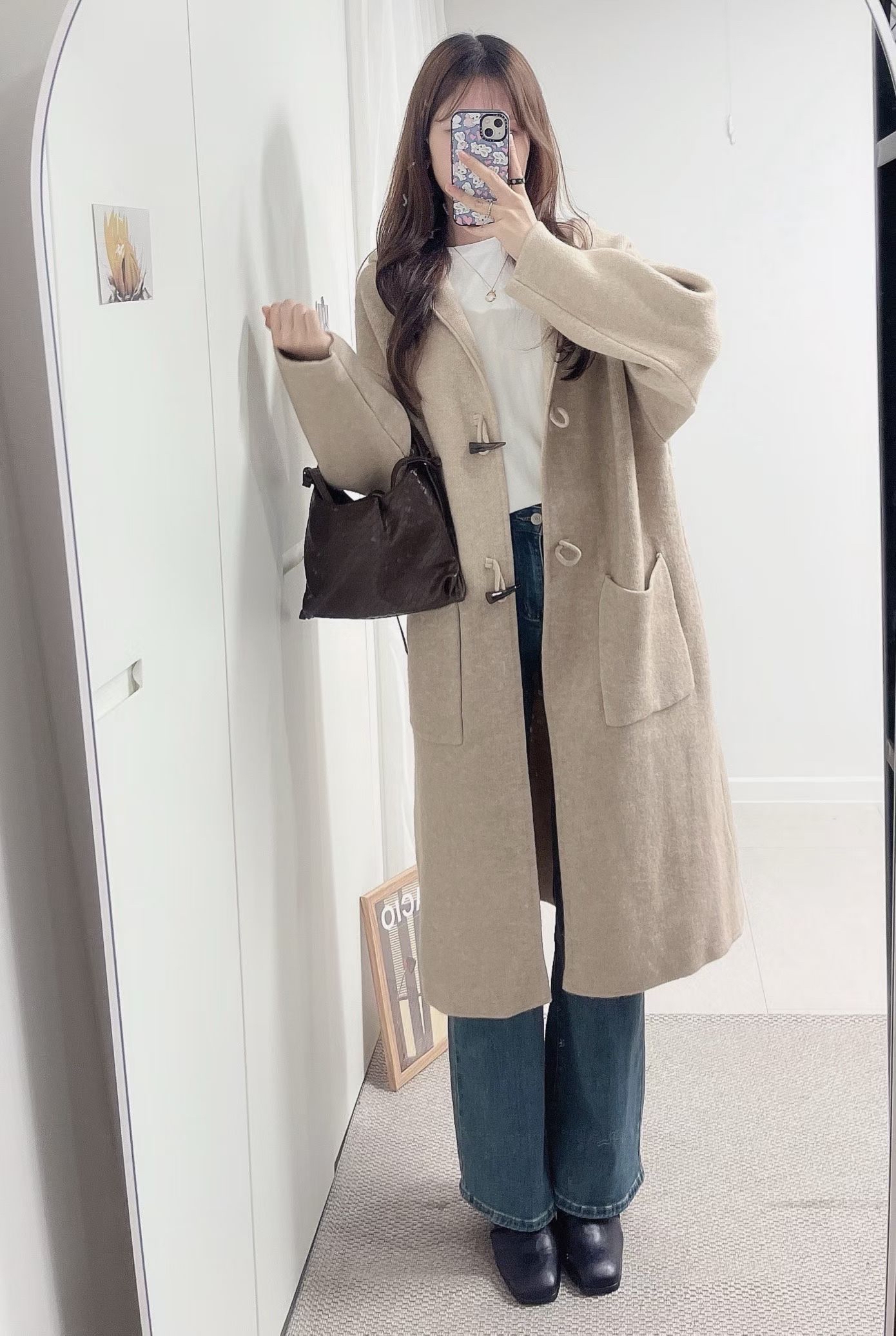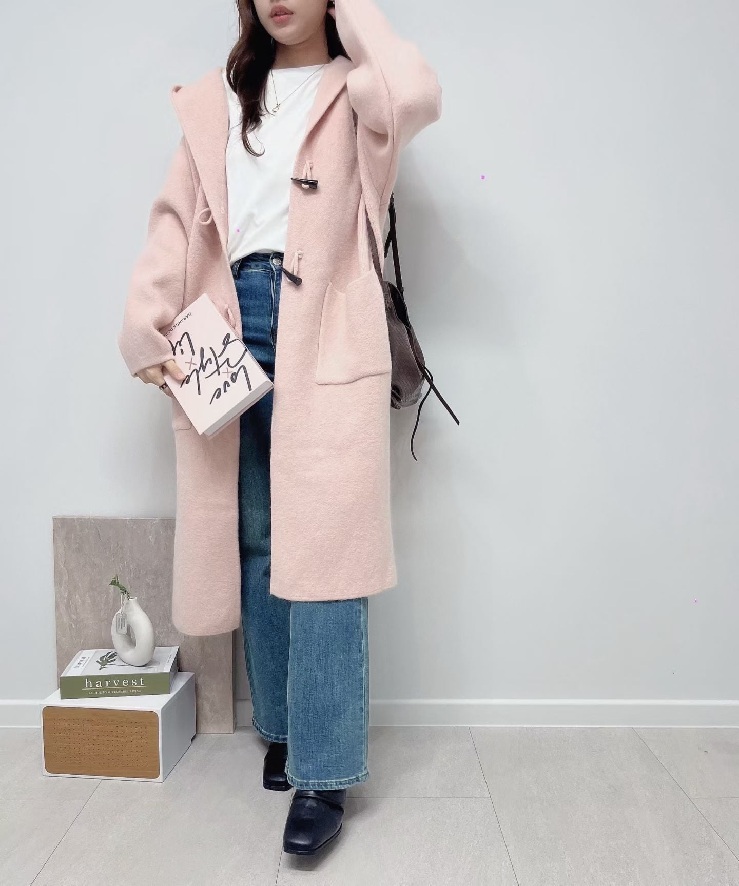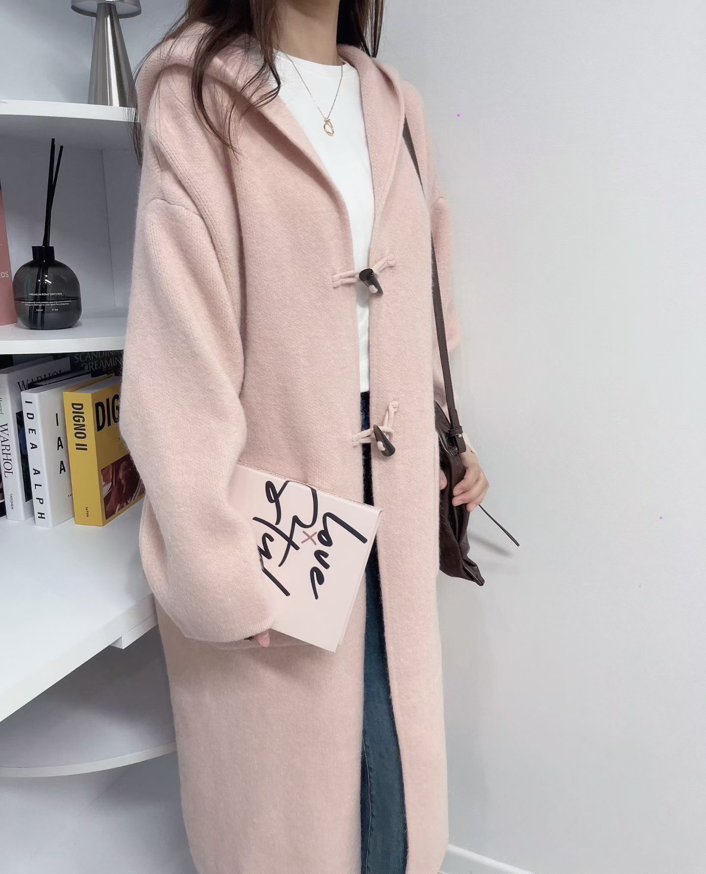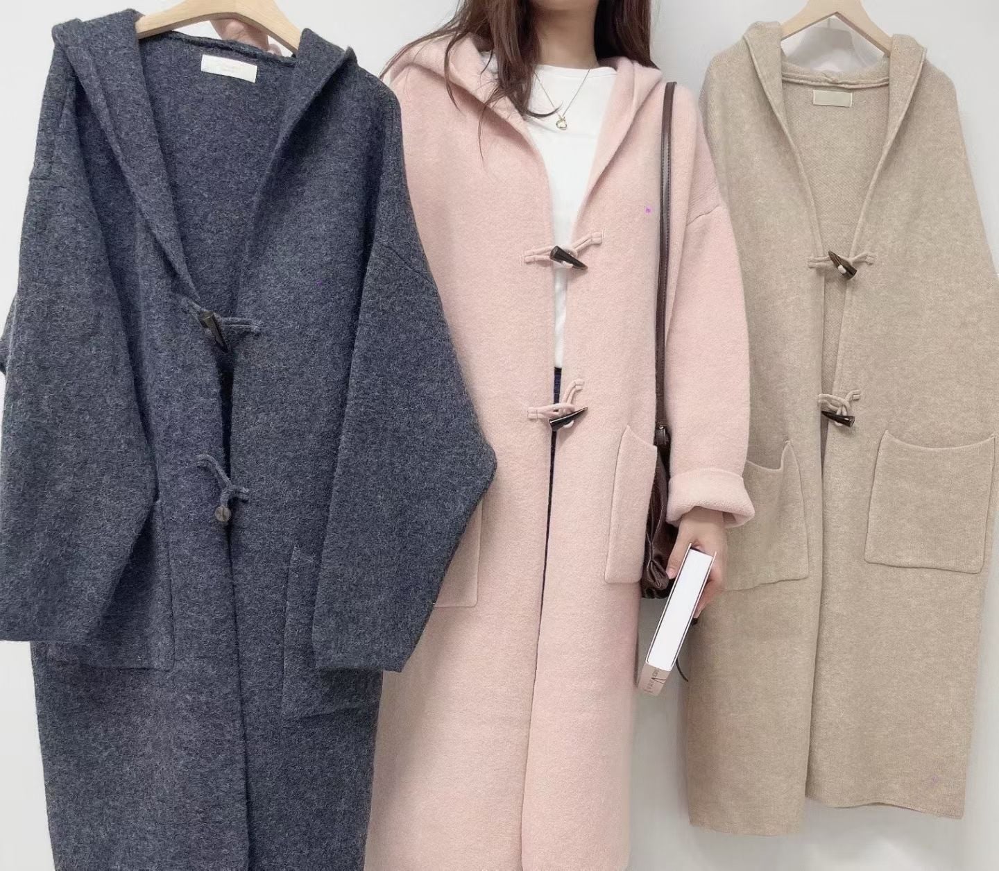 FY13 牛角鈕有帽長褸 3色 粉/杏/深灰 Chest 46" length 45.5"