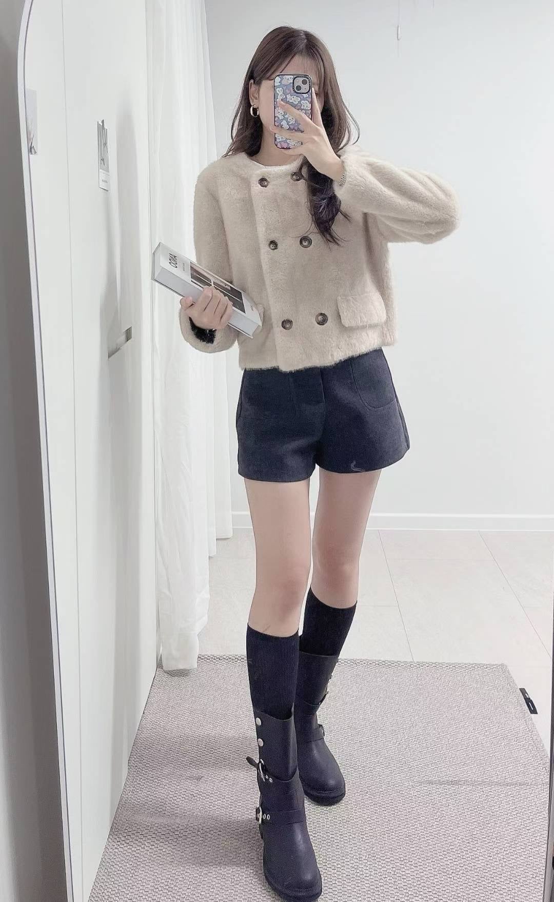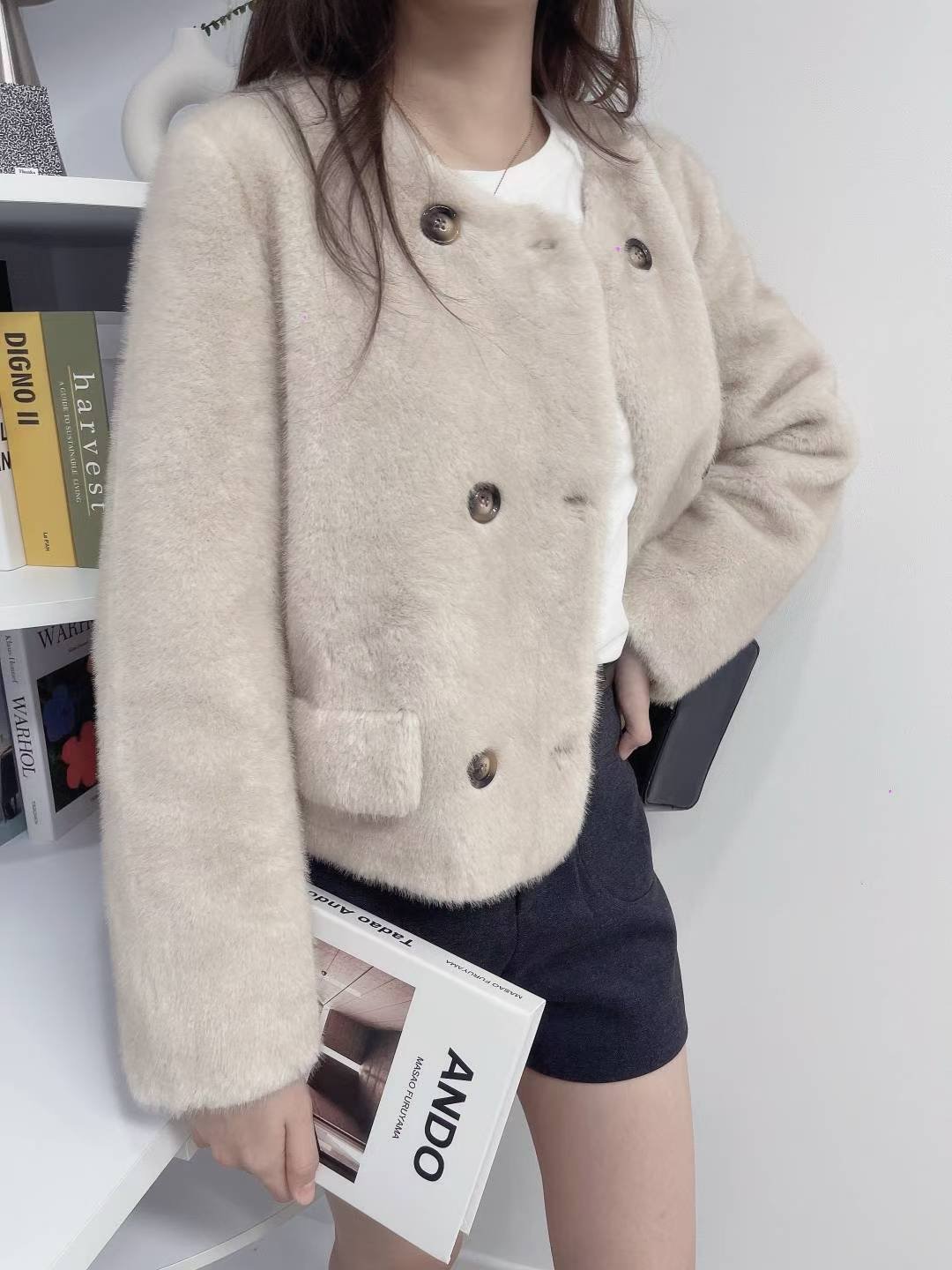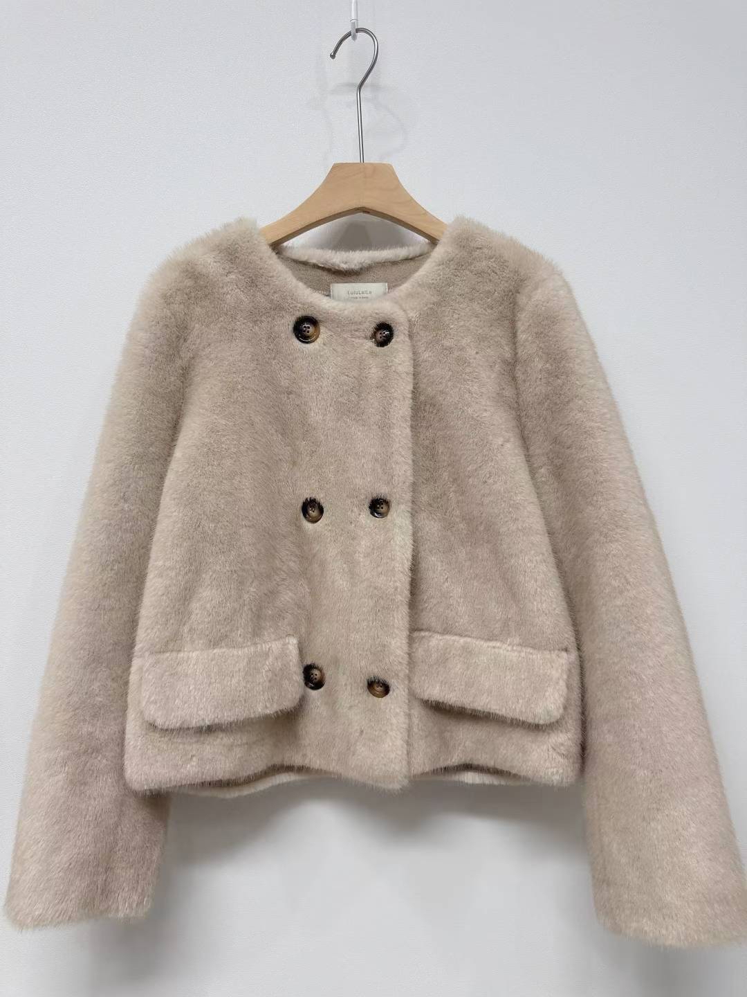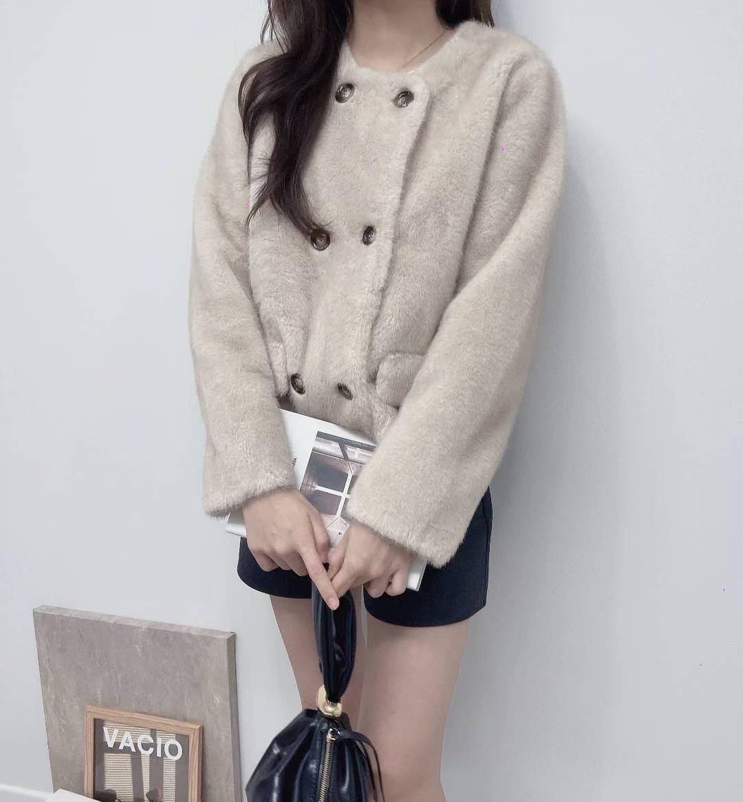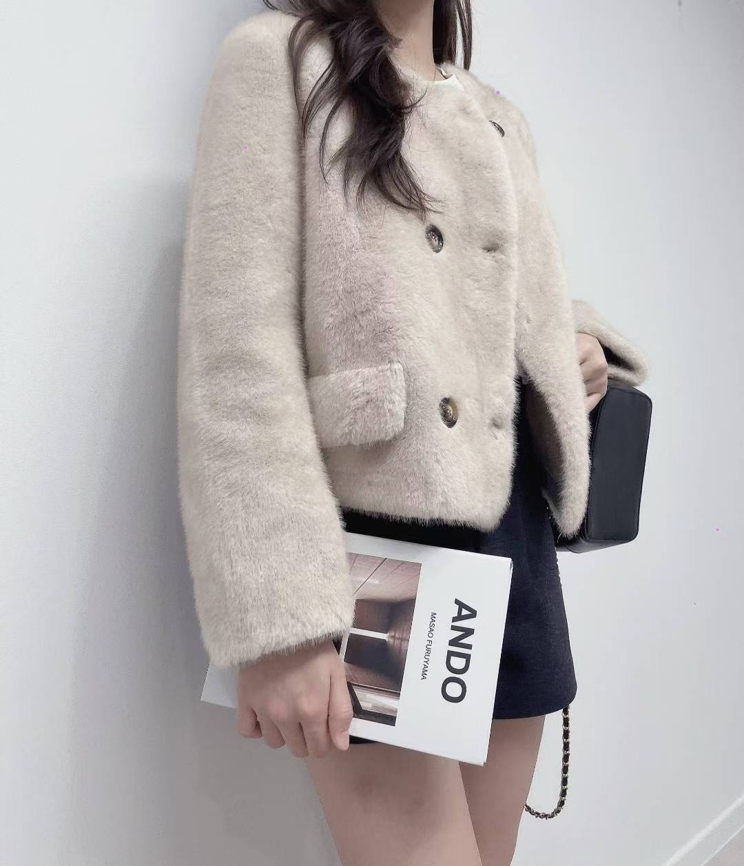 FY17 假袋孖襟毛毛外套 單色 杏 Chest 42" length 21"