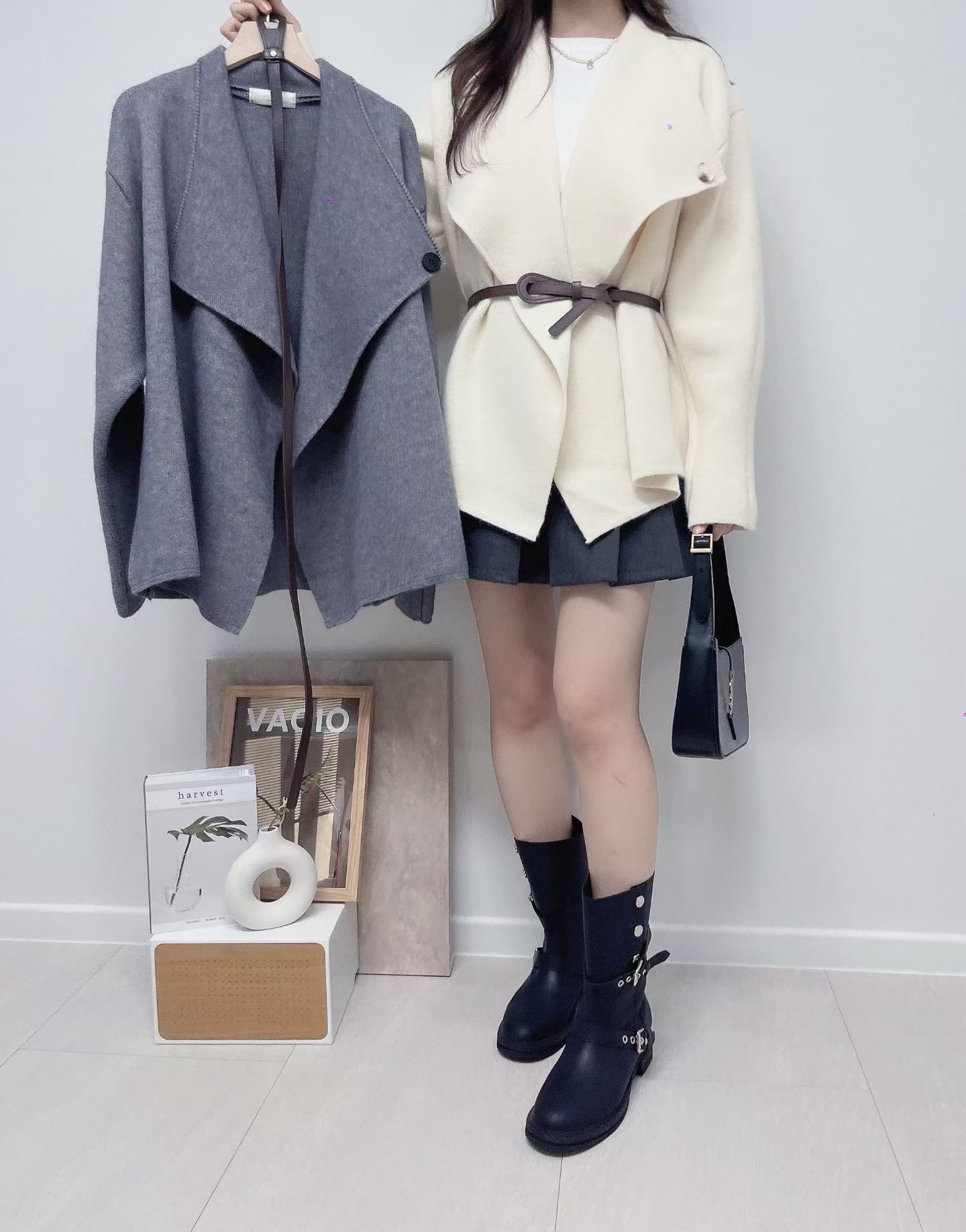 FY21反領連belt 絨褸 2色 米/灰 Shoulde 19" Chest 40" length 27"