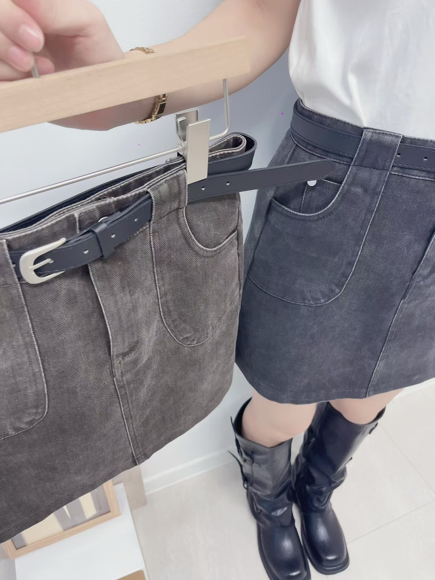 FY22 連belt 直身短裙 2色 啡/灰 S-L S waist 26" hip 34" length 15" M waist 28" hi 36" length 15" L waist 30" hip 38" length 16"