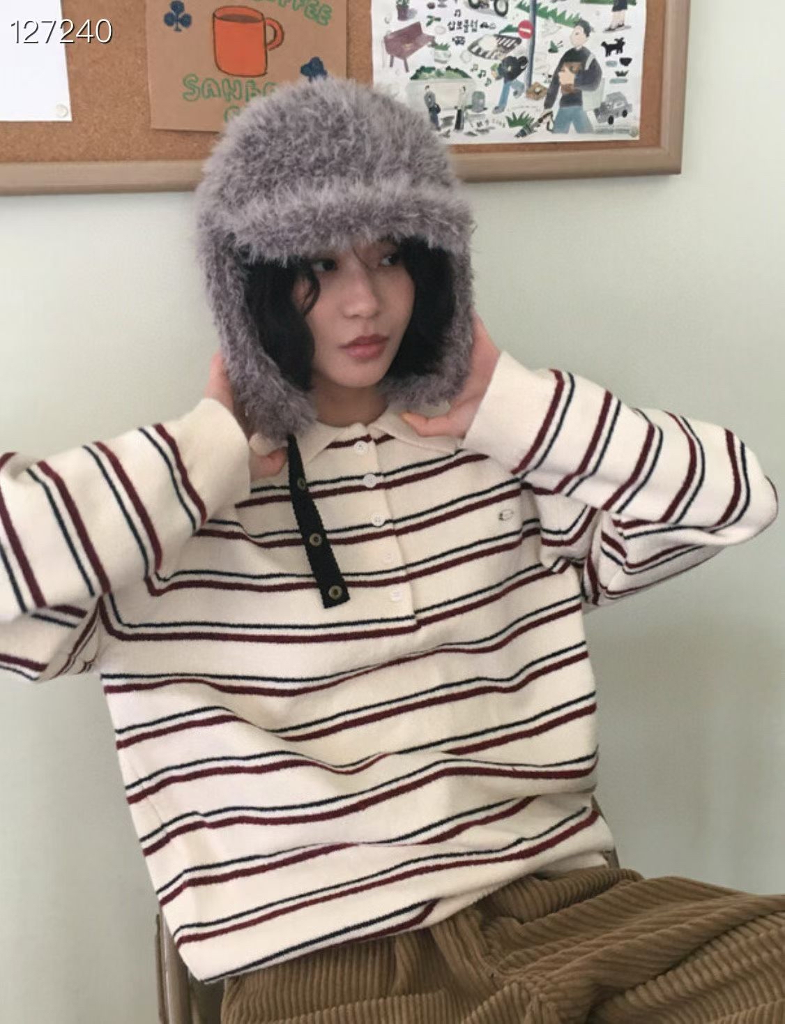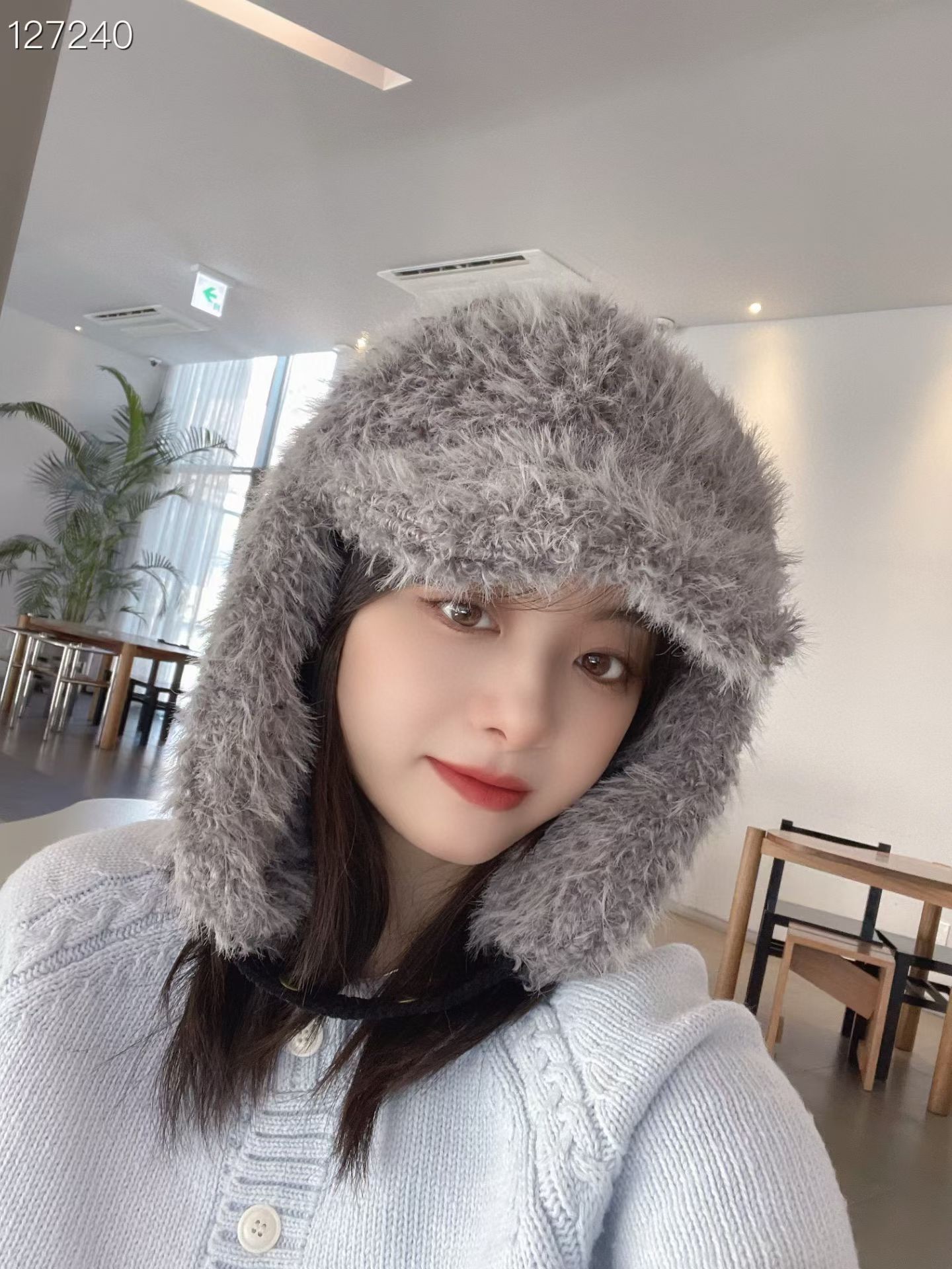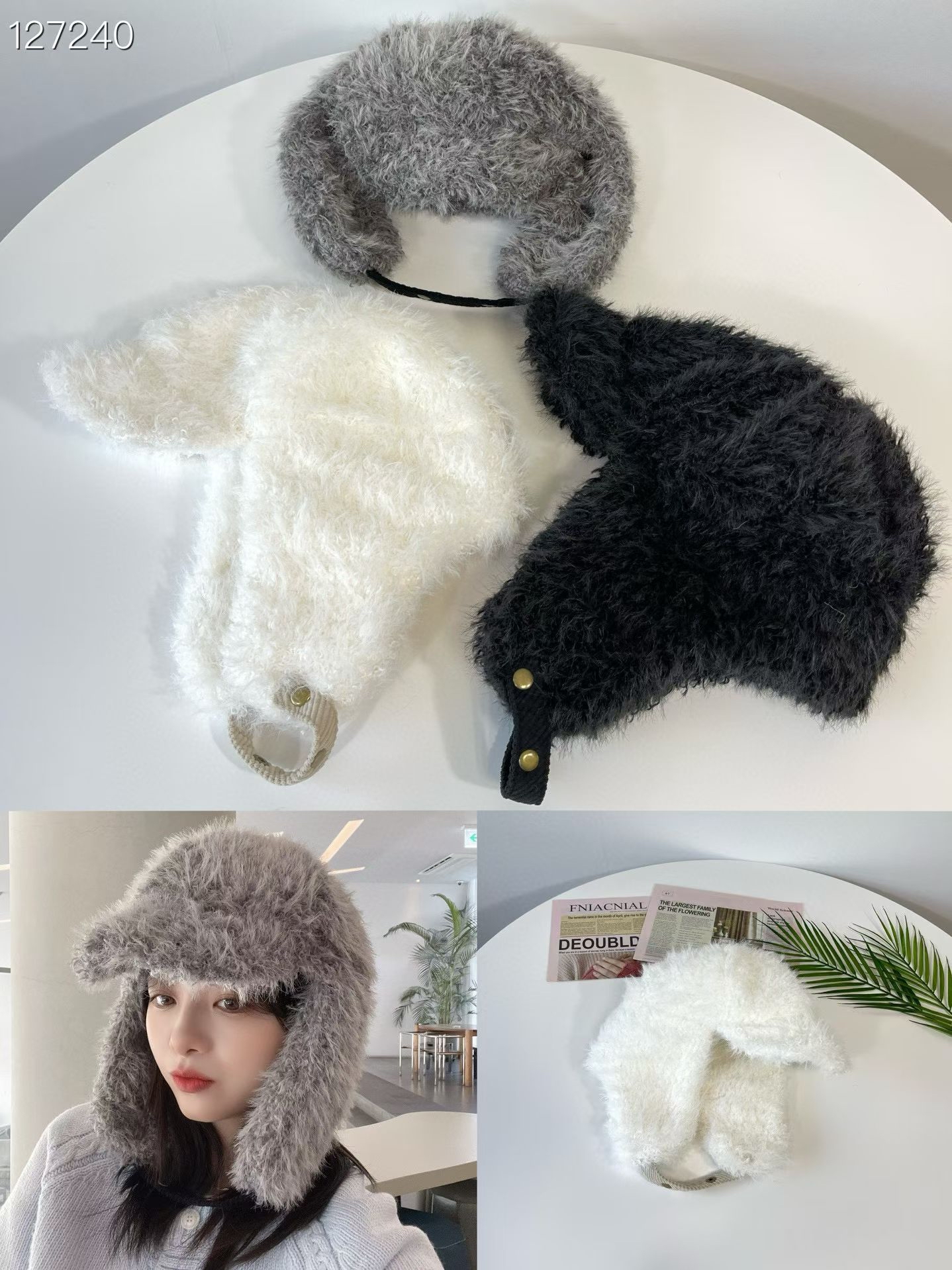L31 豐盈毛毛護耳帽 3色 灰/米白/黑