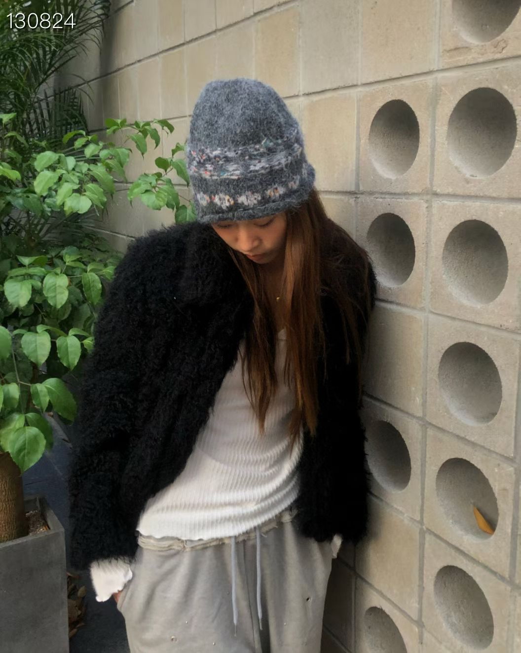 LH04 拼彩色點點冷帽 5色 米/淺灰/深藍/啡/深灰