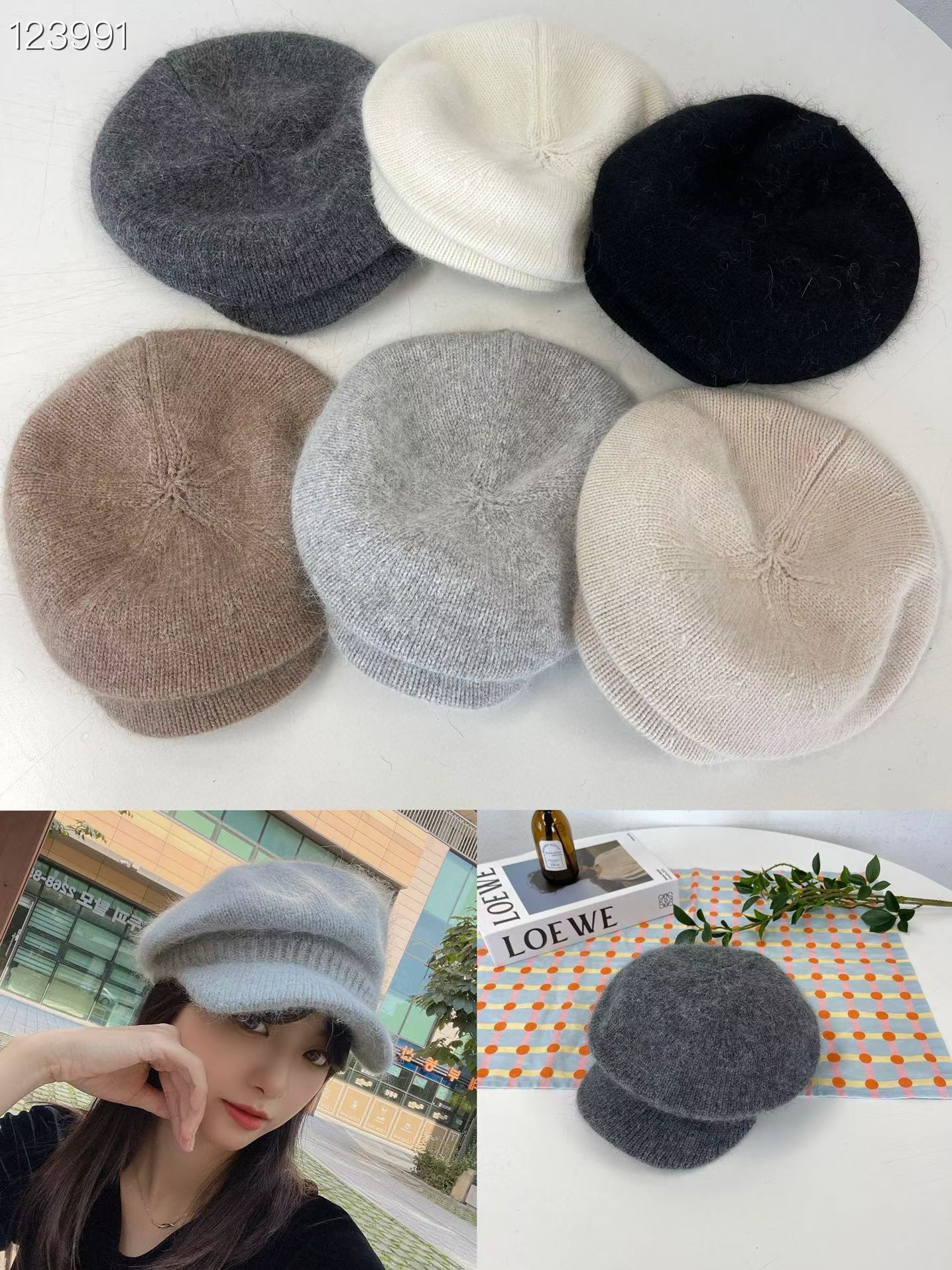 LH07兔毛針織帽 6色 深灰/米白/黑/淺啡/淺灰/燕麥