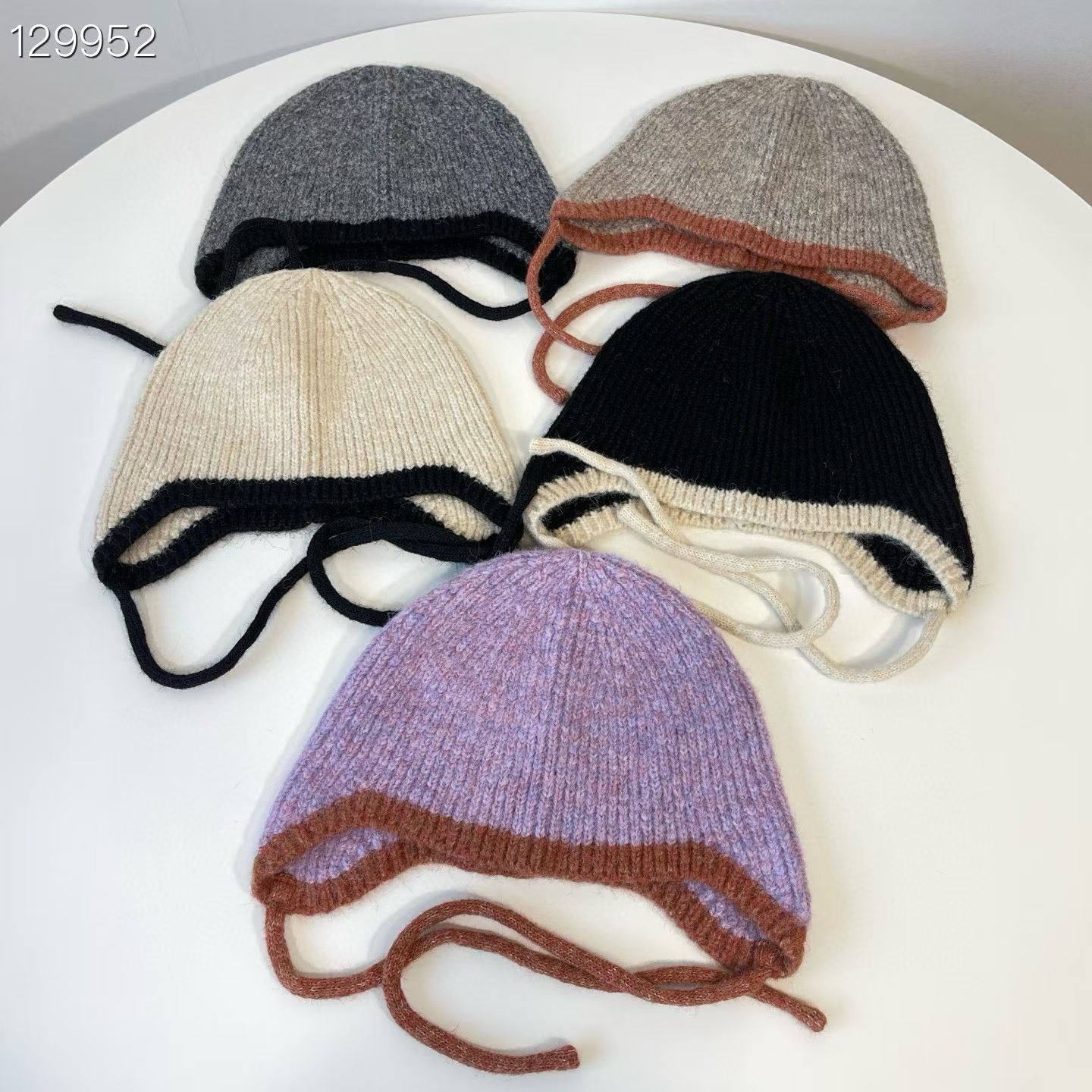 LH11 拼色邊護耳帽 5色 深灰/燕麥(橙邊) / 杏/黑/紫