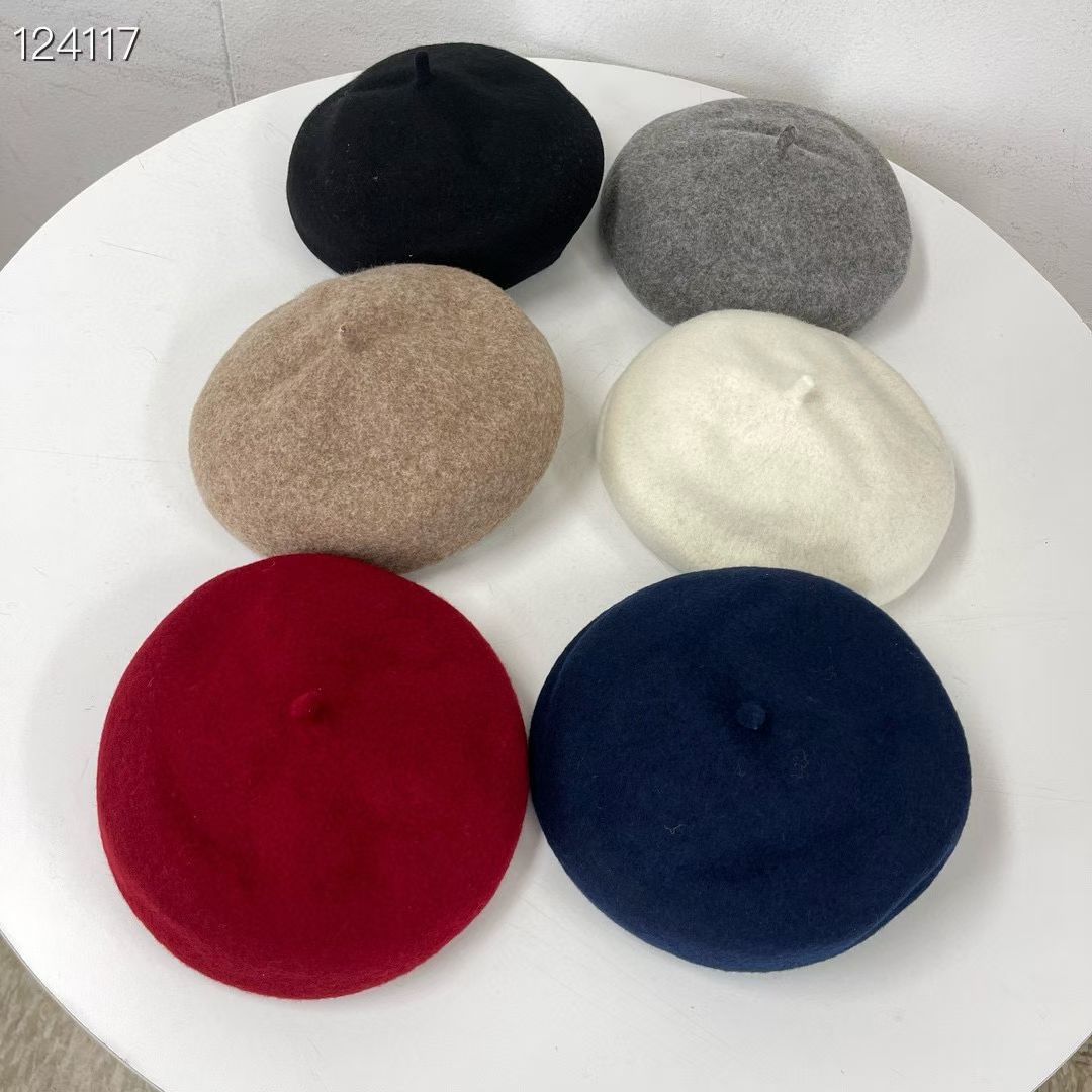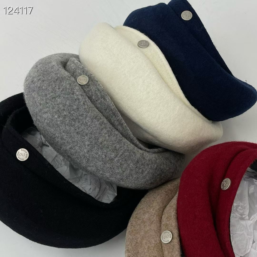 LH23 羊毛銀章畫家帽 6色 黑/灰/米/深藍/杏/紅