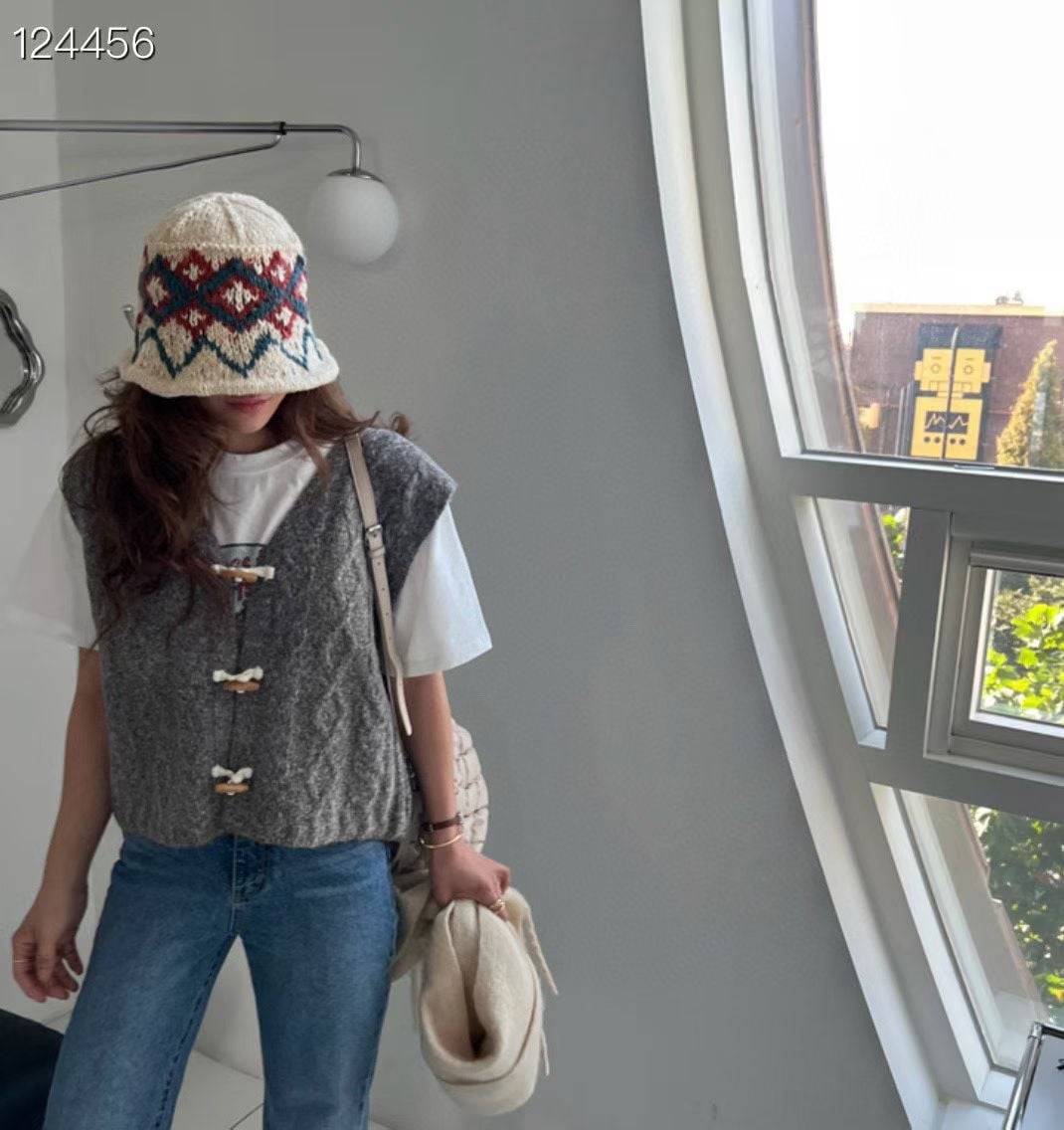 LH26 菱格圖案漁夫帽 3色 黑/米/淺啡