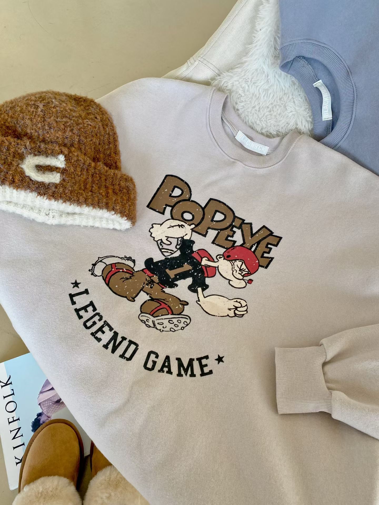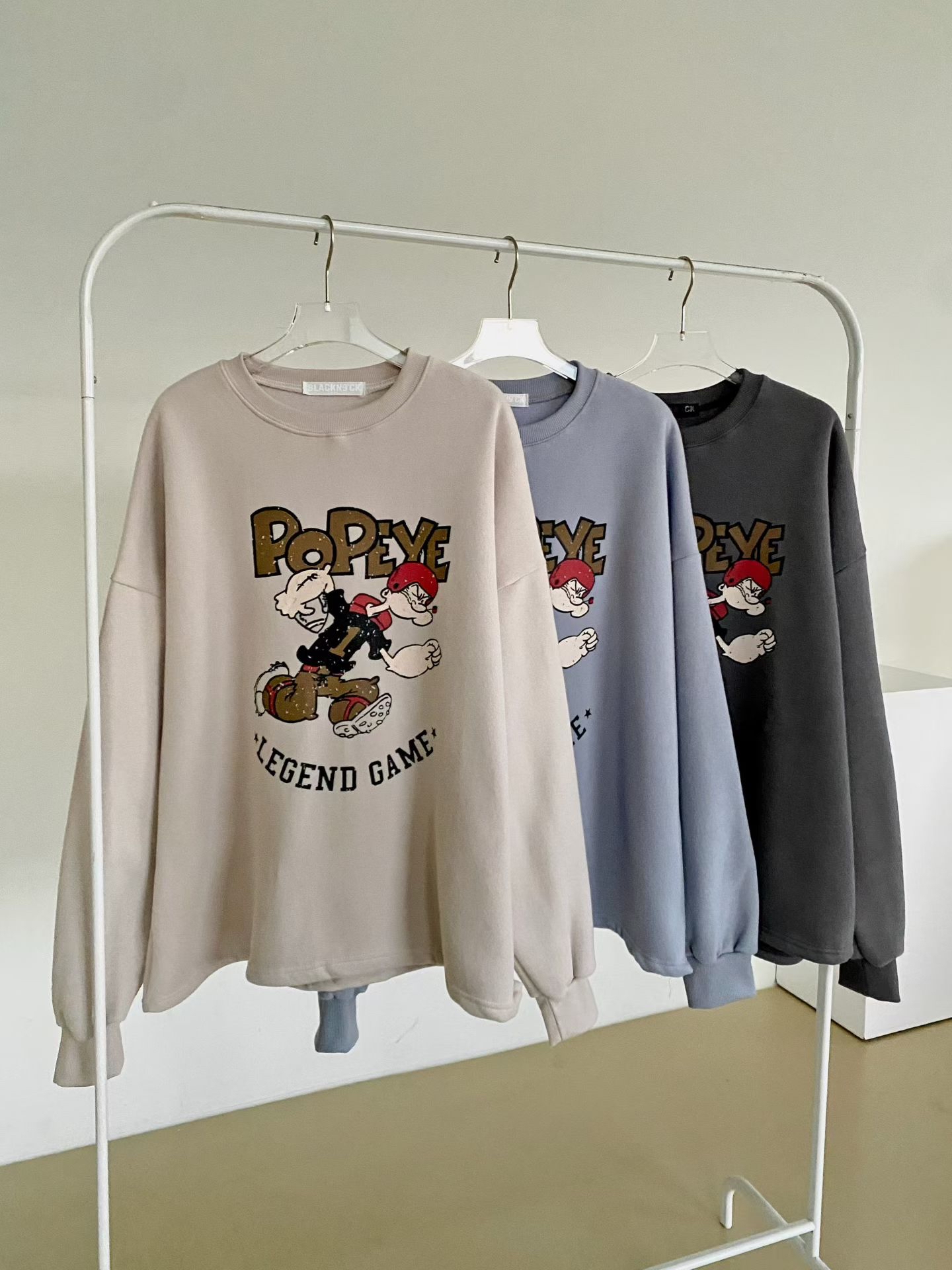 NB01 大力水手衛衣 3色 淺藍/杏/深灰 Chest 56" length 27"